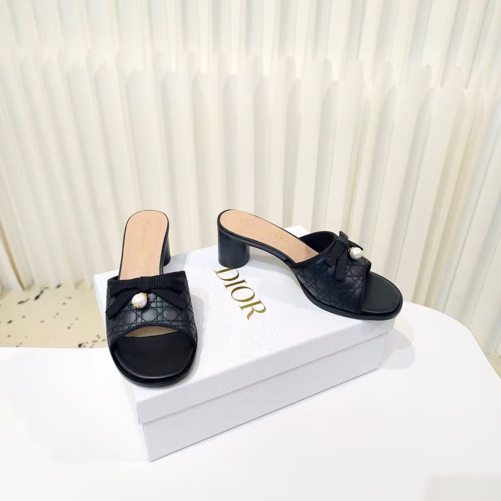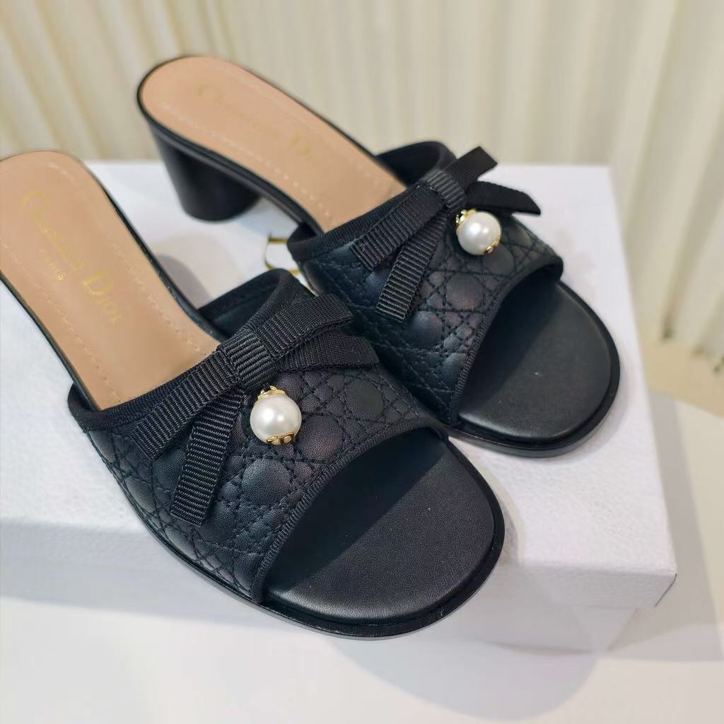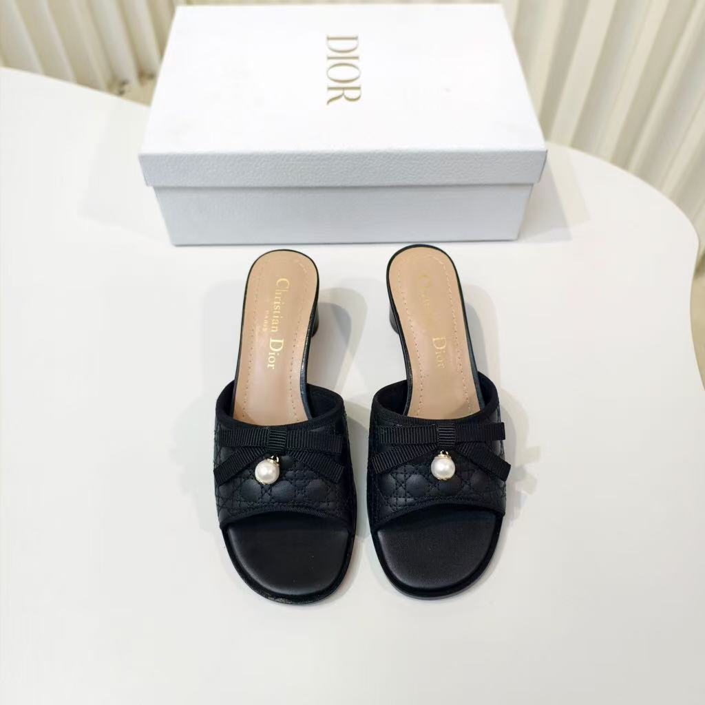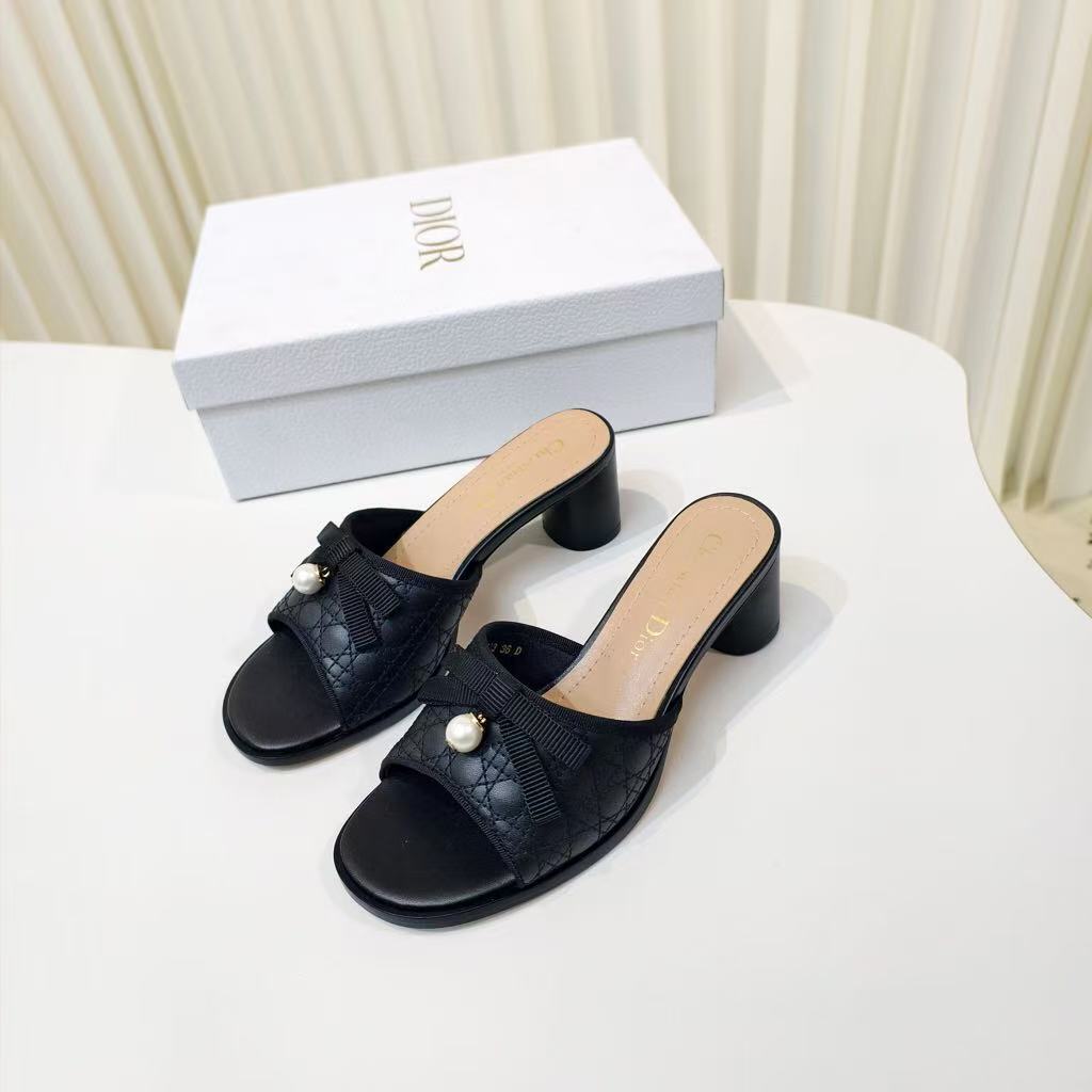 Dior new women’s fashion high-end comfortable versatile breathable leather high-heeled slippers