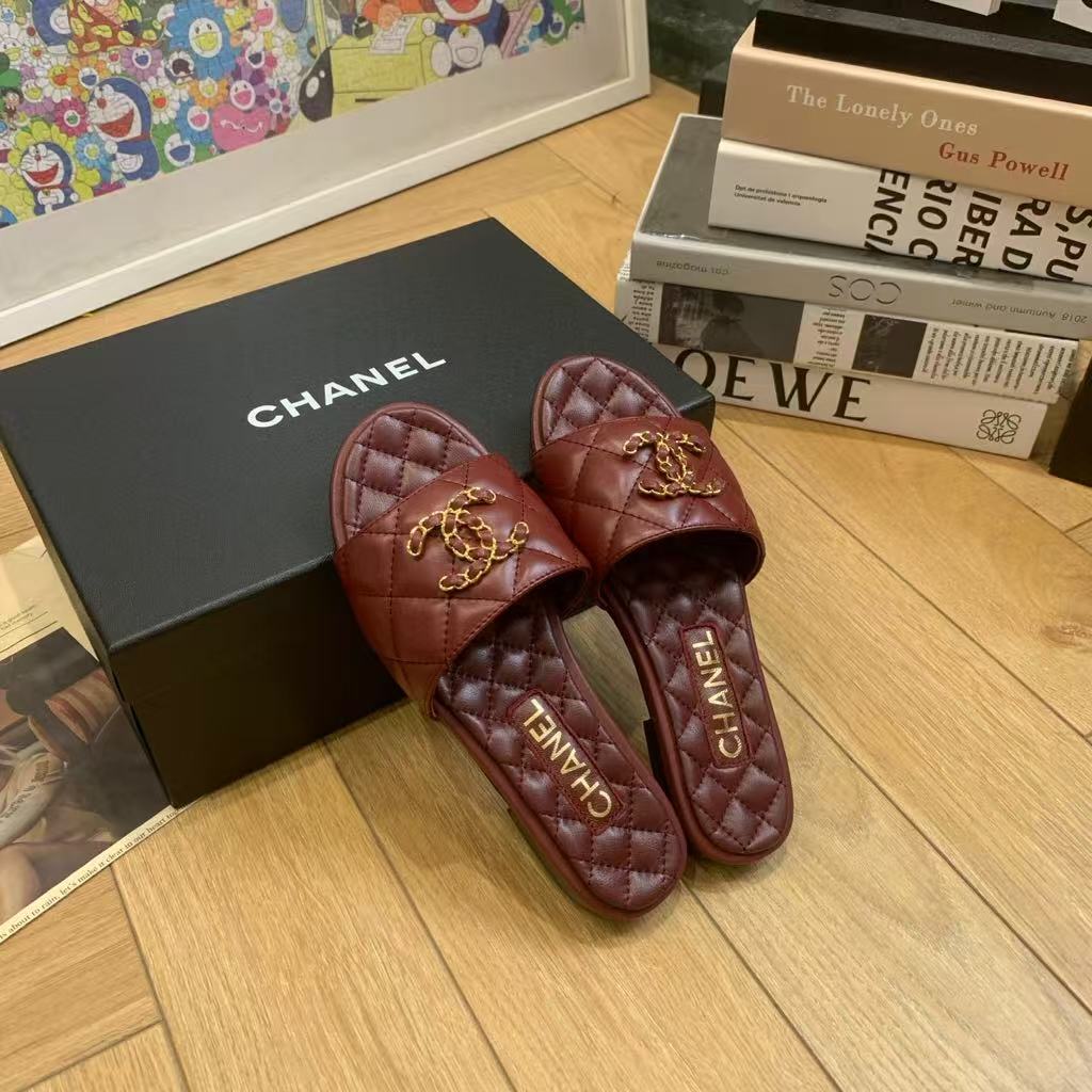 Chanel new women’s fashion high-end comfortable versatile genuine leather casual flat slippers