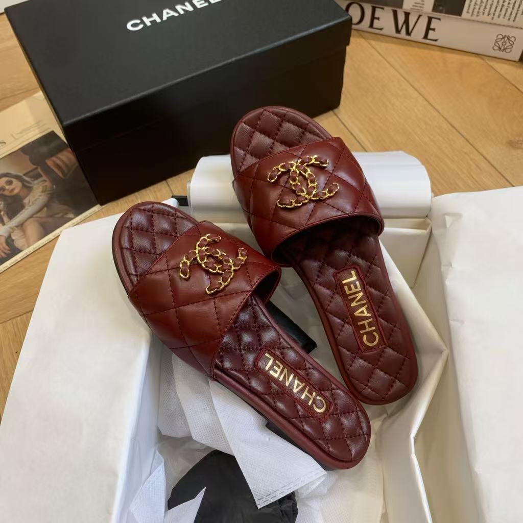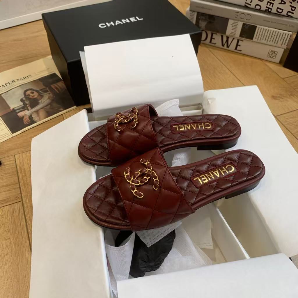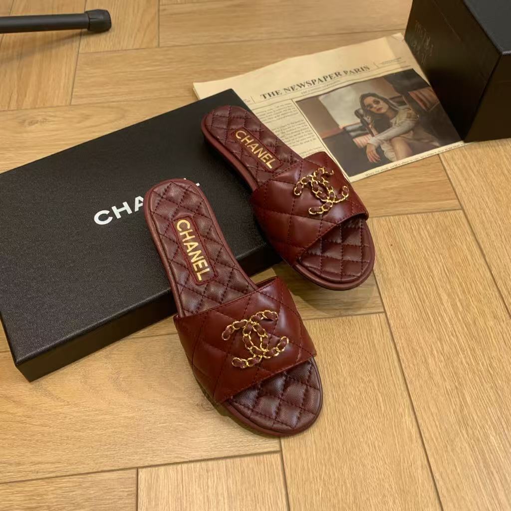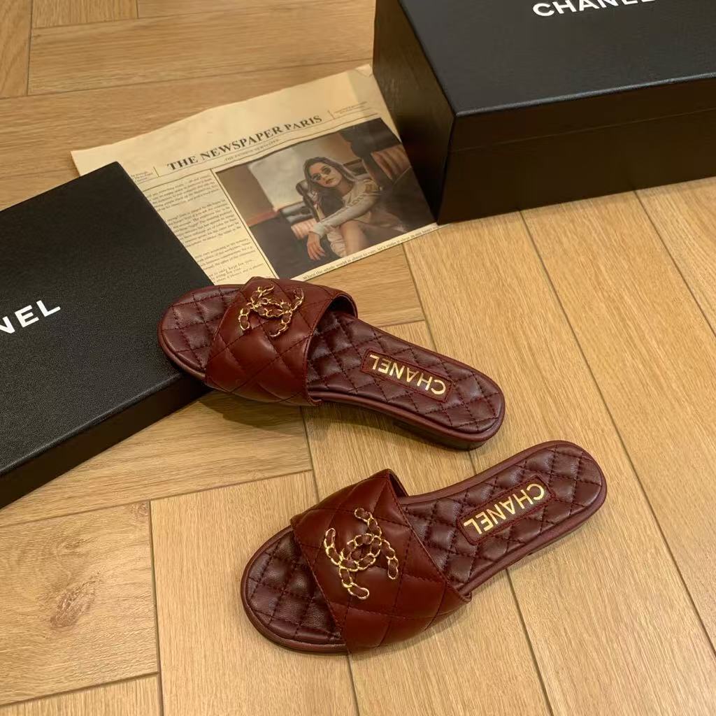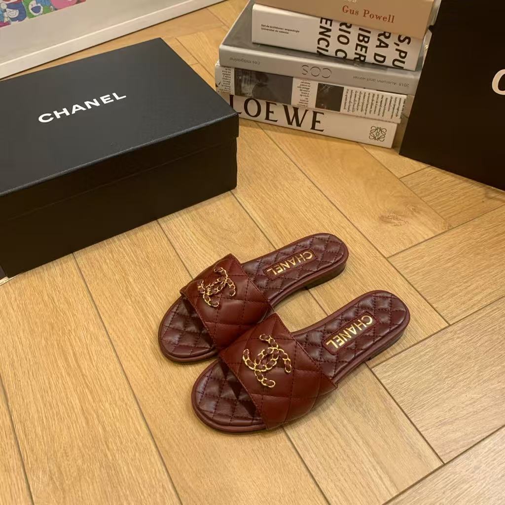 Chanel new women’s fashion high-end comfortable versatile genuine leather casual flat slippers