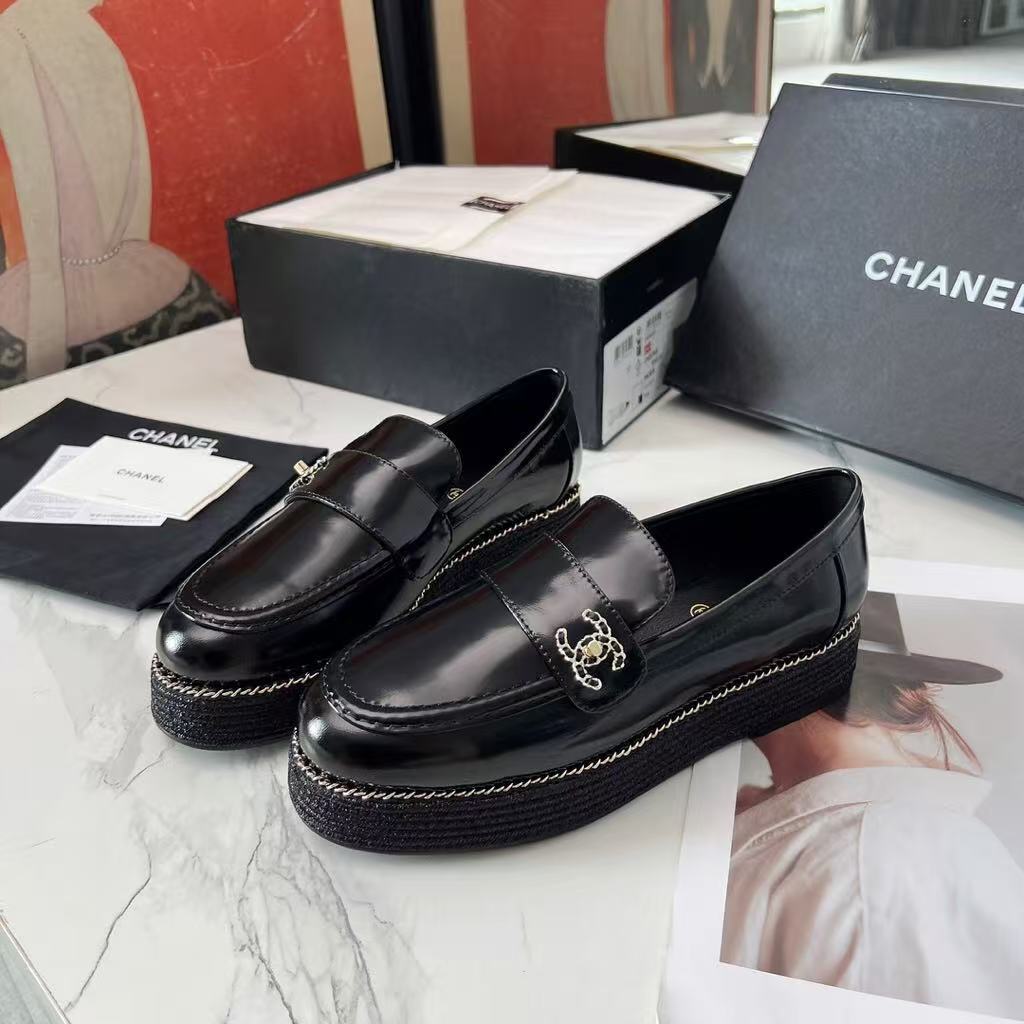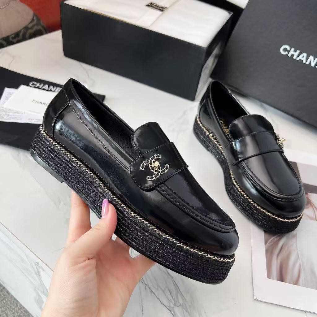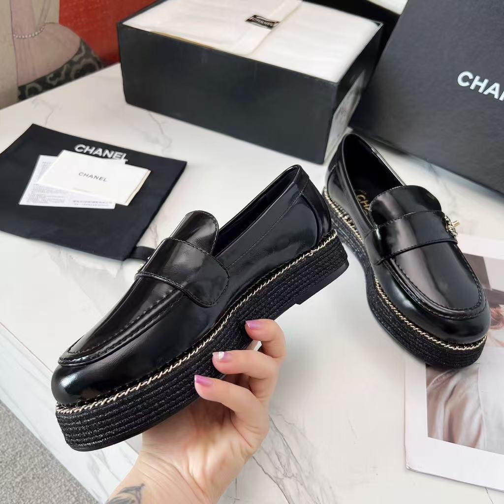 Chanel new women’s fashion high-end comfortable versatile genuine leather shiny thick-soled casual shoes
