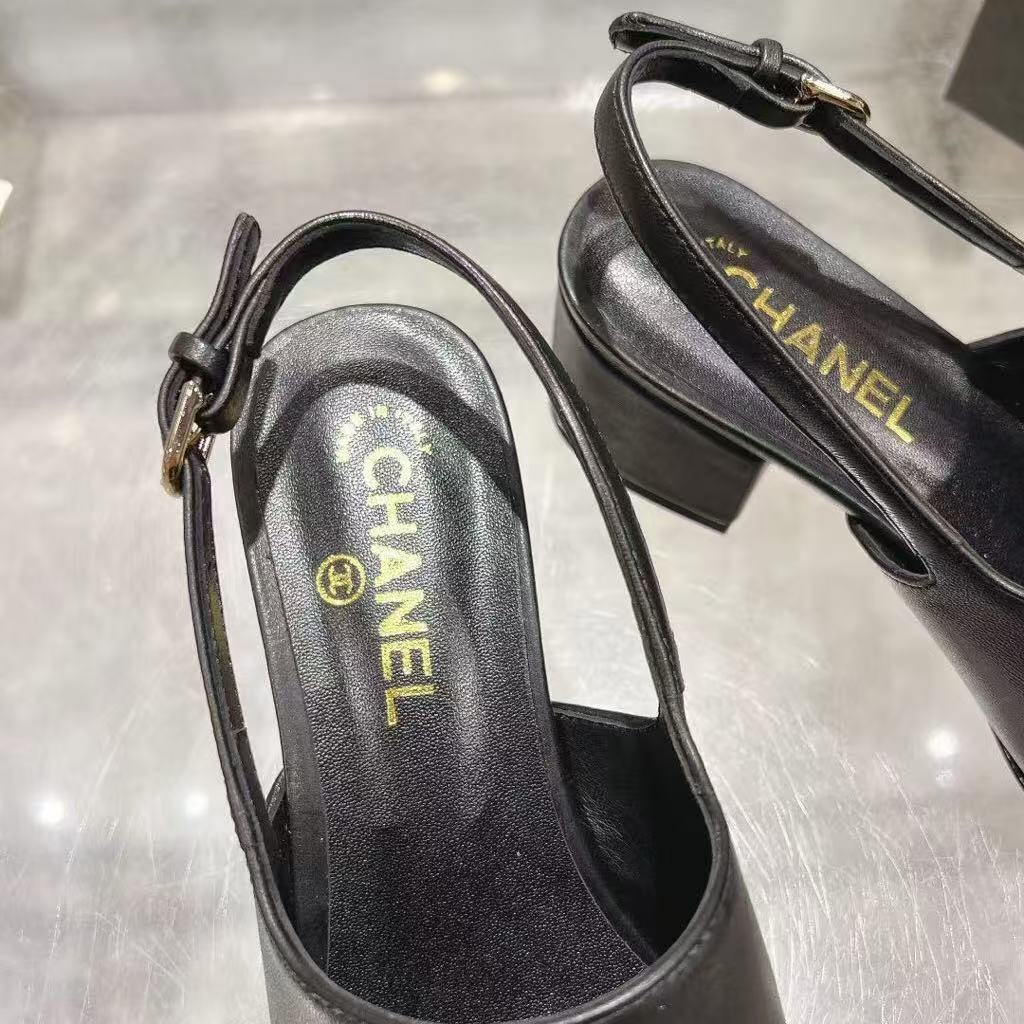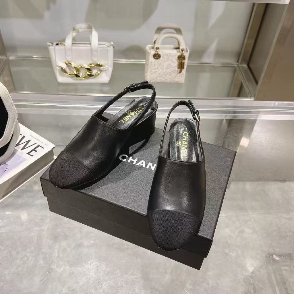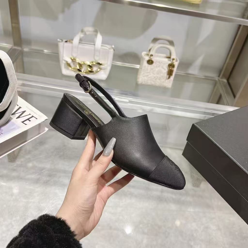Chanel new women’s genuine leather trendy versatile fashion elegant casual high heel half-covered shoes