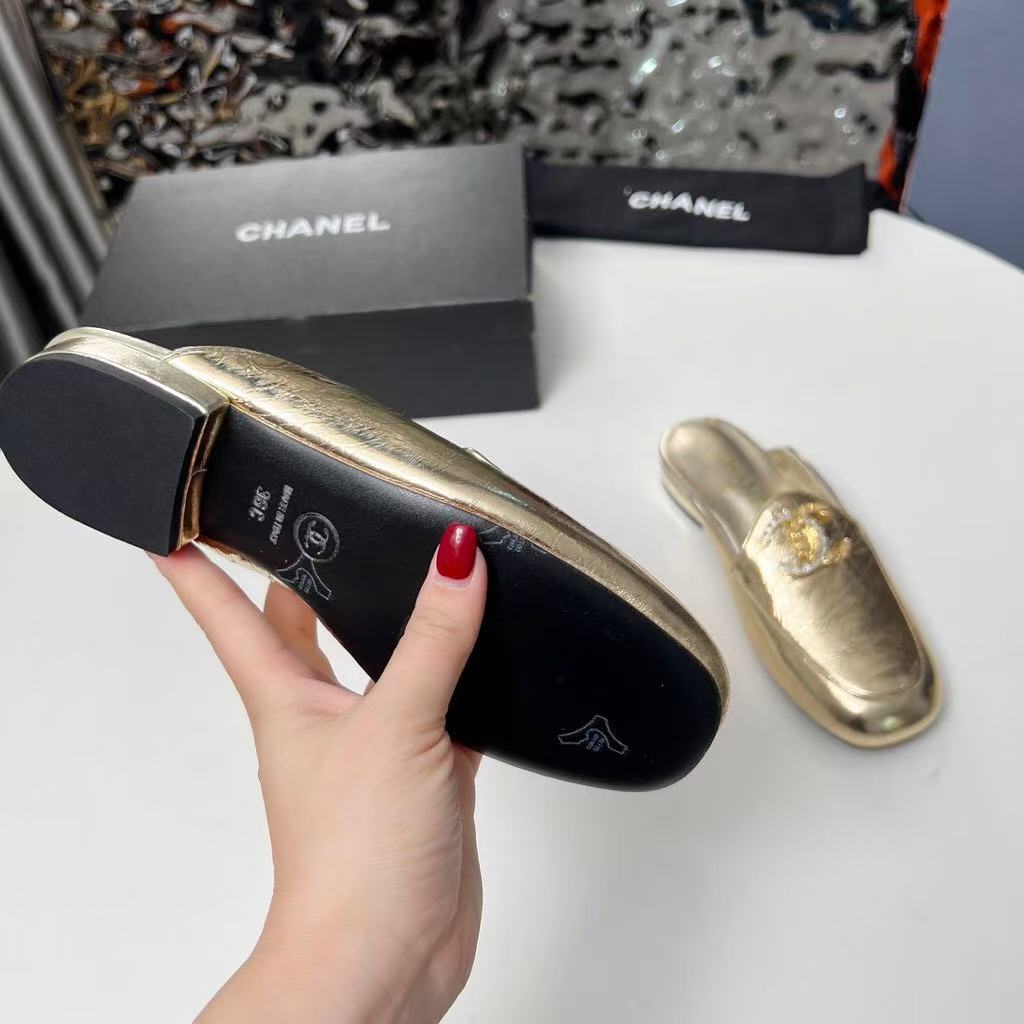 Chanel new women’s genuine leather trendy versatile fashion elegant casual short heel half-covered shoes