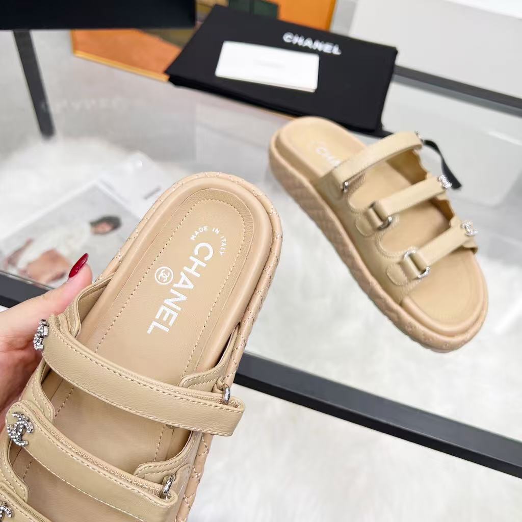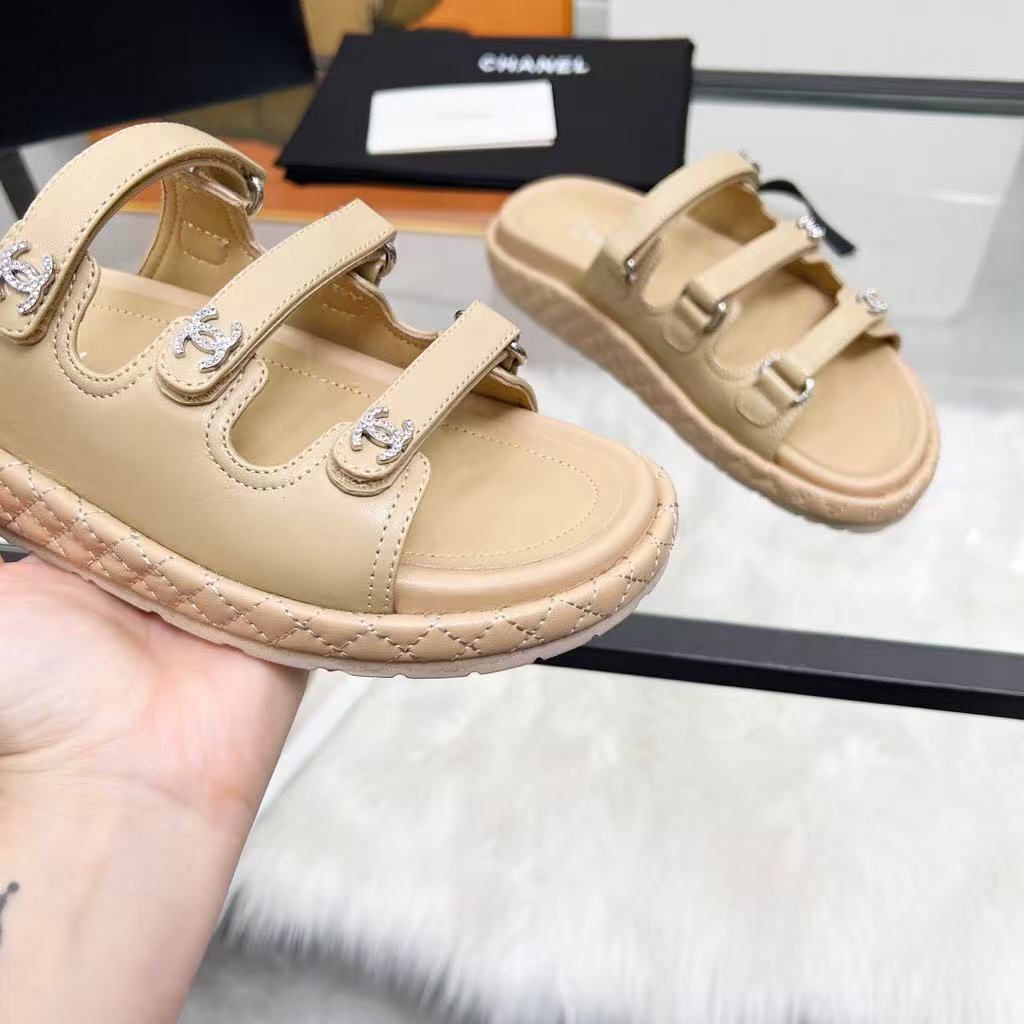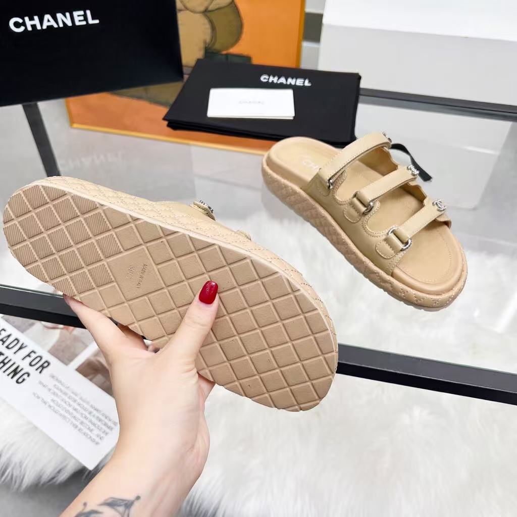 Chanel new women’s leather trendy versatile fashion elegant casual flat sandals