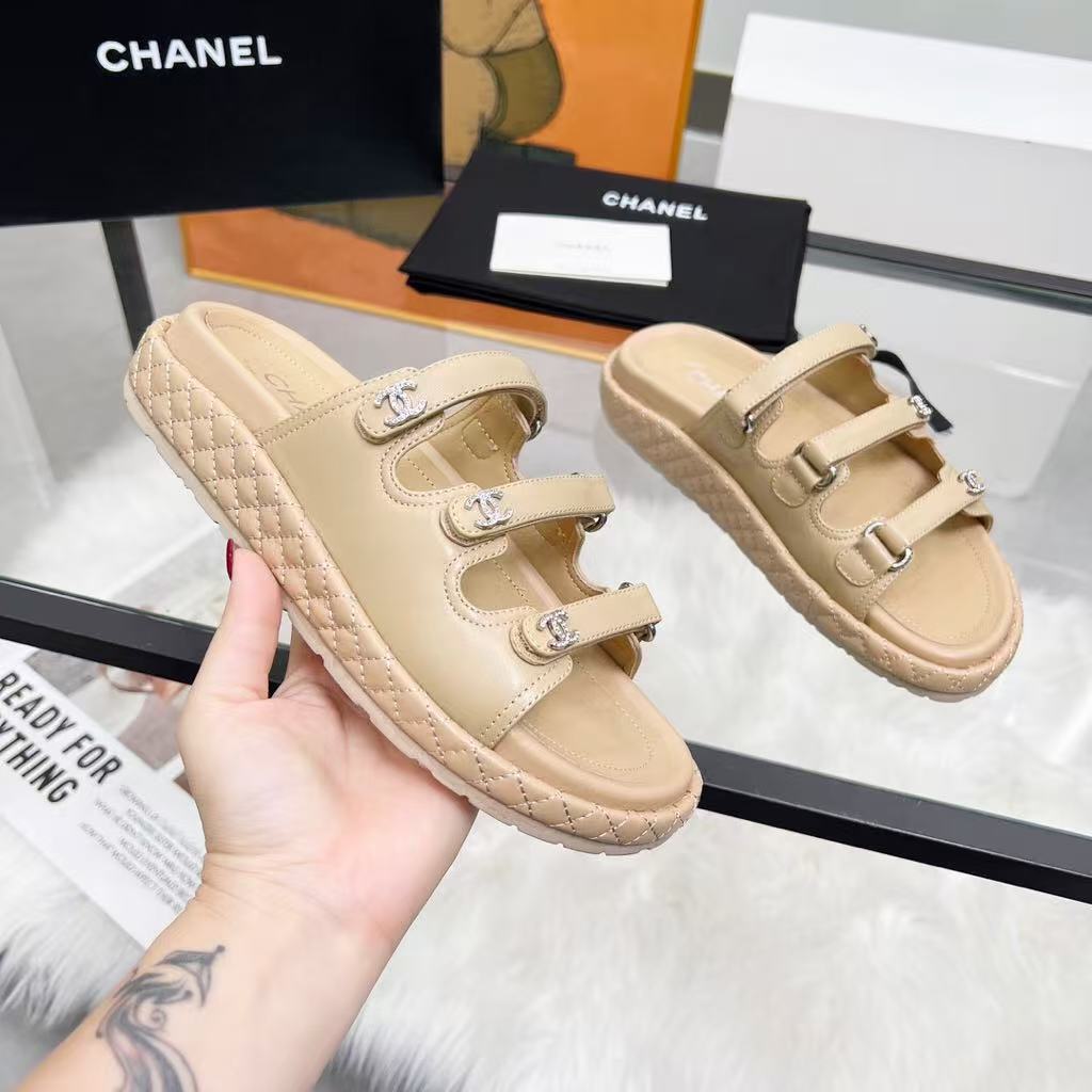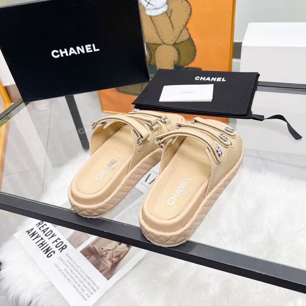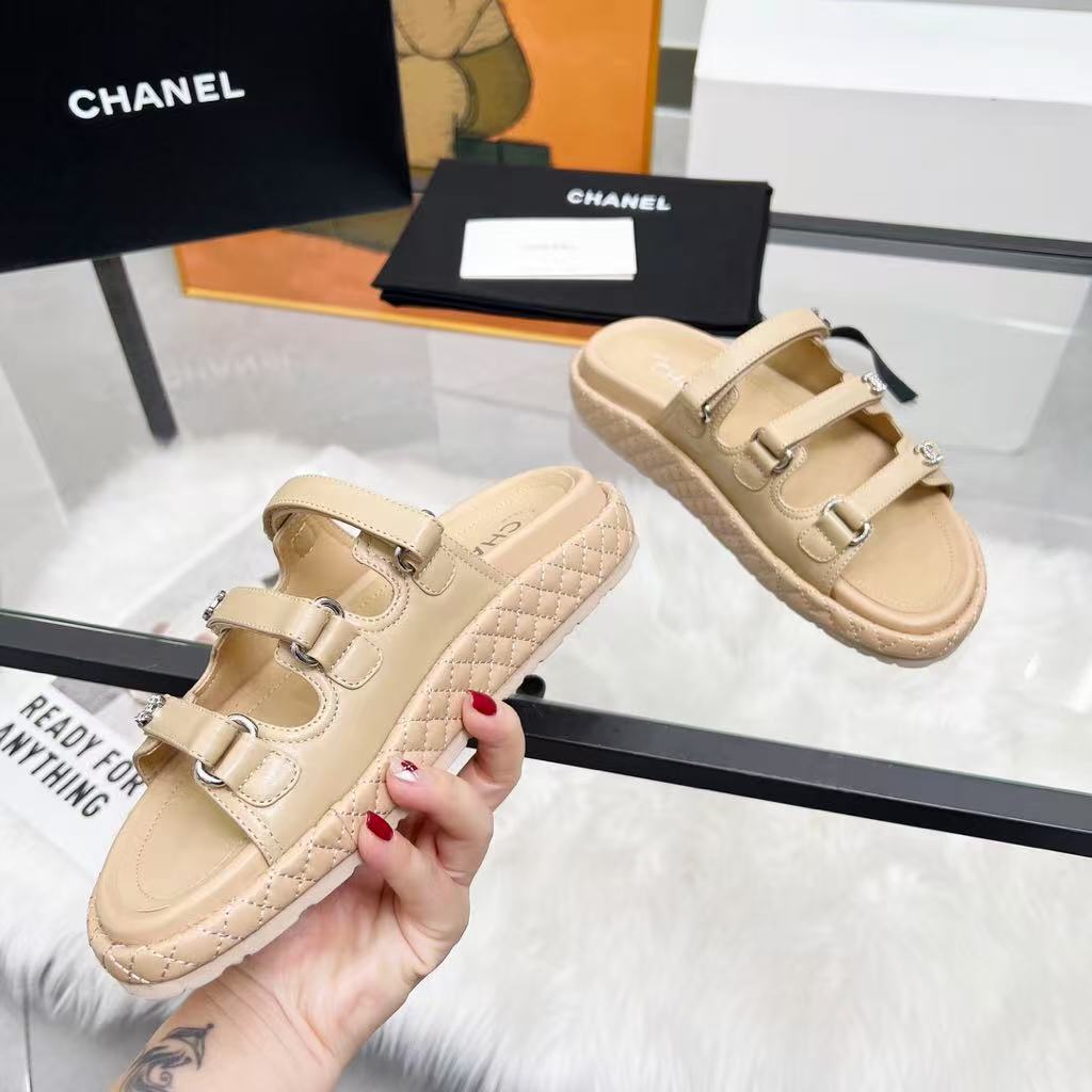 Chanel new women’s leather trendy versatile fashion elegant casual flat sandals