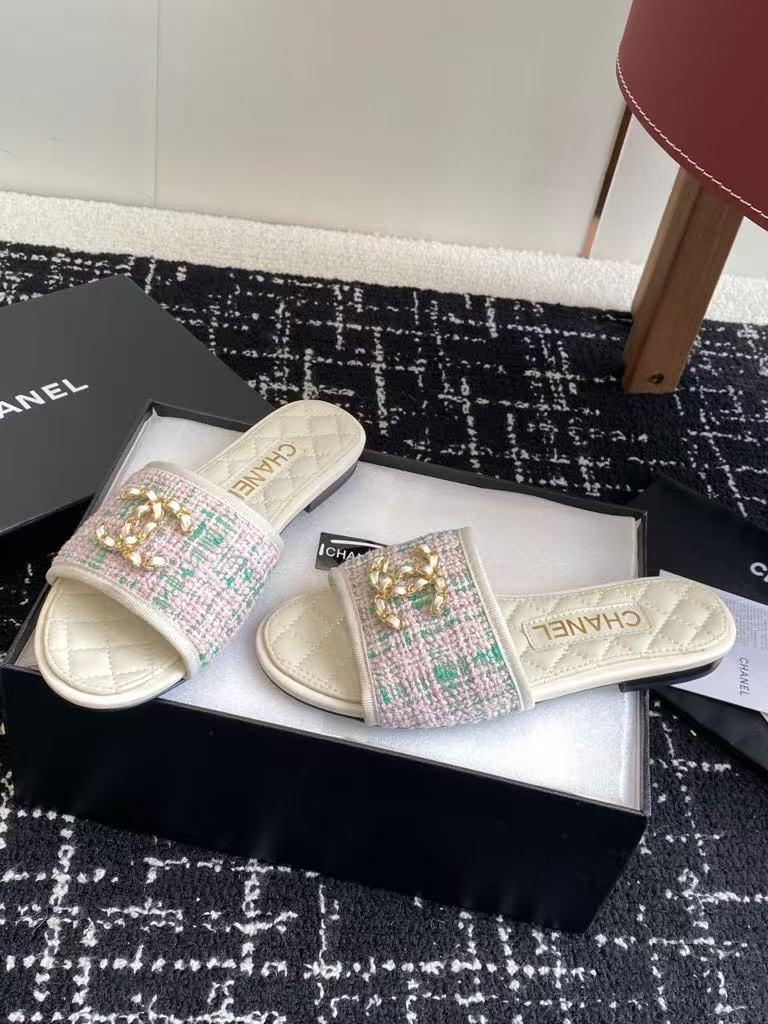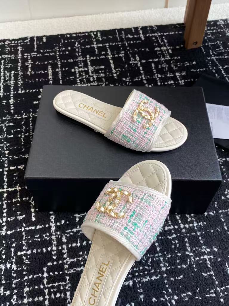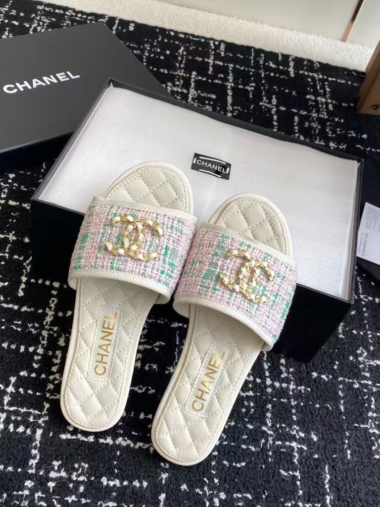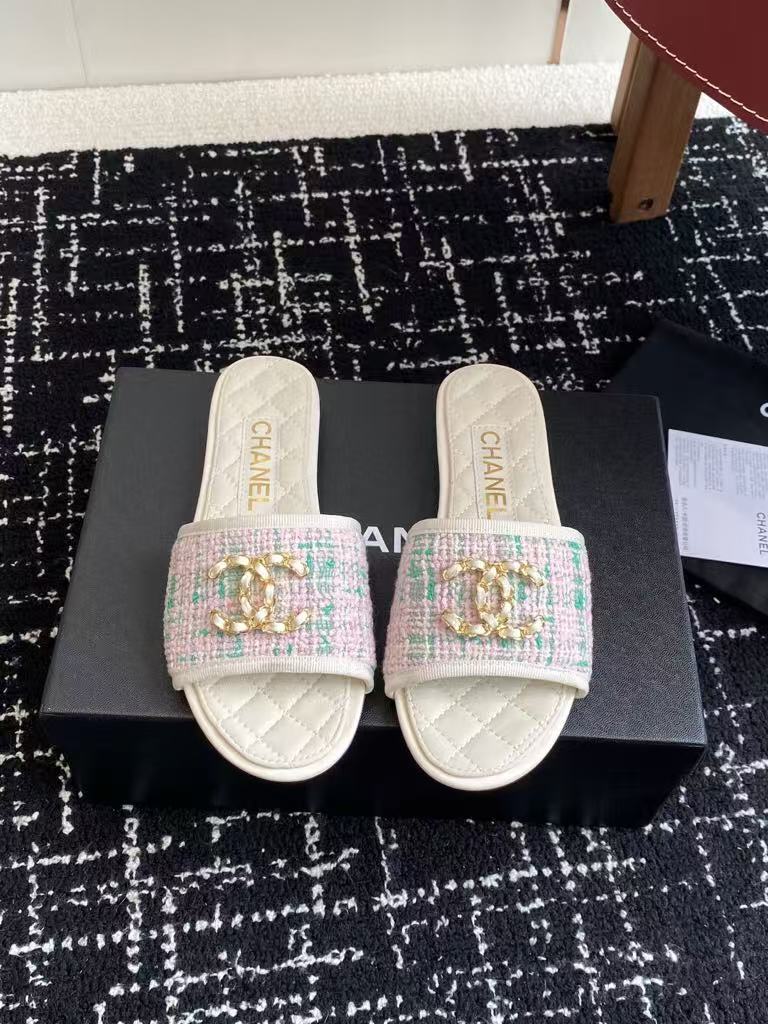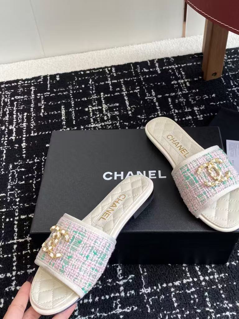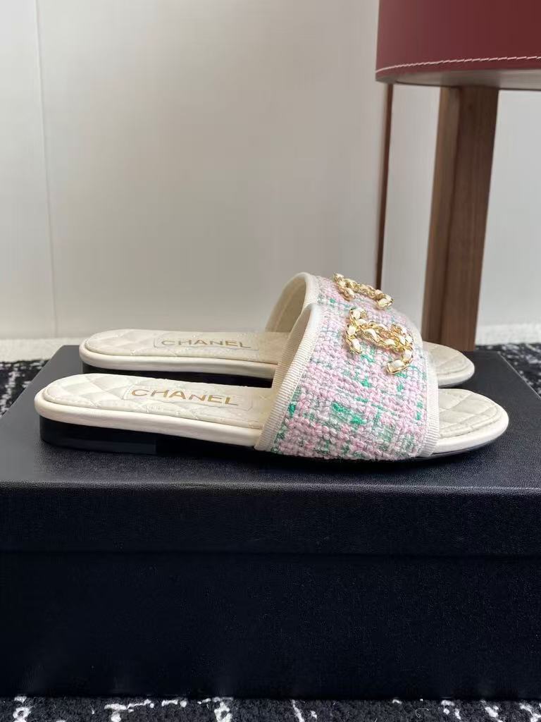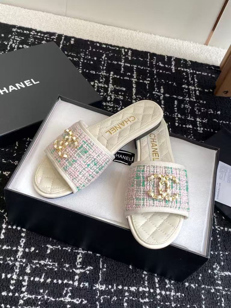 Chanel new women’s trendy fashion genuine leather comfortable hardware decoration lazy slippers