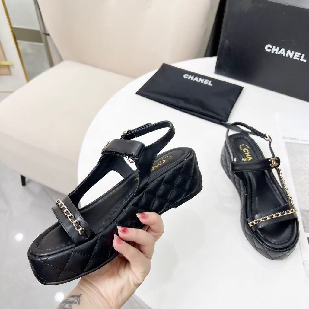 Chanel new women’s trendy versatile fashion elegant casual genuine leather thick-soled sandals