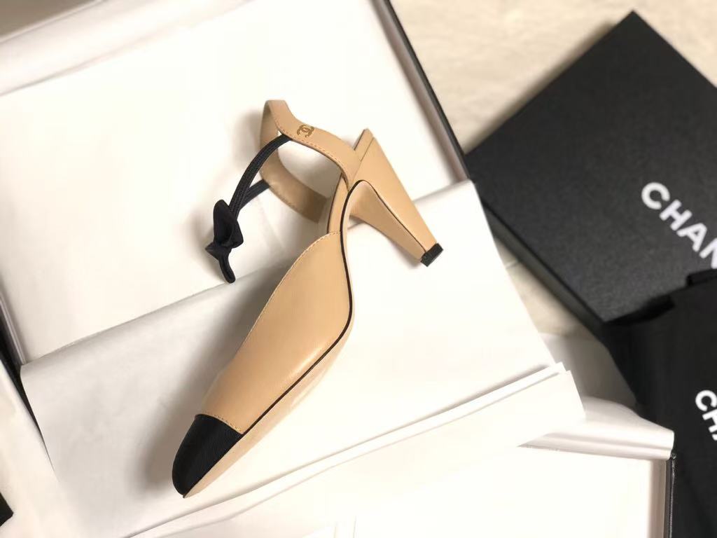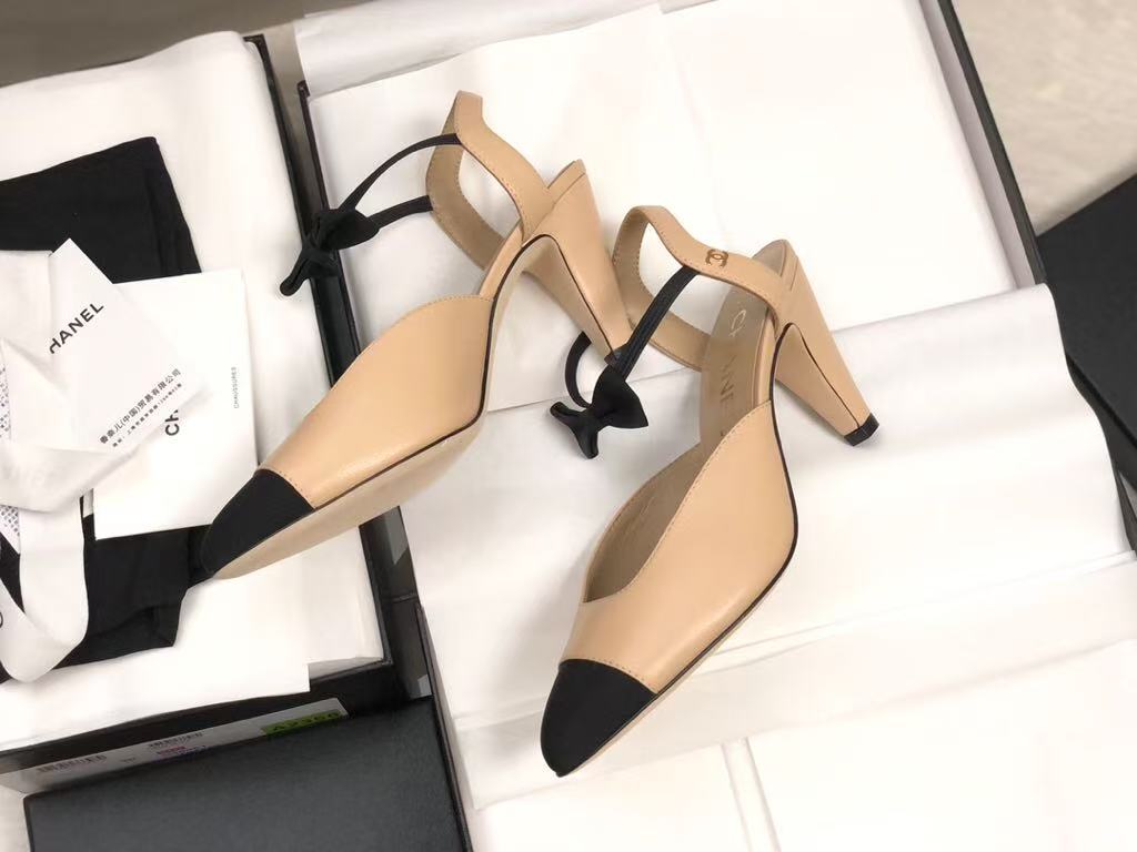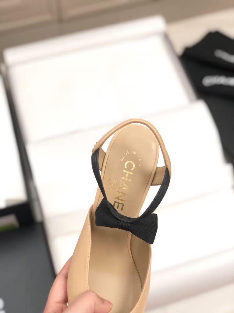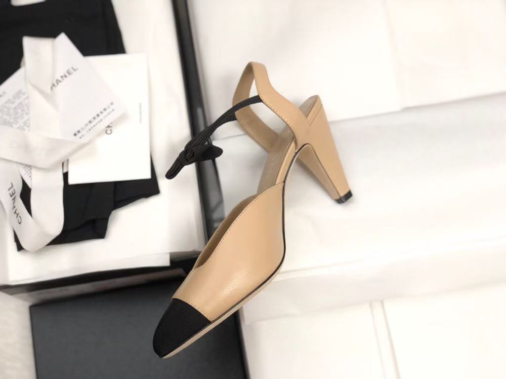 Chanel’s new ladies’ fashionable and versatile exquisite and elegant leather line lining comfortable thick heel sandals