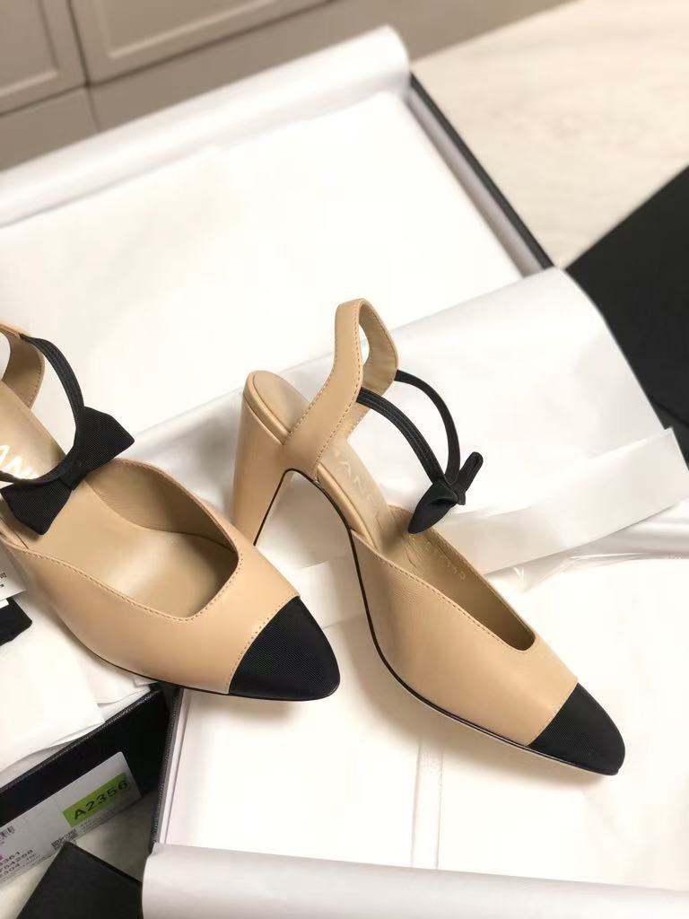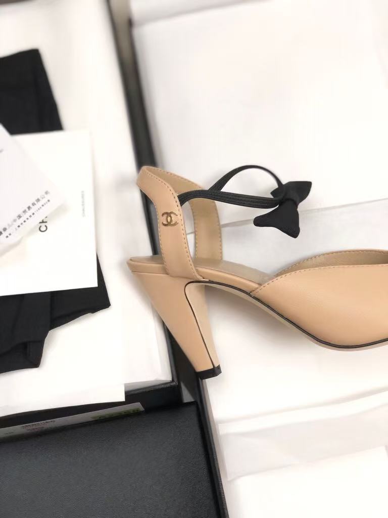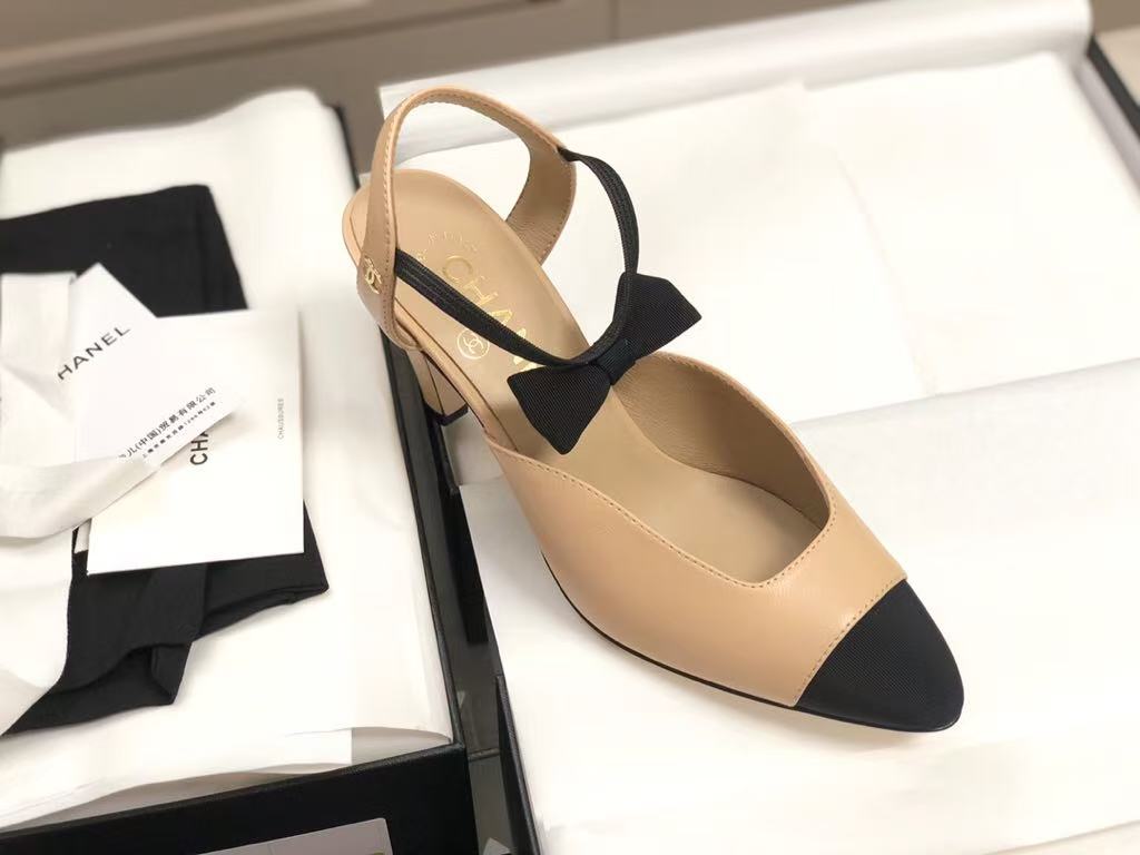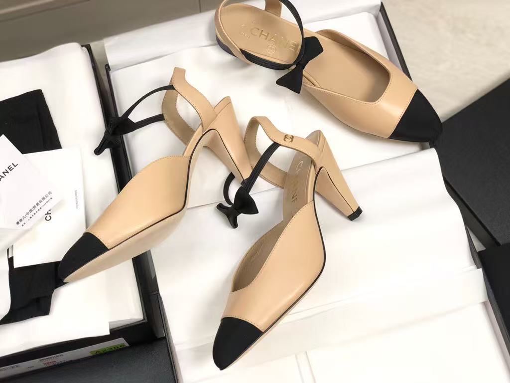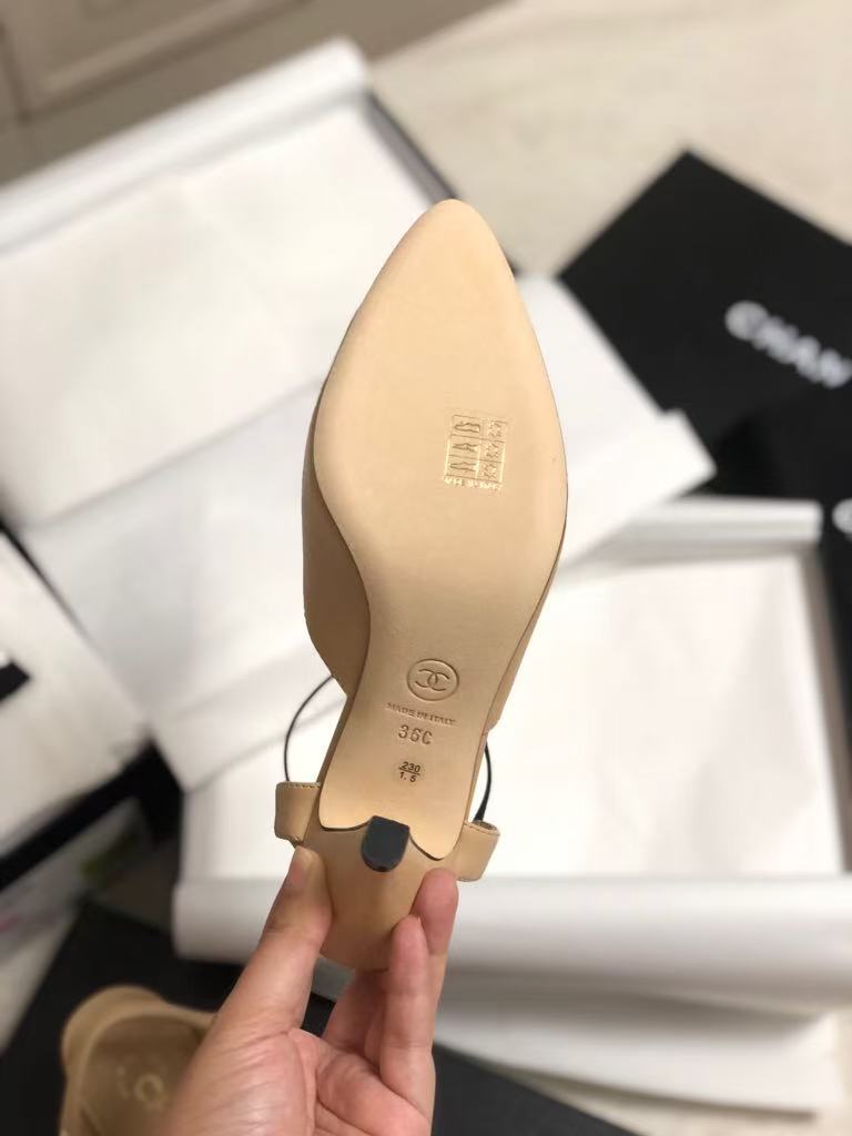 Chanel’s new ladies’ fashionable and versatile exquisite and elegant leather line lining comfortable thick heel sandals