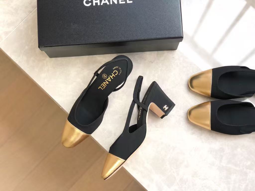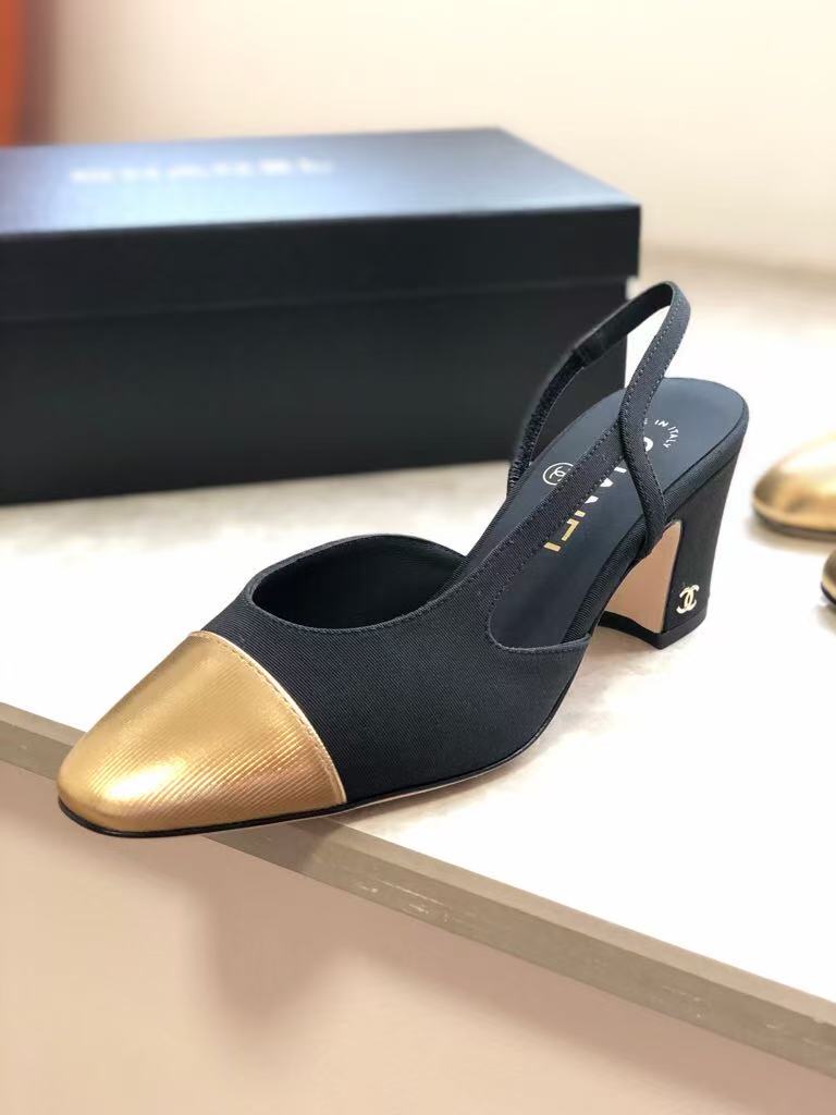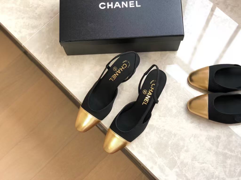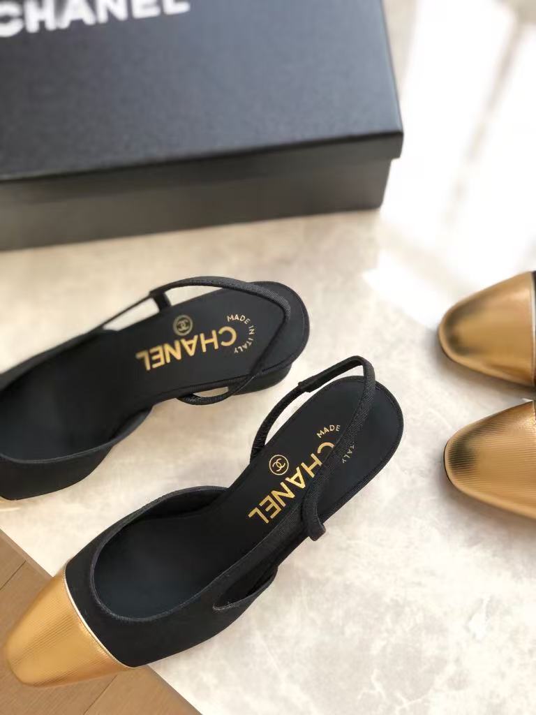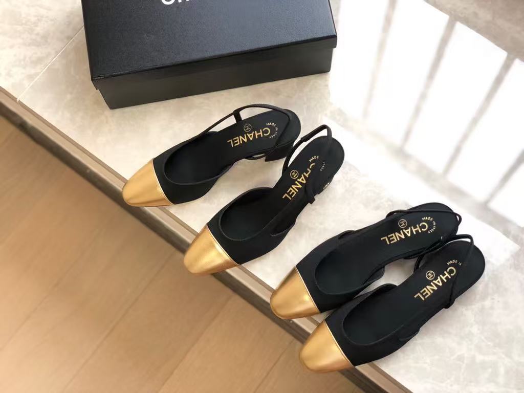Chanel’s new ladies’ fashionable and versatile exquisite and elegant leather line lining comfortable thick heel sandals