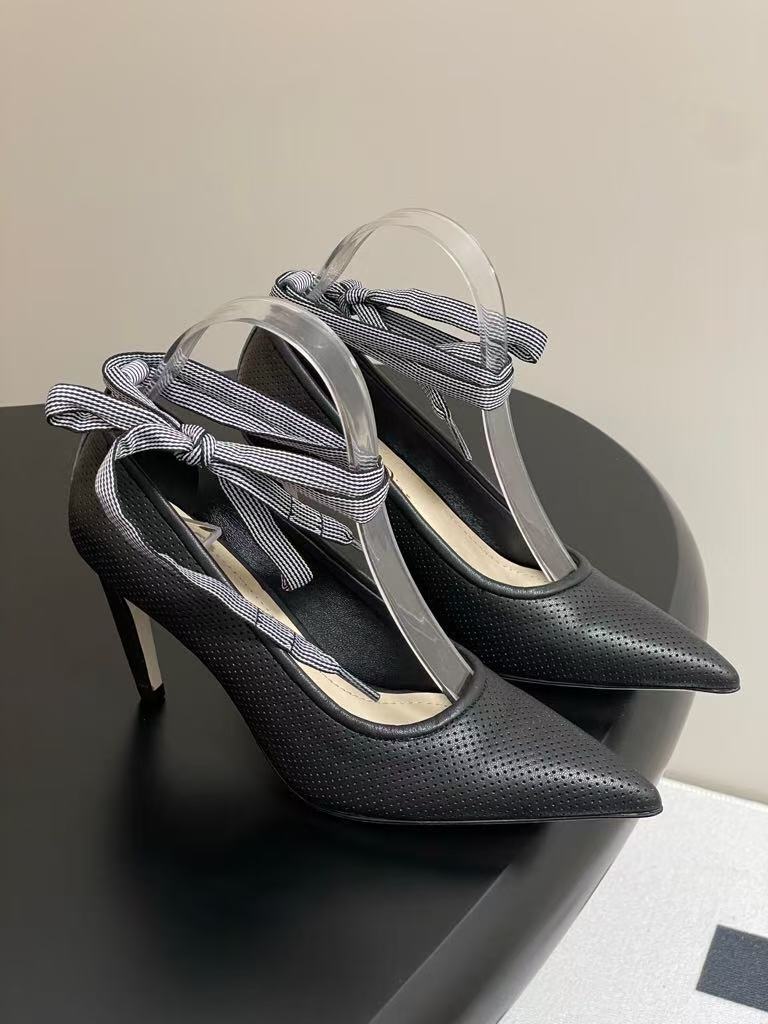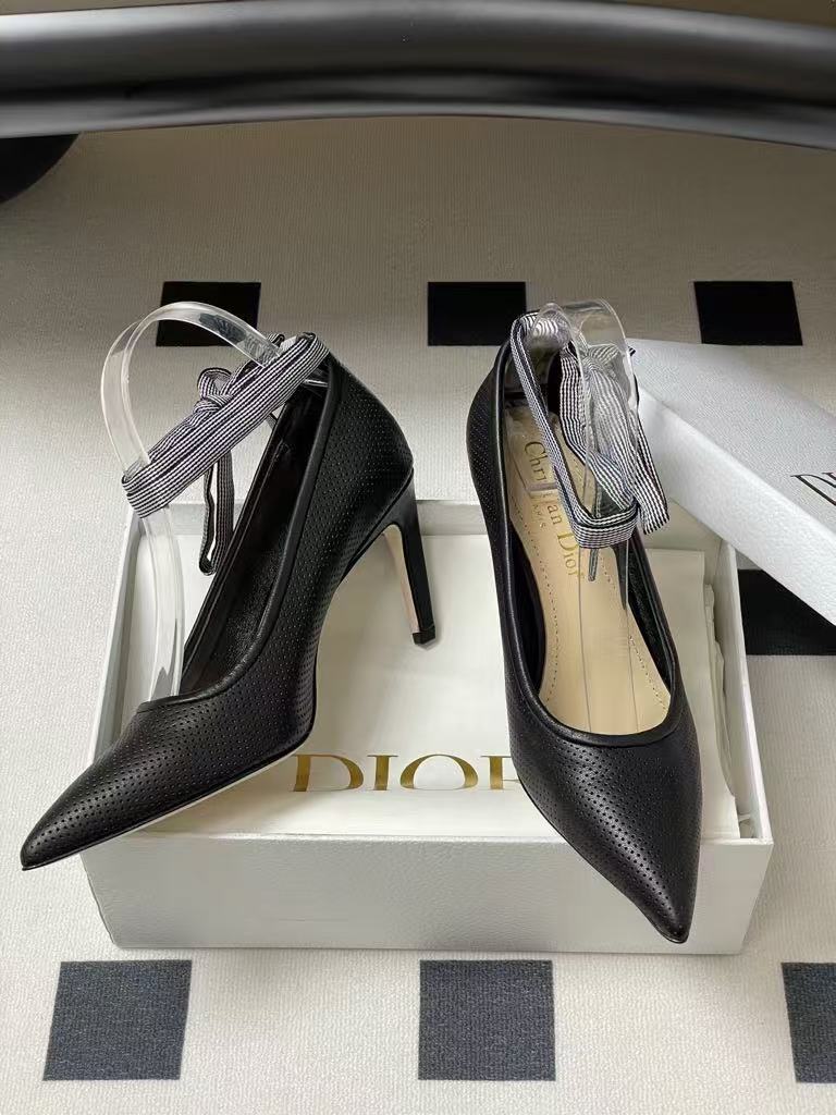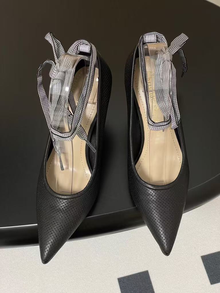 Dior new women’s fashion high-end comfortable versatile breathable genuine leather pinhole surface high heels
