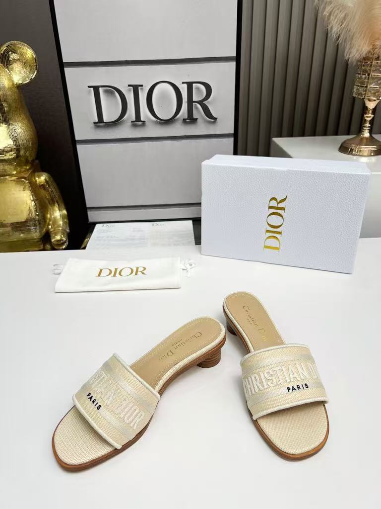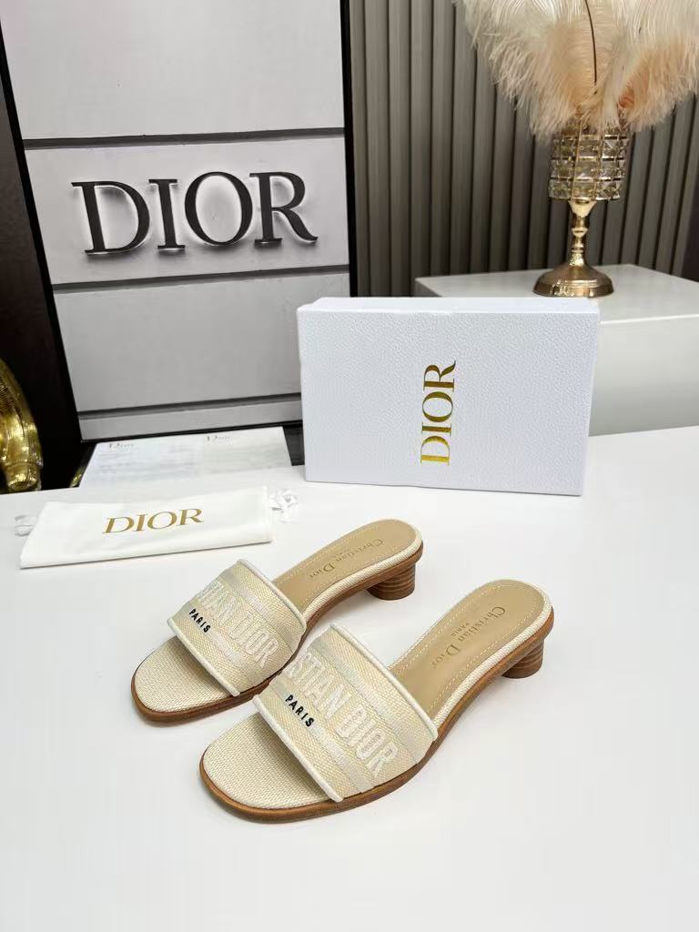 Dior new women’s trendy and fashionable all-match genuine leather printed embroidered high heels