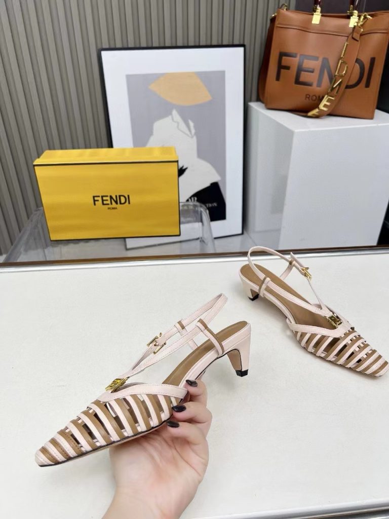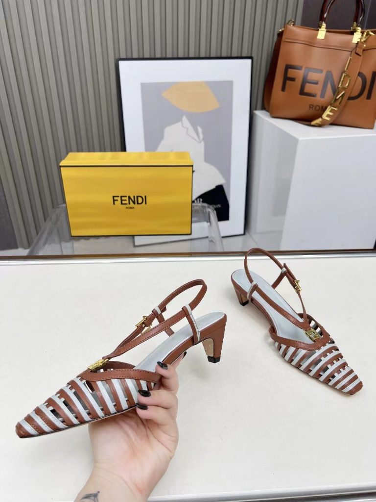Fendi’s new ladies’ fashionable and versatile color matching genuine leather high heels