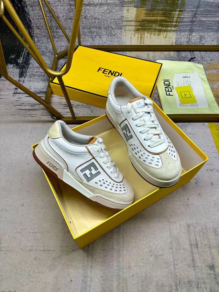 Fendi’s new men’s and women’s trendy high-end comfortable and versatile breathable genuine leather casual sports shoes