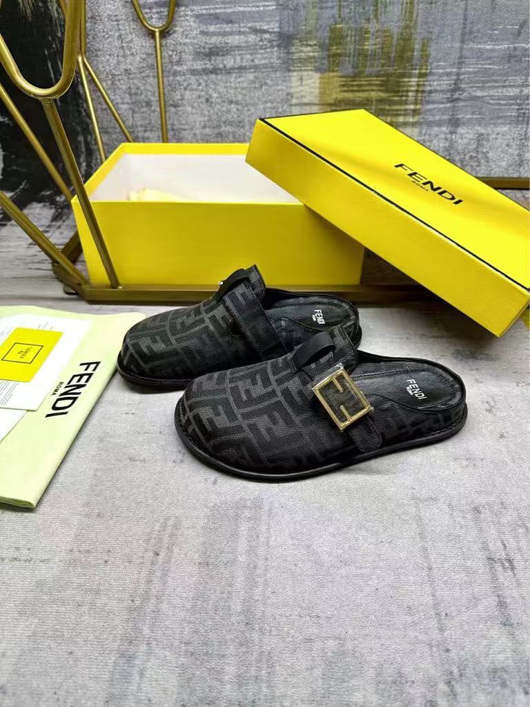 Fendi’s new men’s trendy high-end comfortable and versatile breathable genuine leather flat-soled half-covered slippers