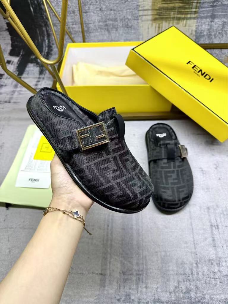 25 reviews for Fendi’s new men’s trendy high-end comfortable and versatile breathable genuine leather flat-soled half-covered slippers