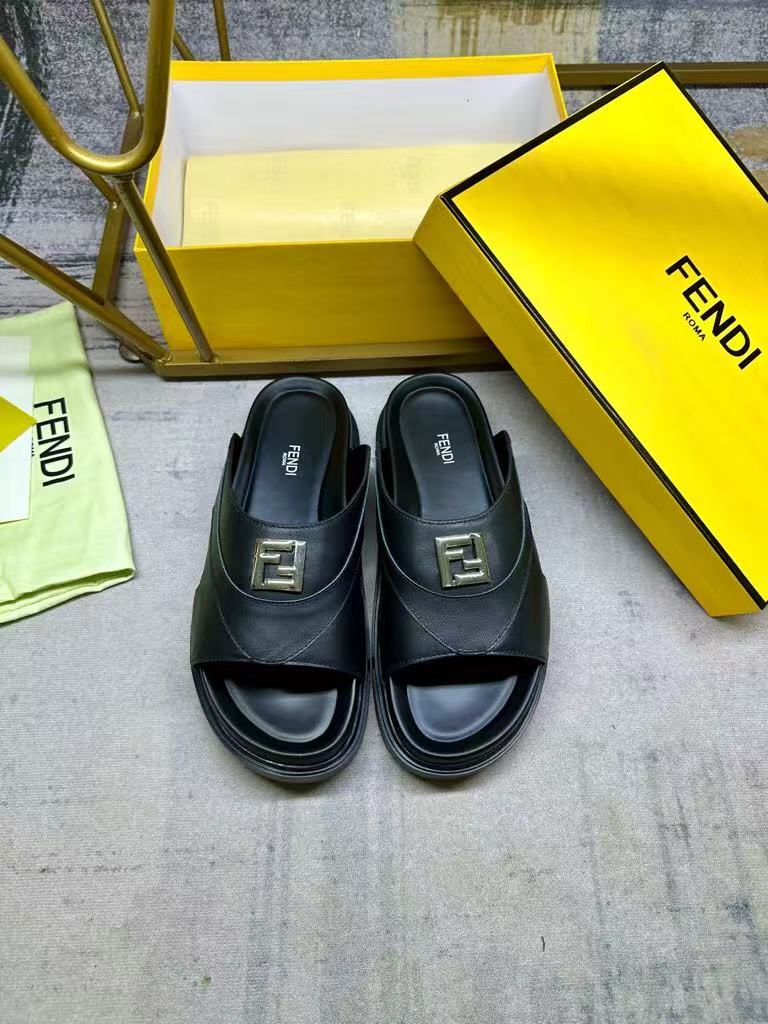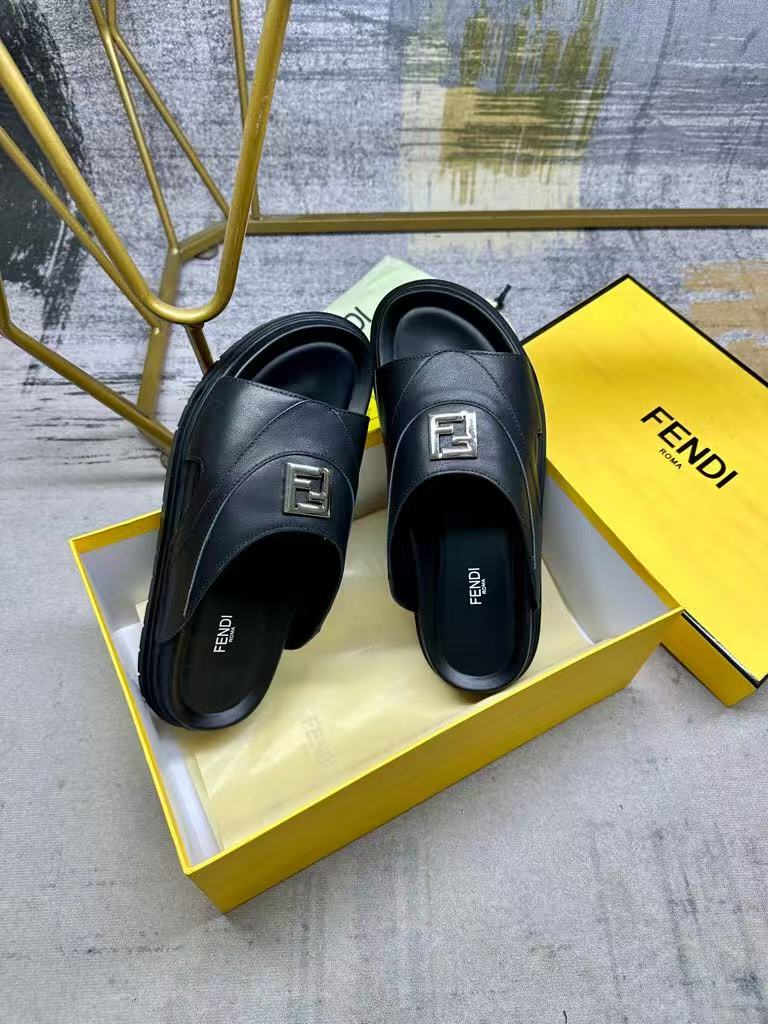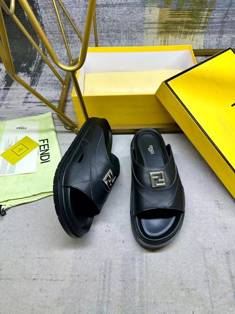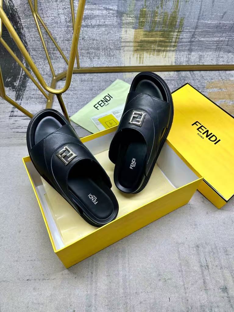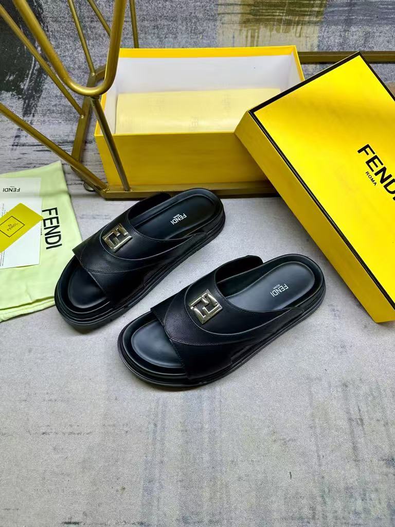 Fendi’s new men’s trendy high-end comfortable and versatile breathable leather flat slippers
