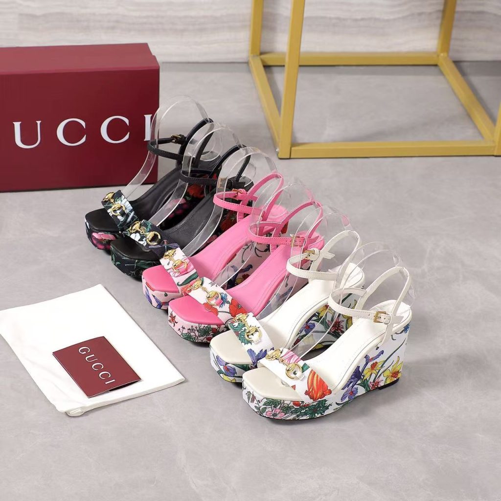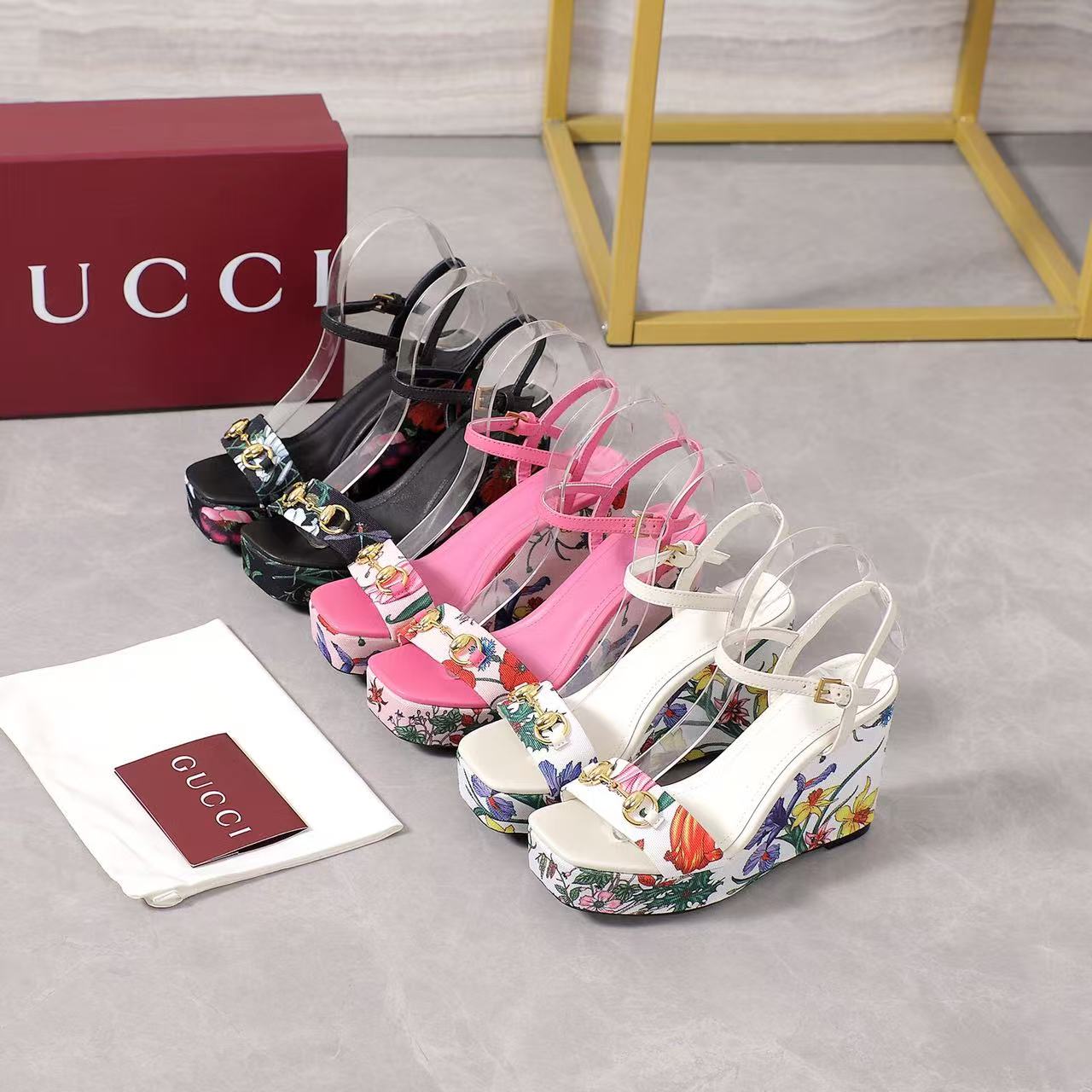 Gucci new ladies’ fashion trend all-match genuine leather casual high-heeled sandals