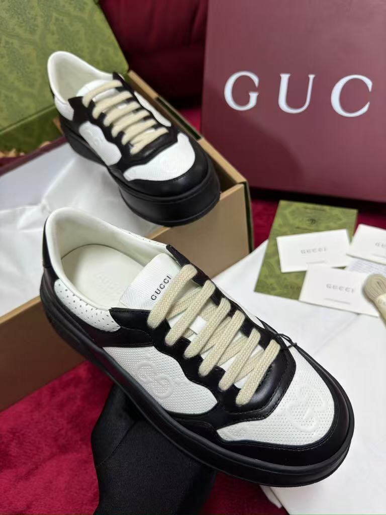 Gucci new men’s and women’s trendy leather fashion all-match original leather printed embossed casual shoes