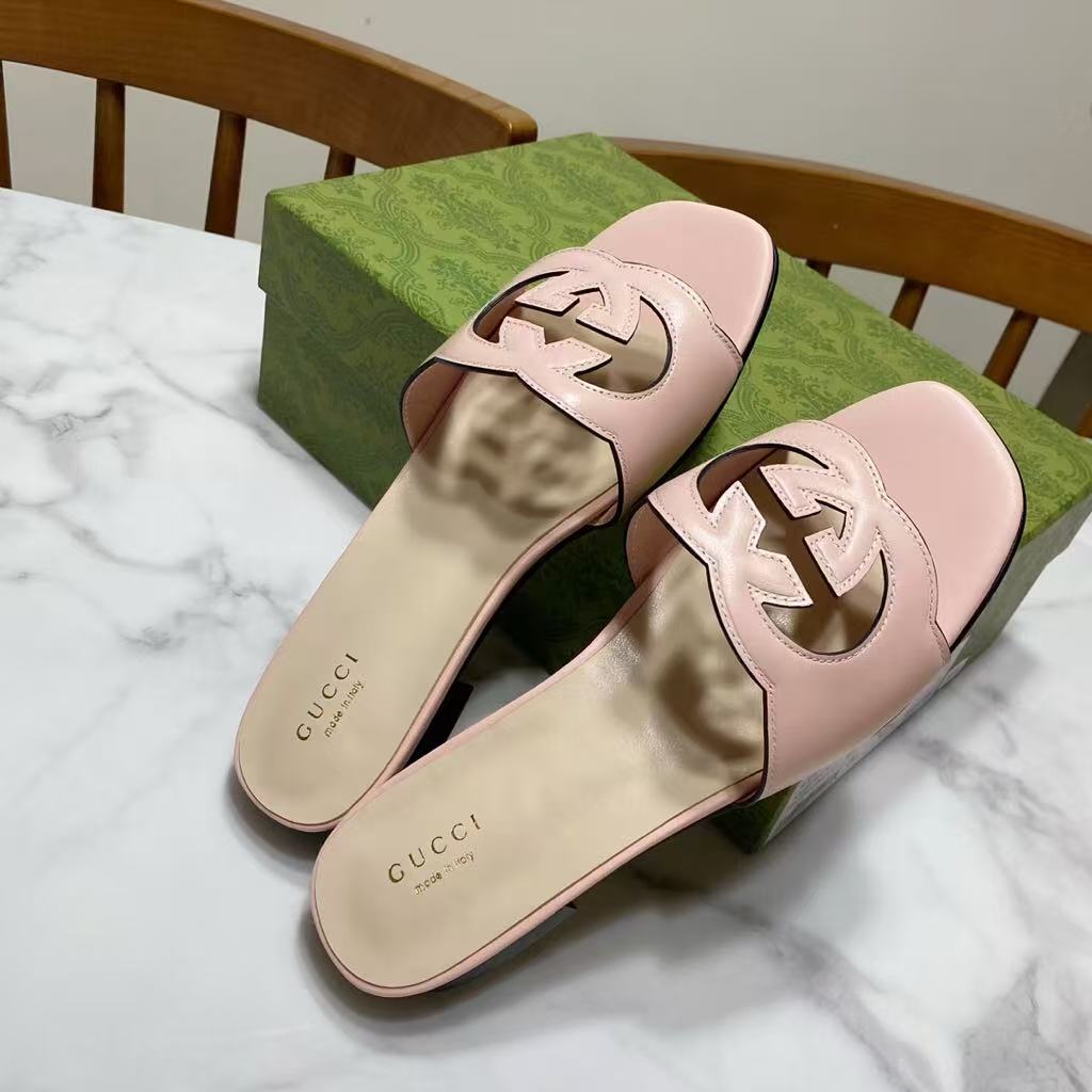 Gucci new women’s fashion leather fashion all-match original leather outsole casual slippers