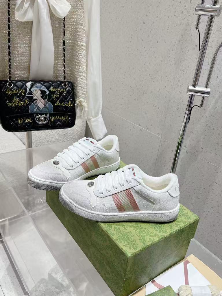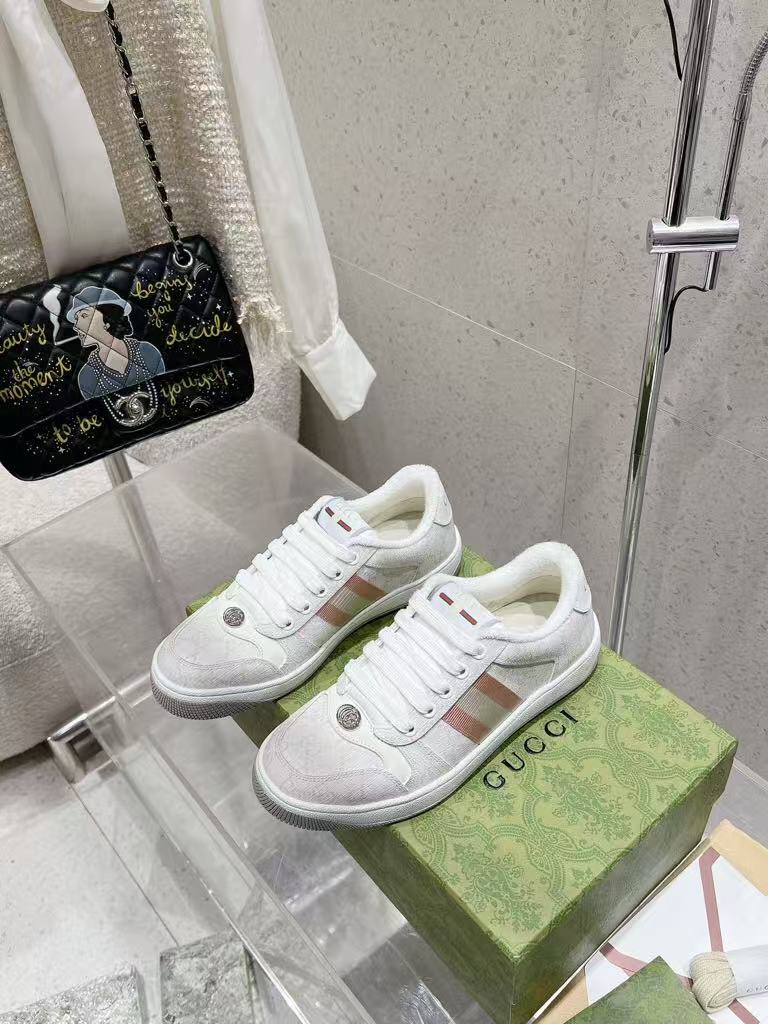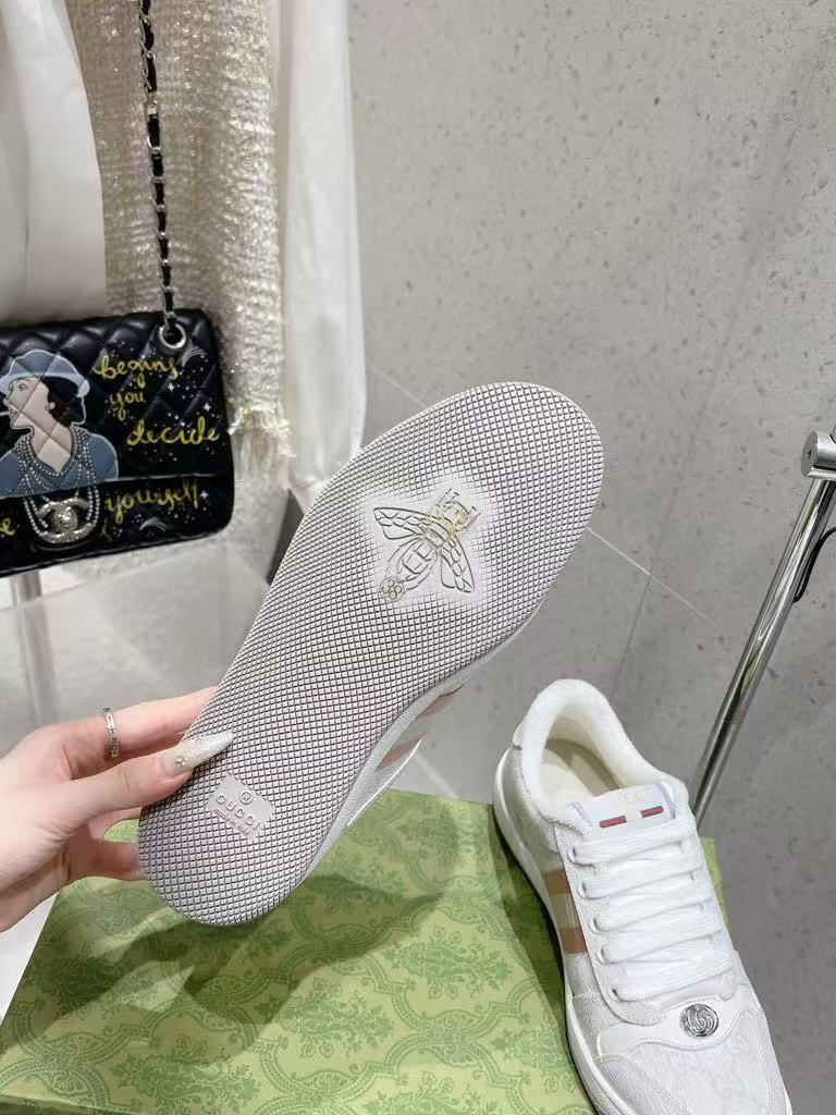 Gucci new women’s style genuine leather fabric lining breathable towel fleece lining comfortable loafers