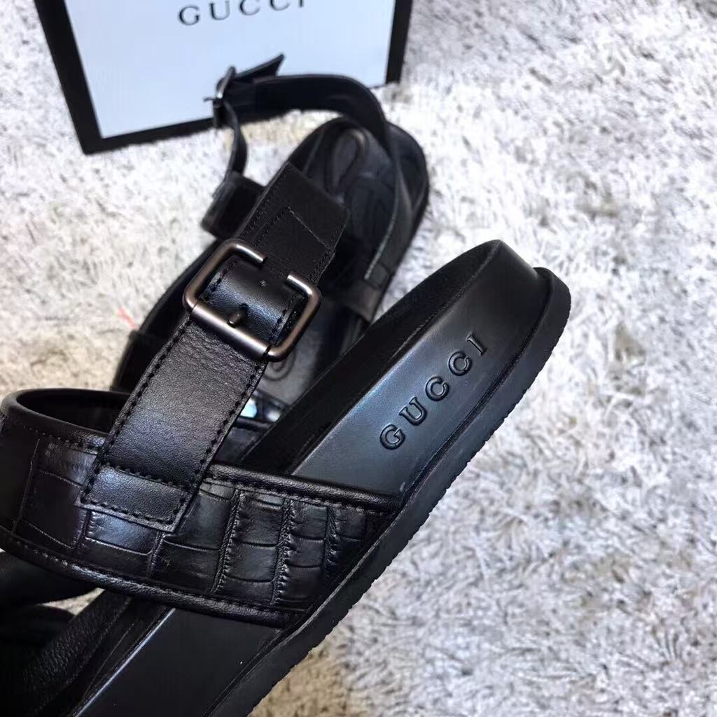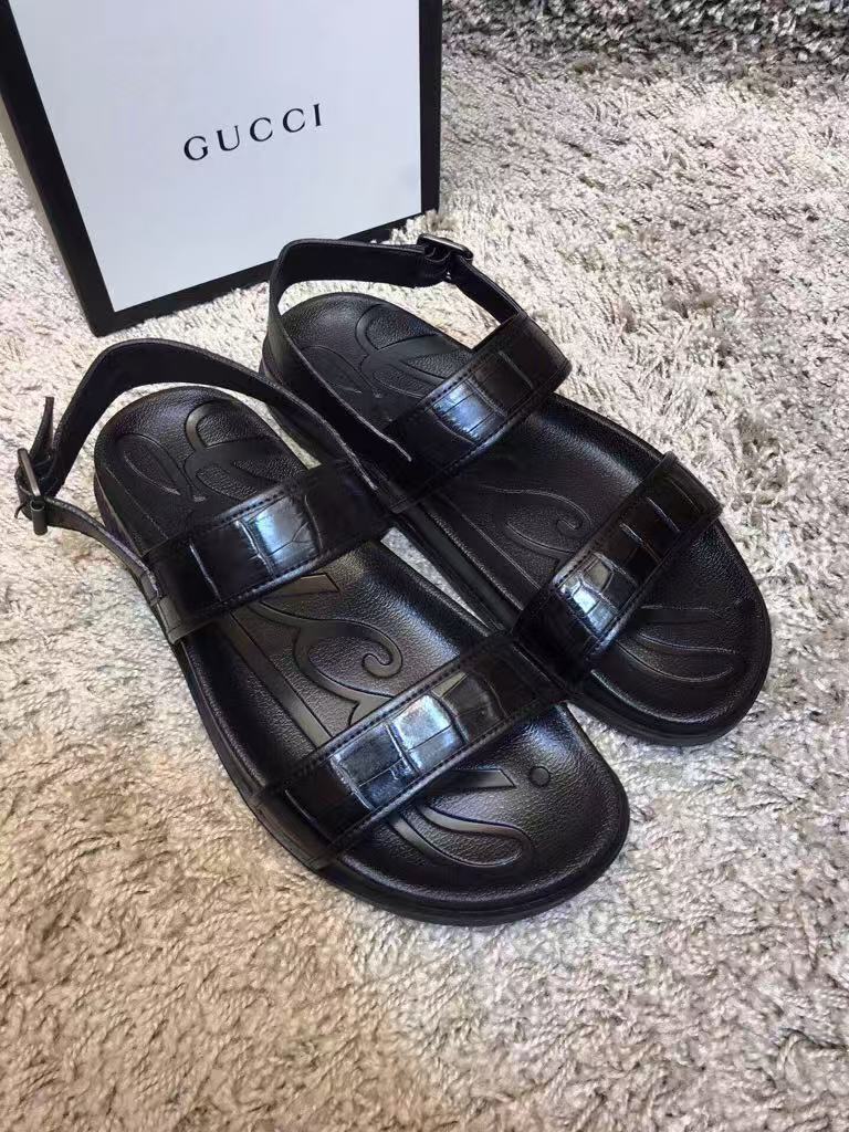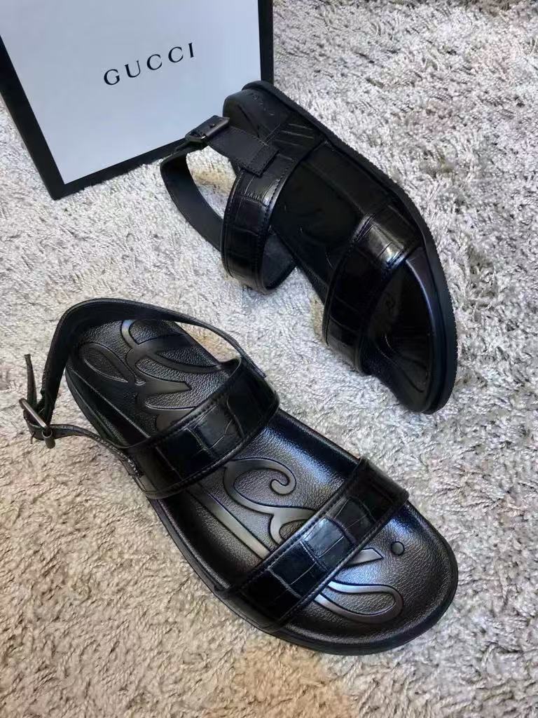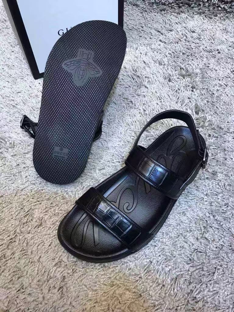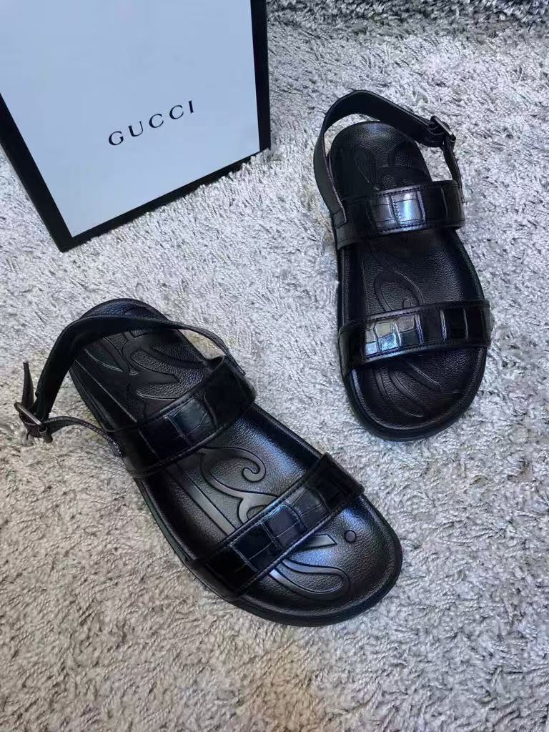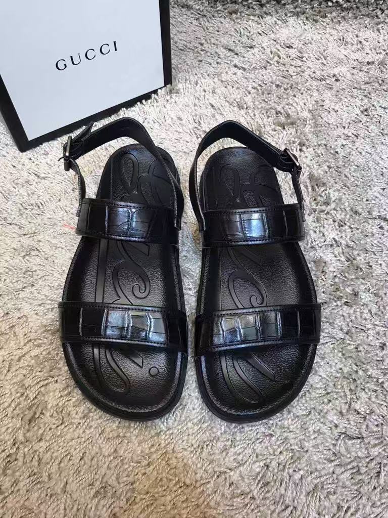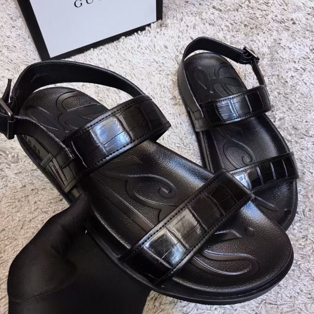 Gucci’s new men’s hot-selling fashion versatile comfortable shiny leather flat sandals