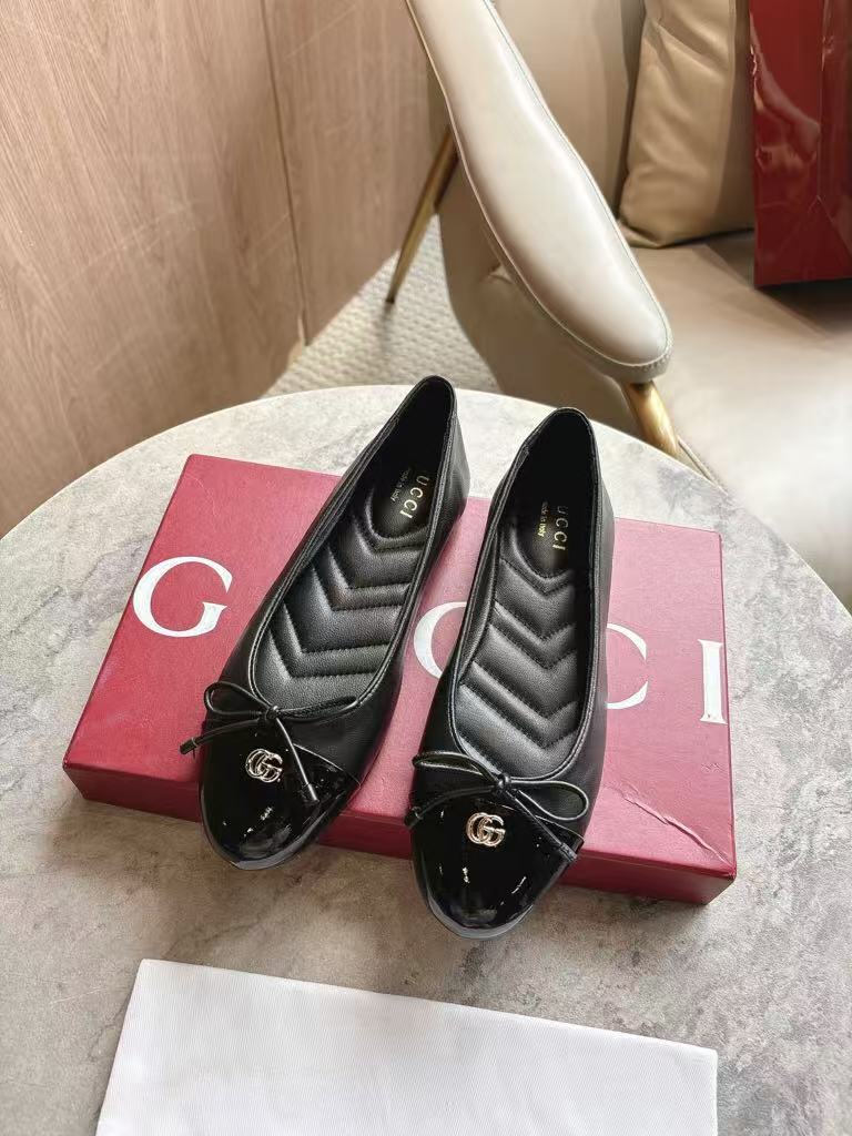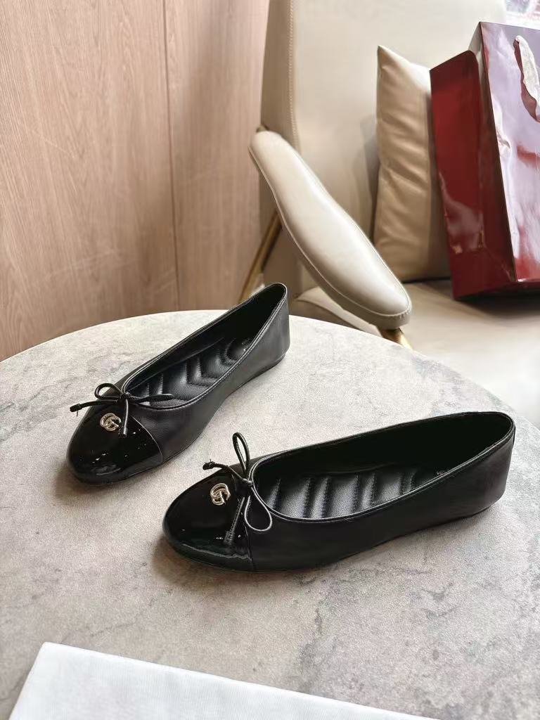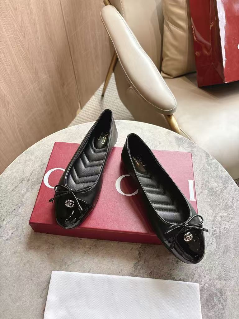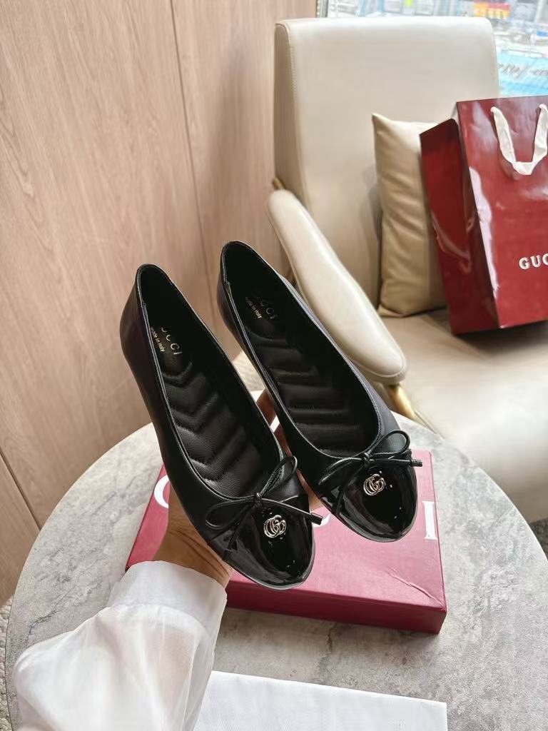 Gucci’s new women’s hot-selling elegant and fashionable versatile shiny leather ballet flats