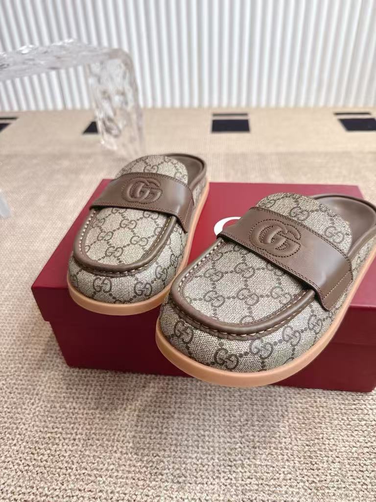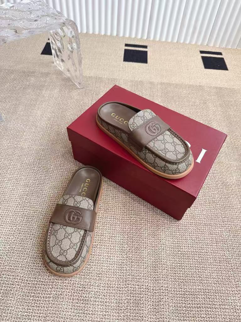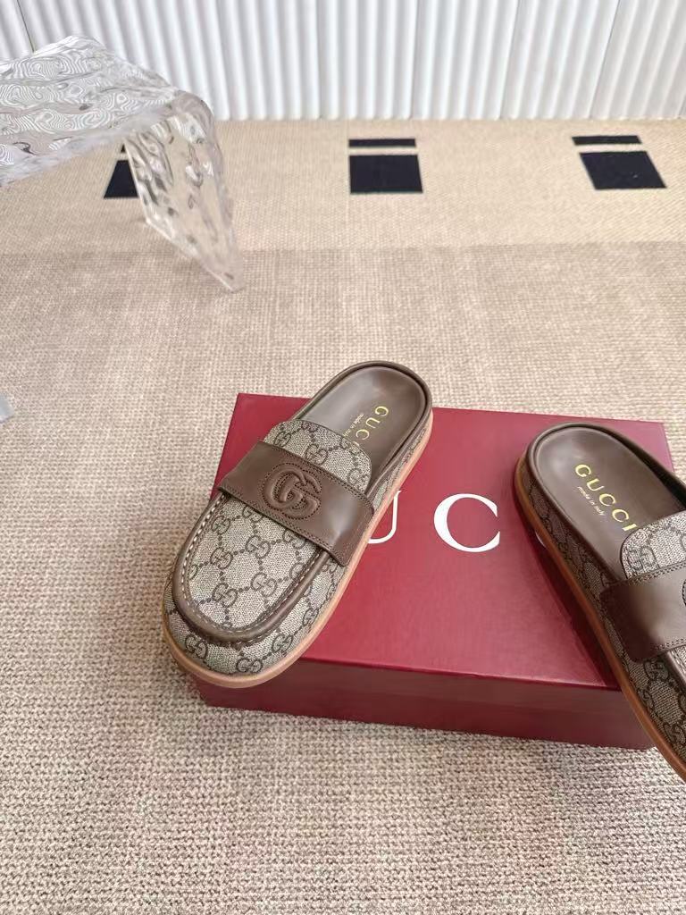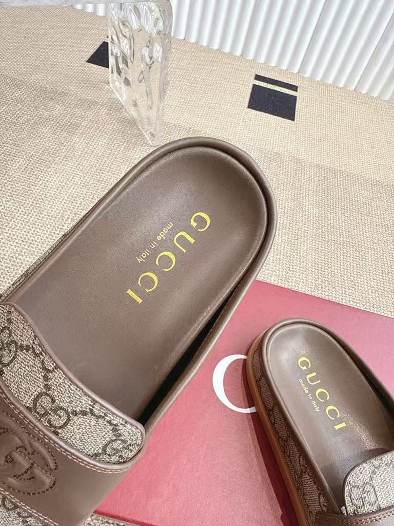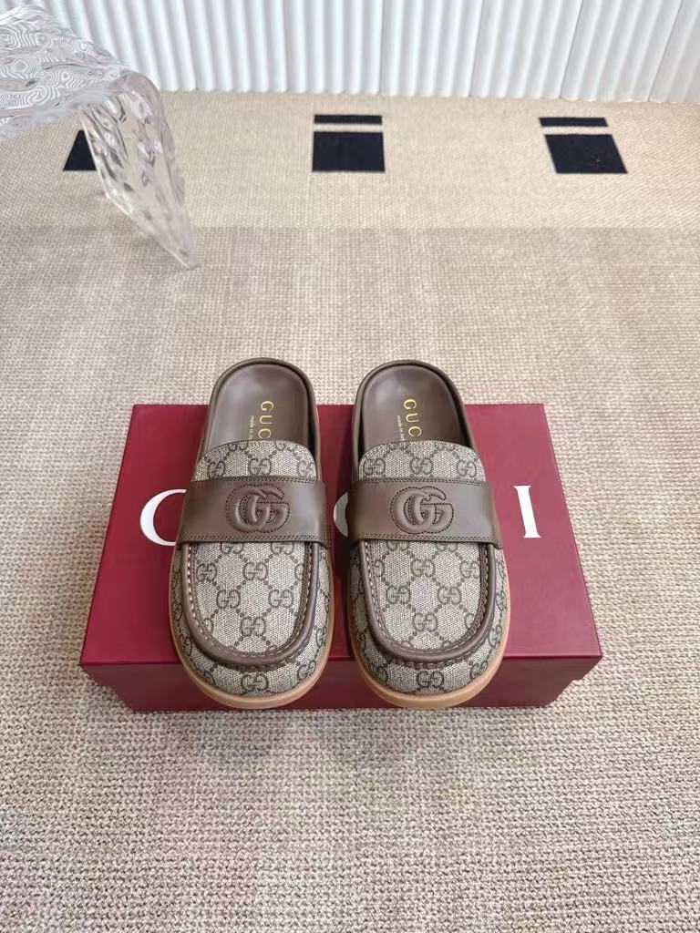 Gucci’s new women’s leather lining is breathable and comfortable, retro big head textured casual slippers