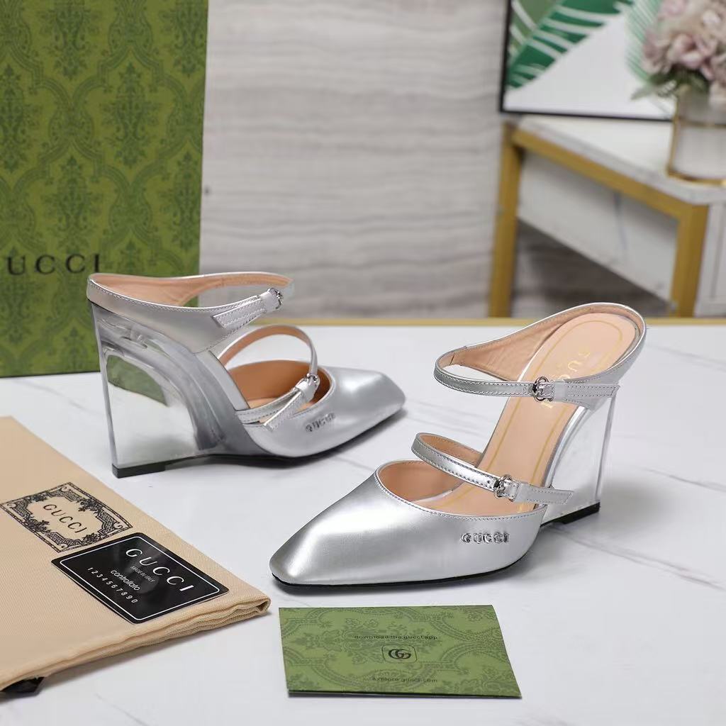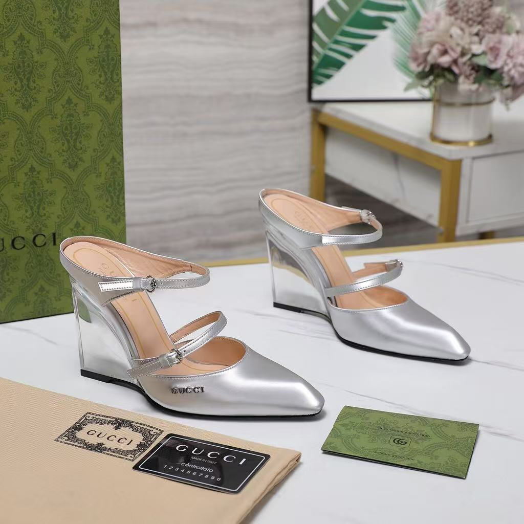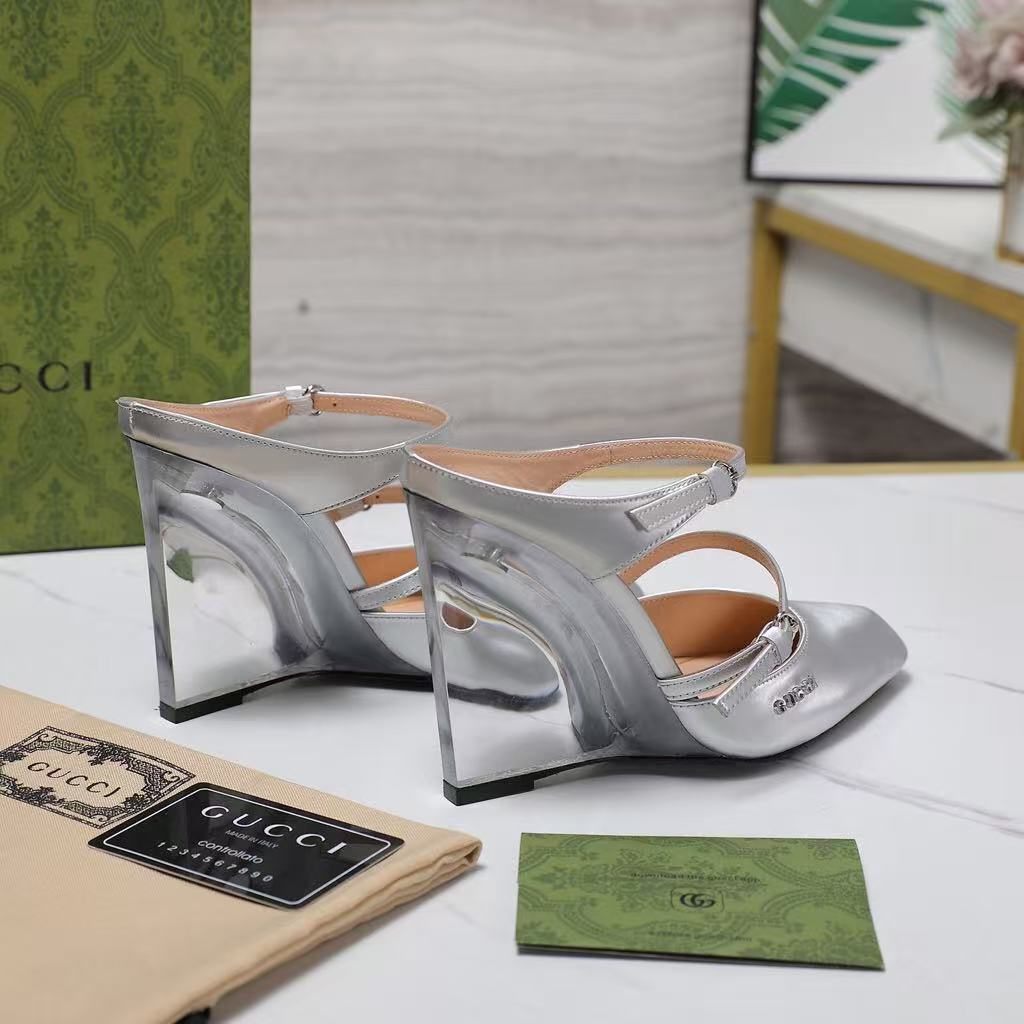 Gucci’s new women’s popular genuine leather fashionable and versatile comfortable casual wedge heel high heel sandals