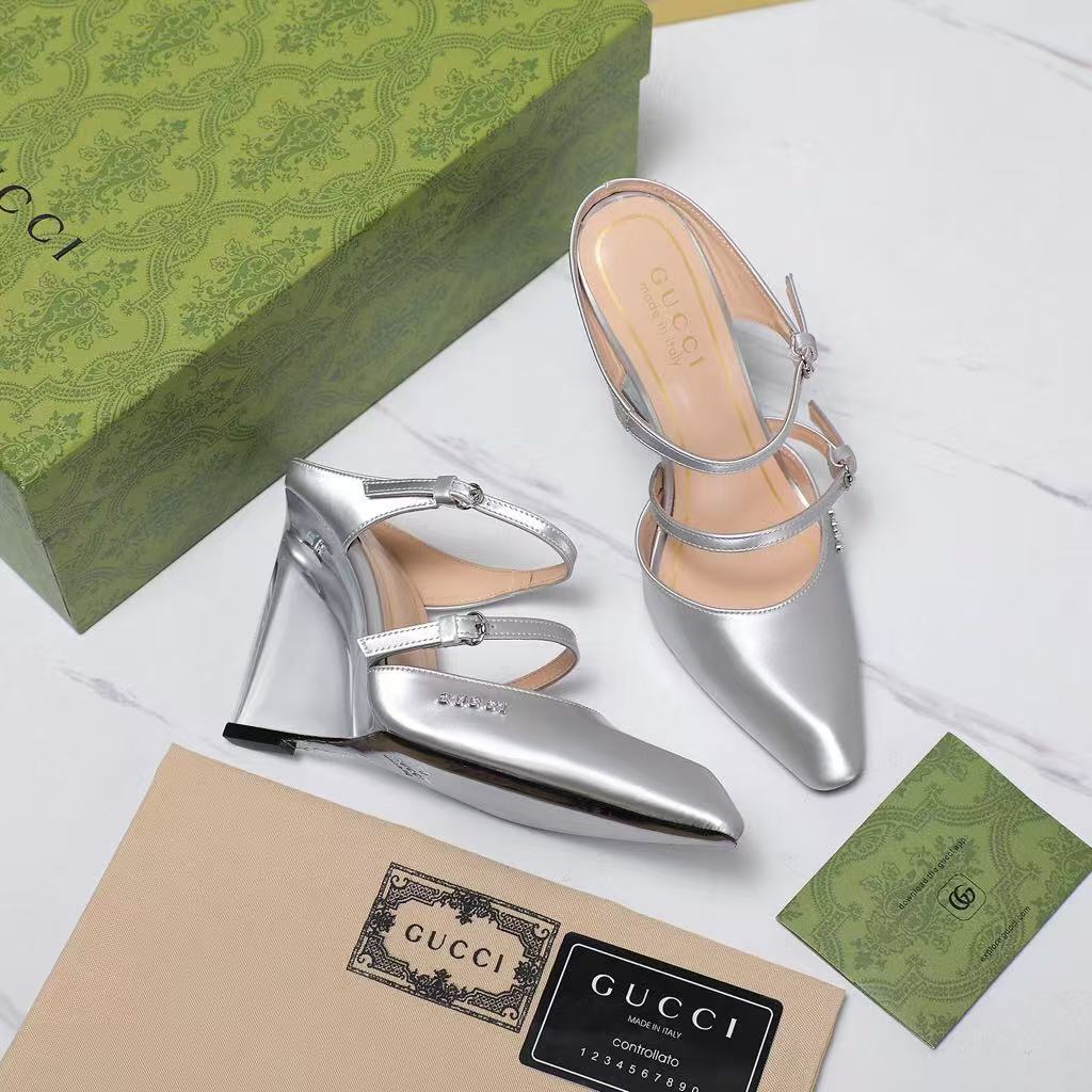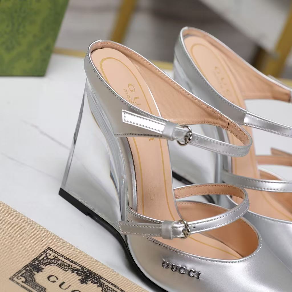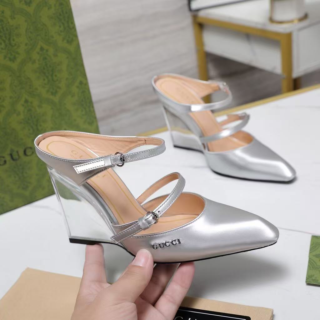 Gucci’s new women’s popular genuine leather fashionable and versatile comfortable casual wedge heel high heel sandals