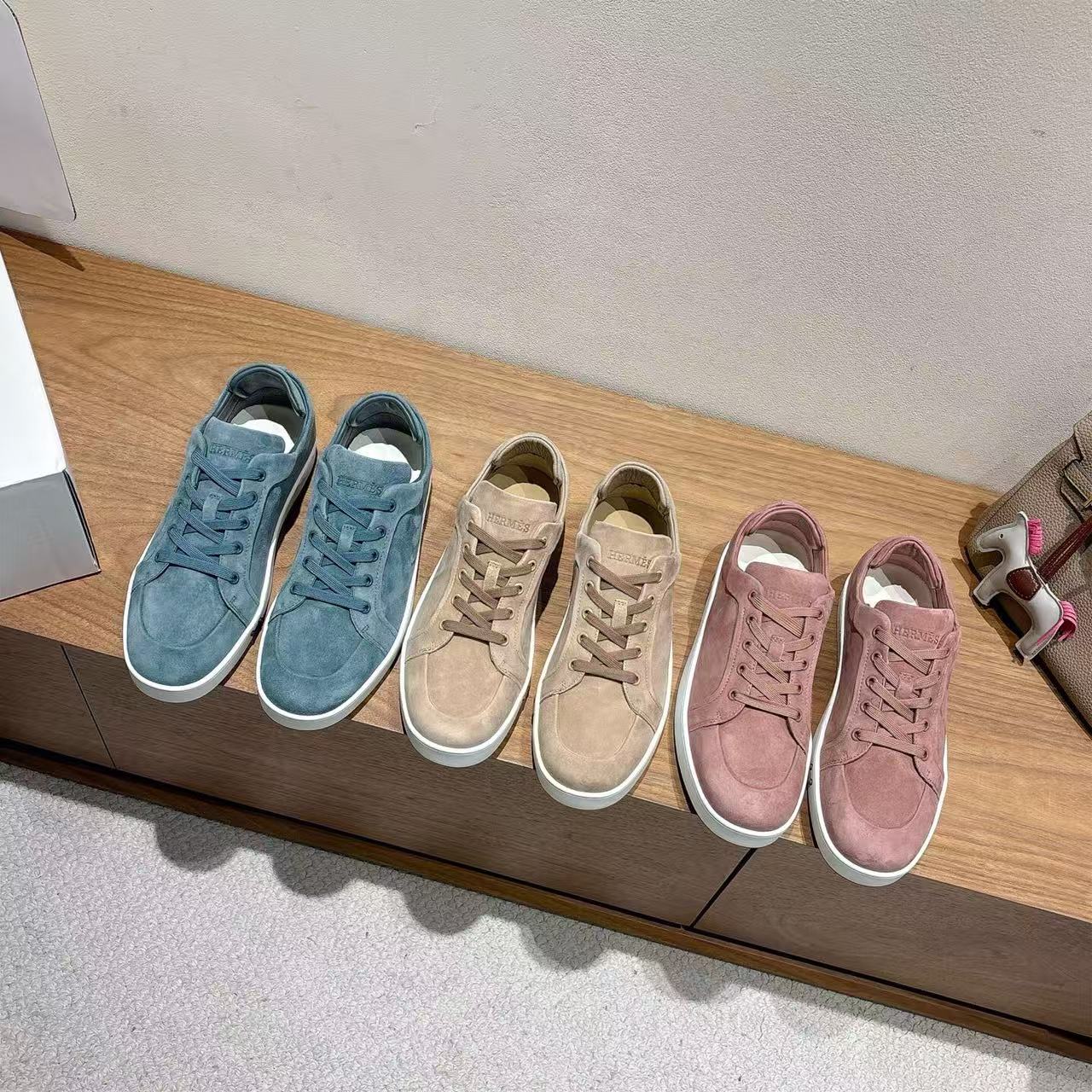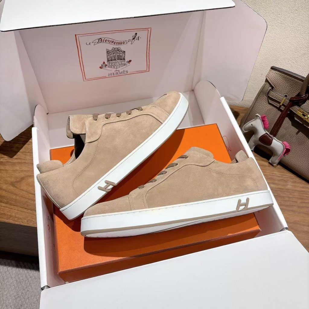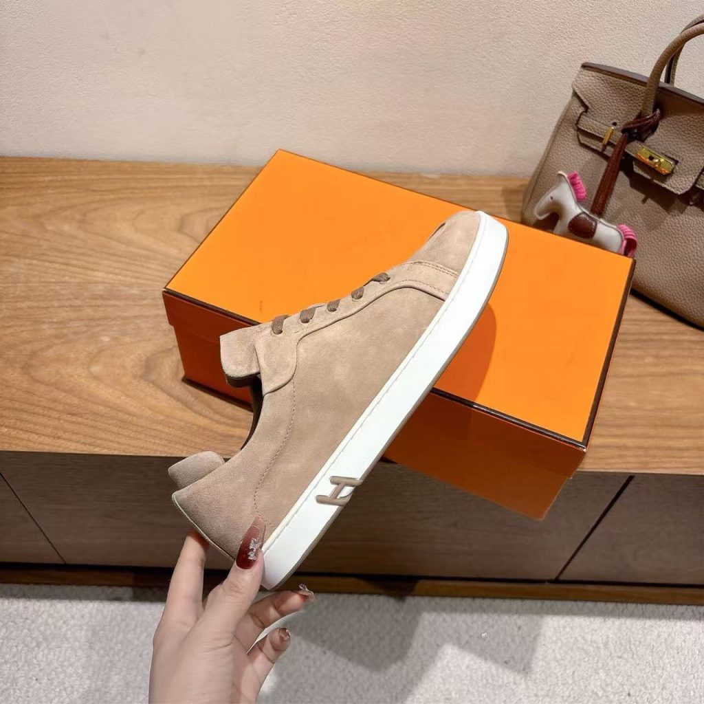 Hermes 2025 new fashion versatile men and women couples genuine leather sports casual shoes