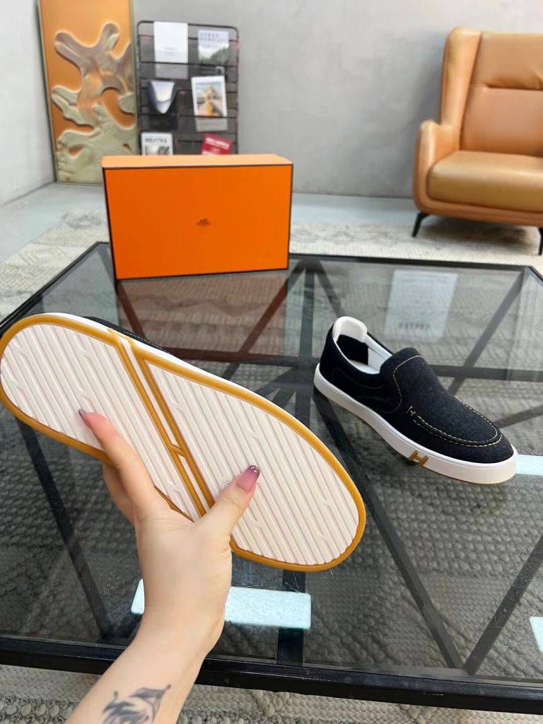 Hermes new fashion trend men’s denim deerskin casual shoes