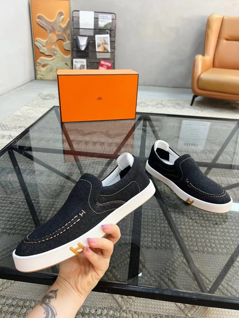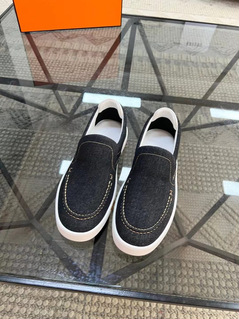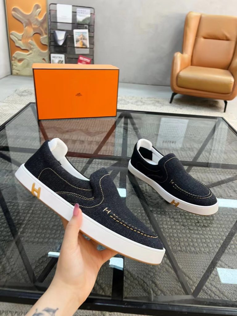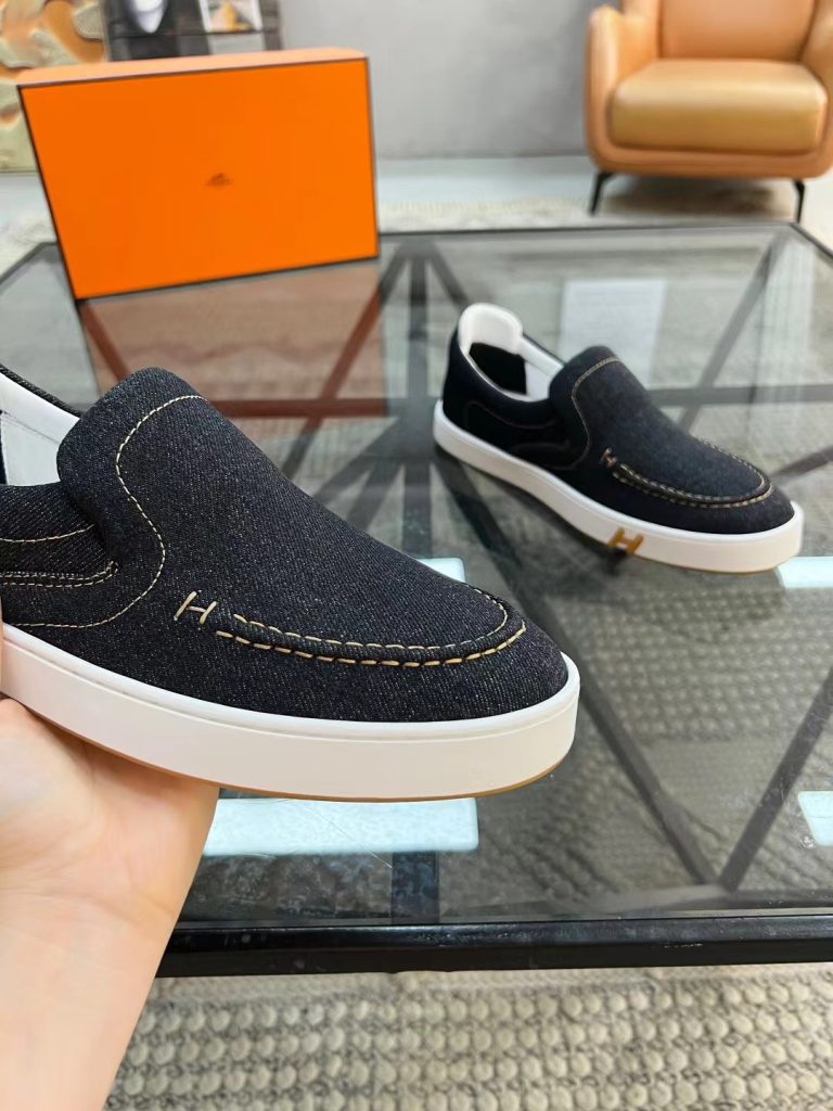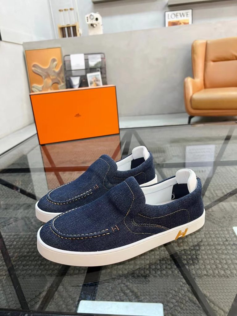 Hermes new fashion trend men’s denim deerskin casual shoes
