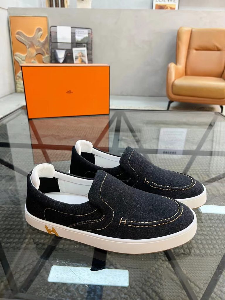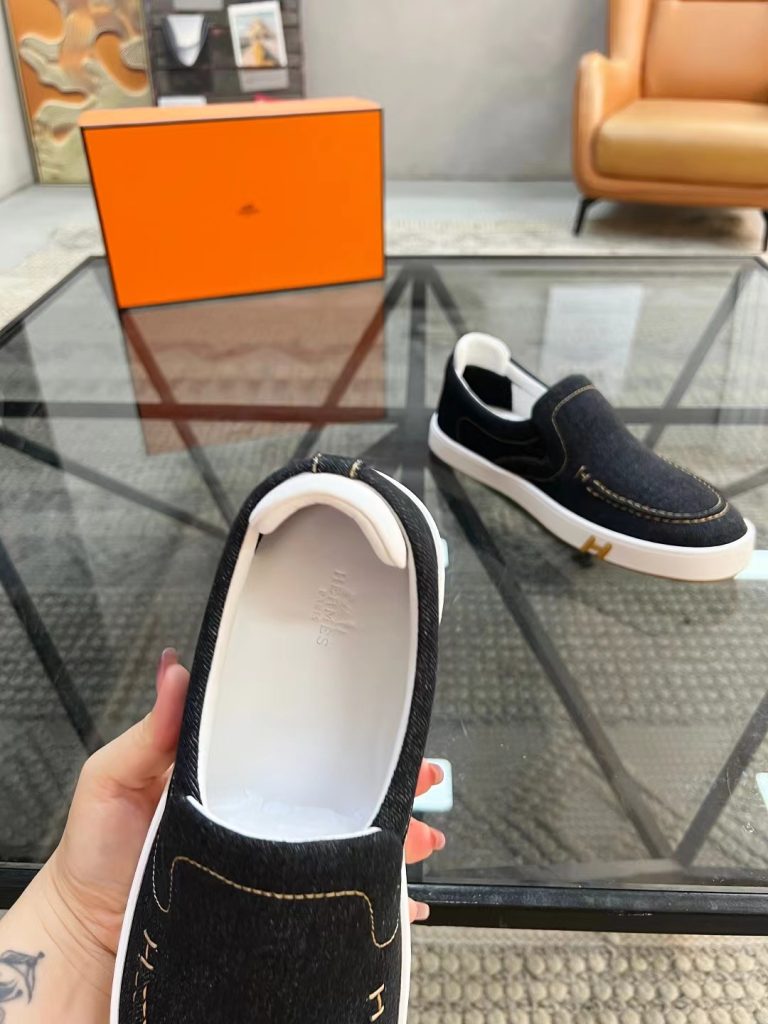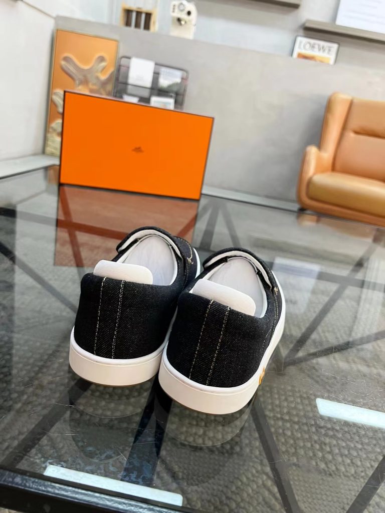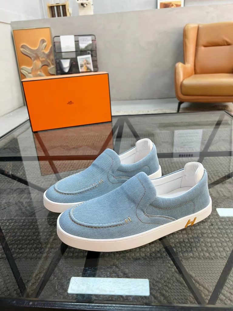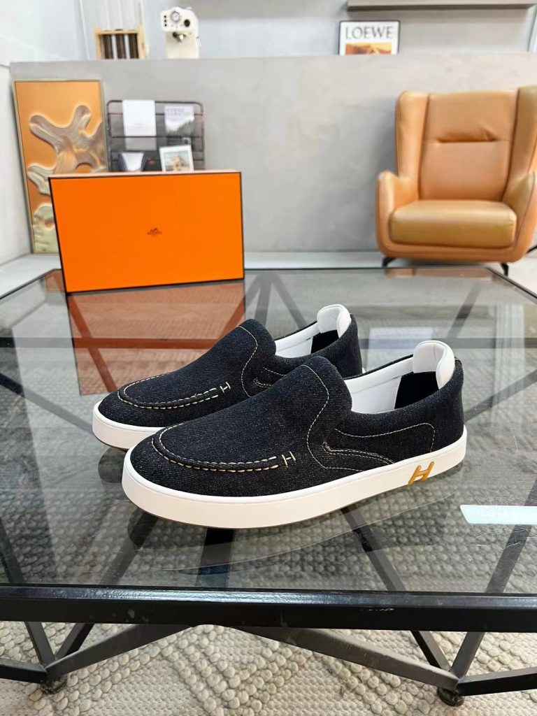 Hermes new fashion trend men’s denim deerskin casual shoes