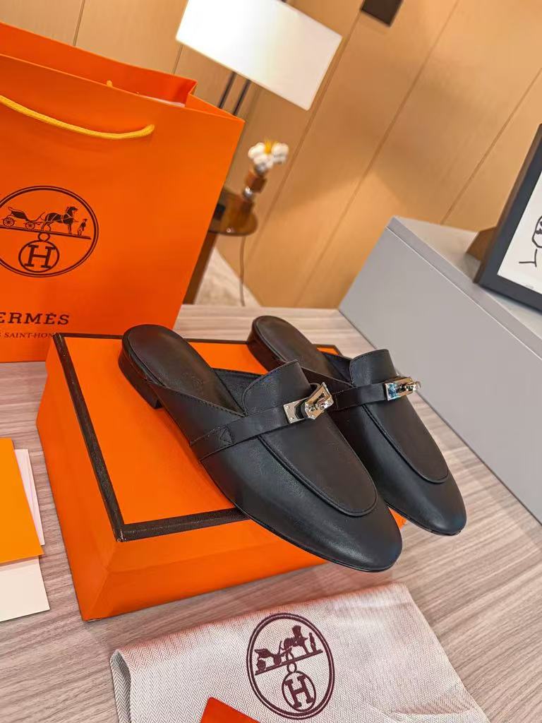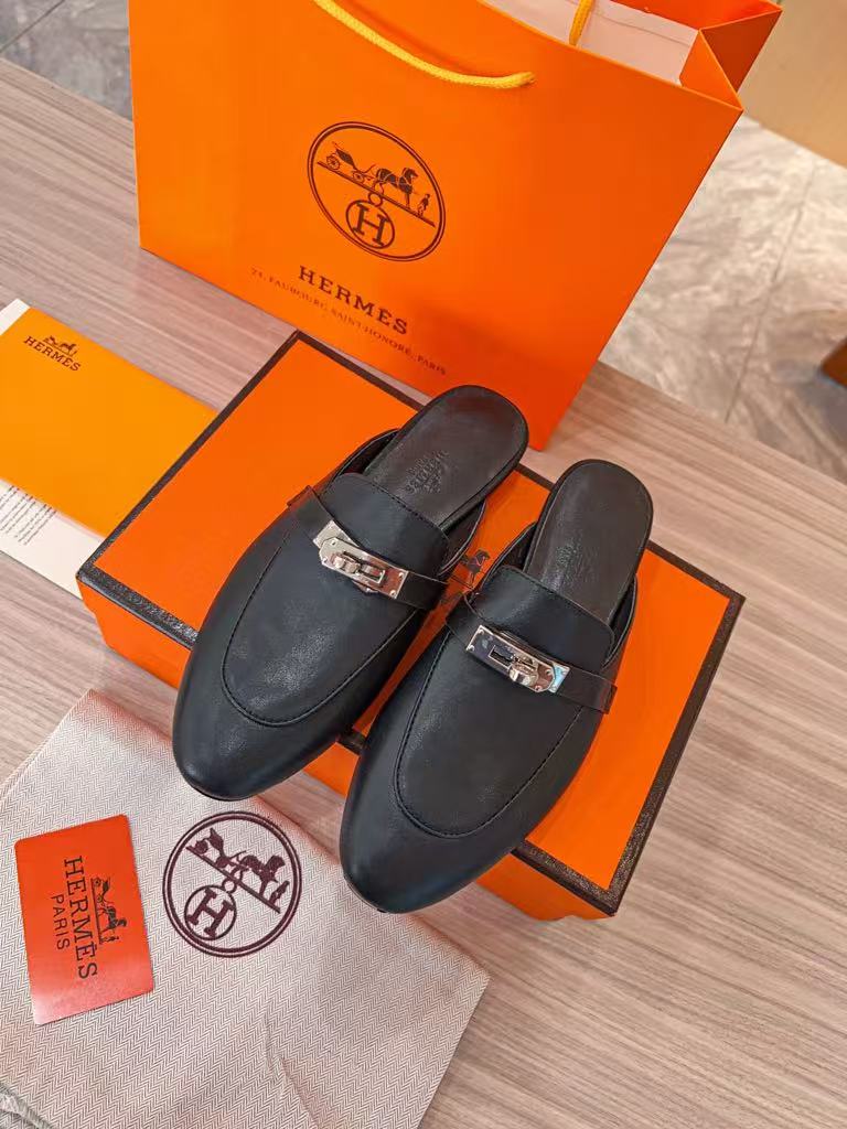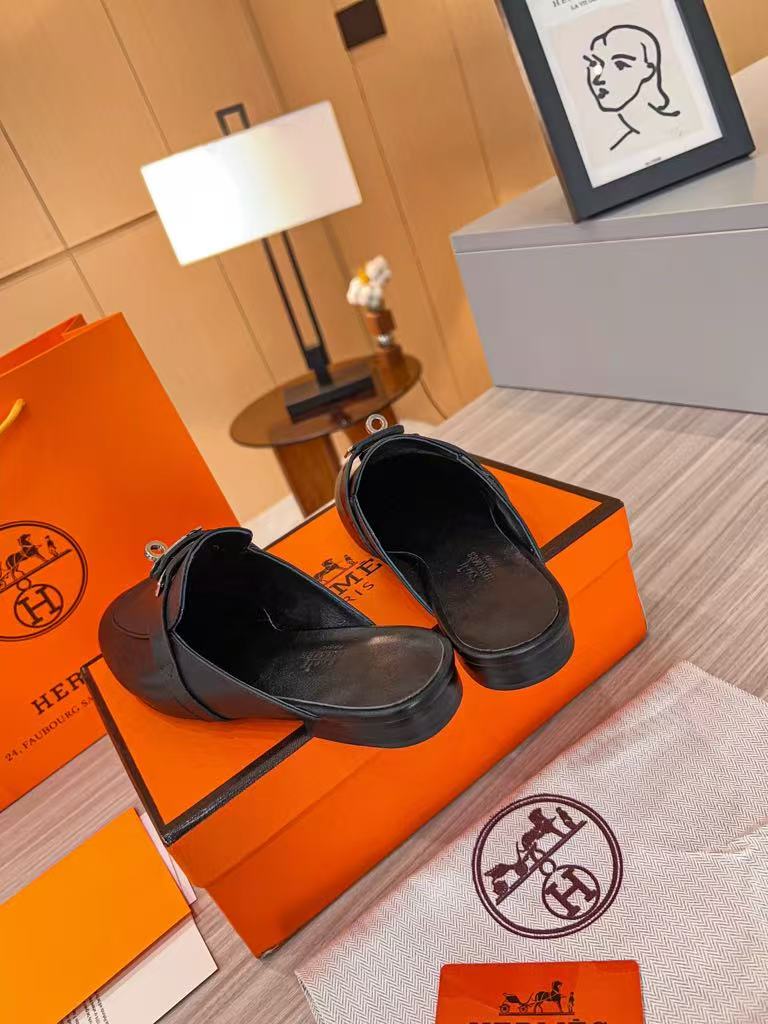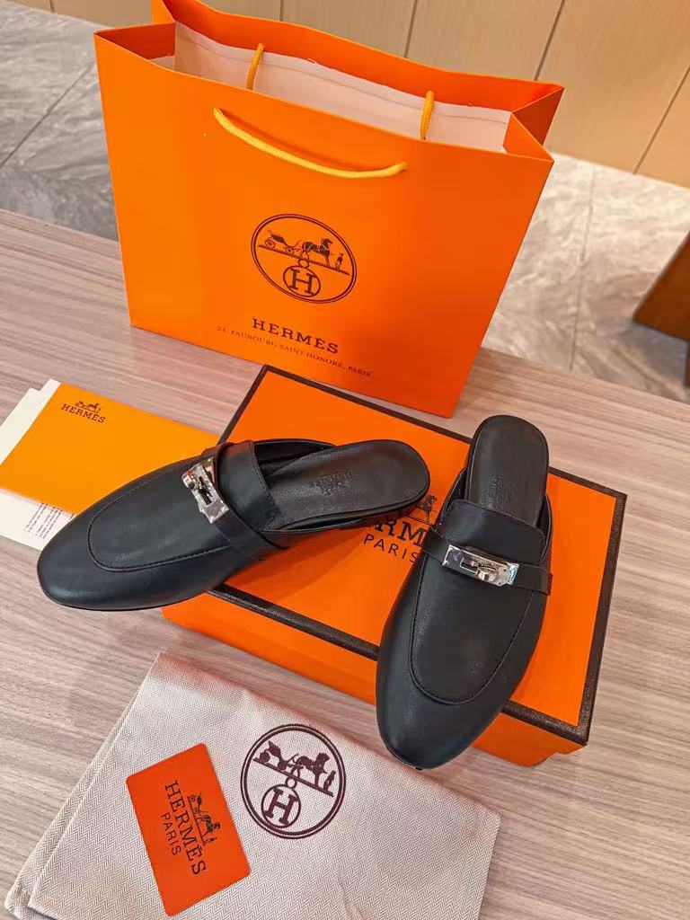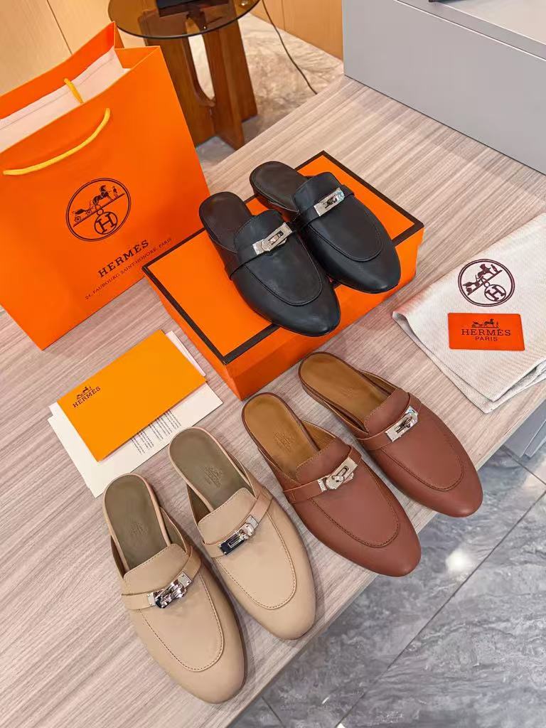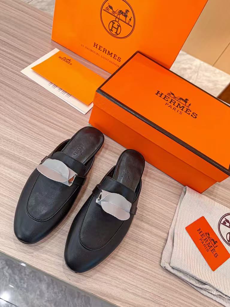 Hermes new ladies’ fashion trend genuine leather all-match casual half slippers