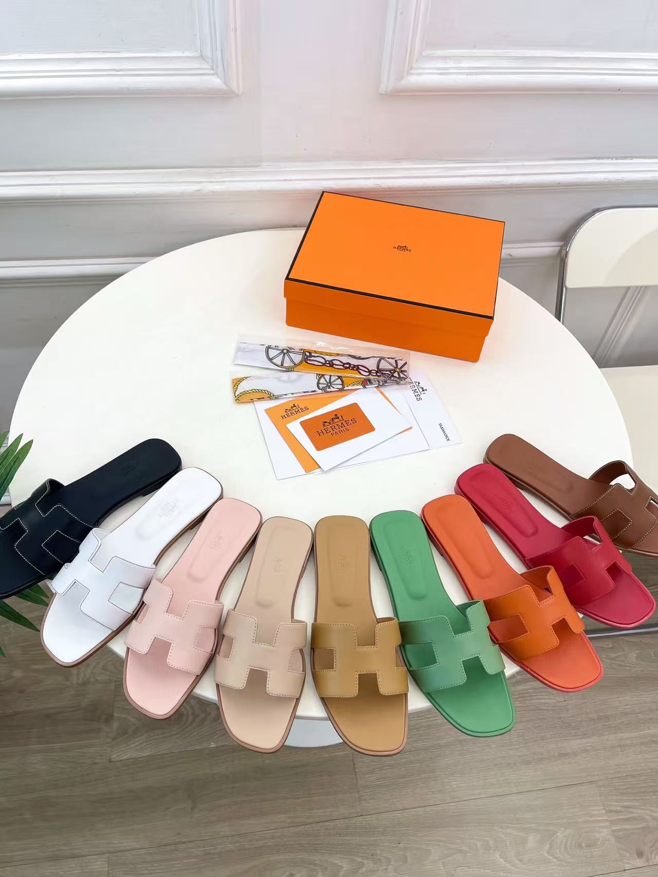 Hermès new ladies’ pure handmade leather sole fashionable and versatile casual sandals