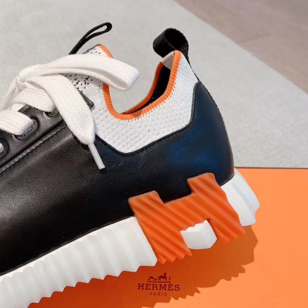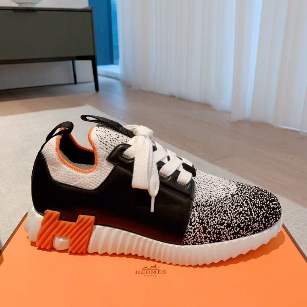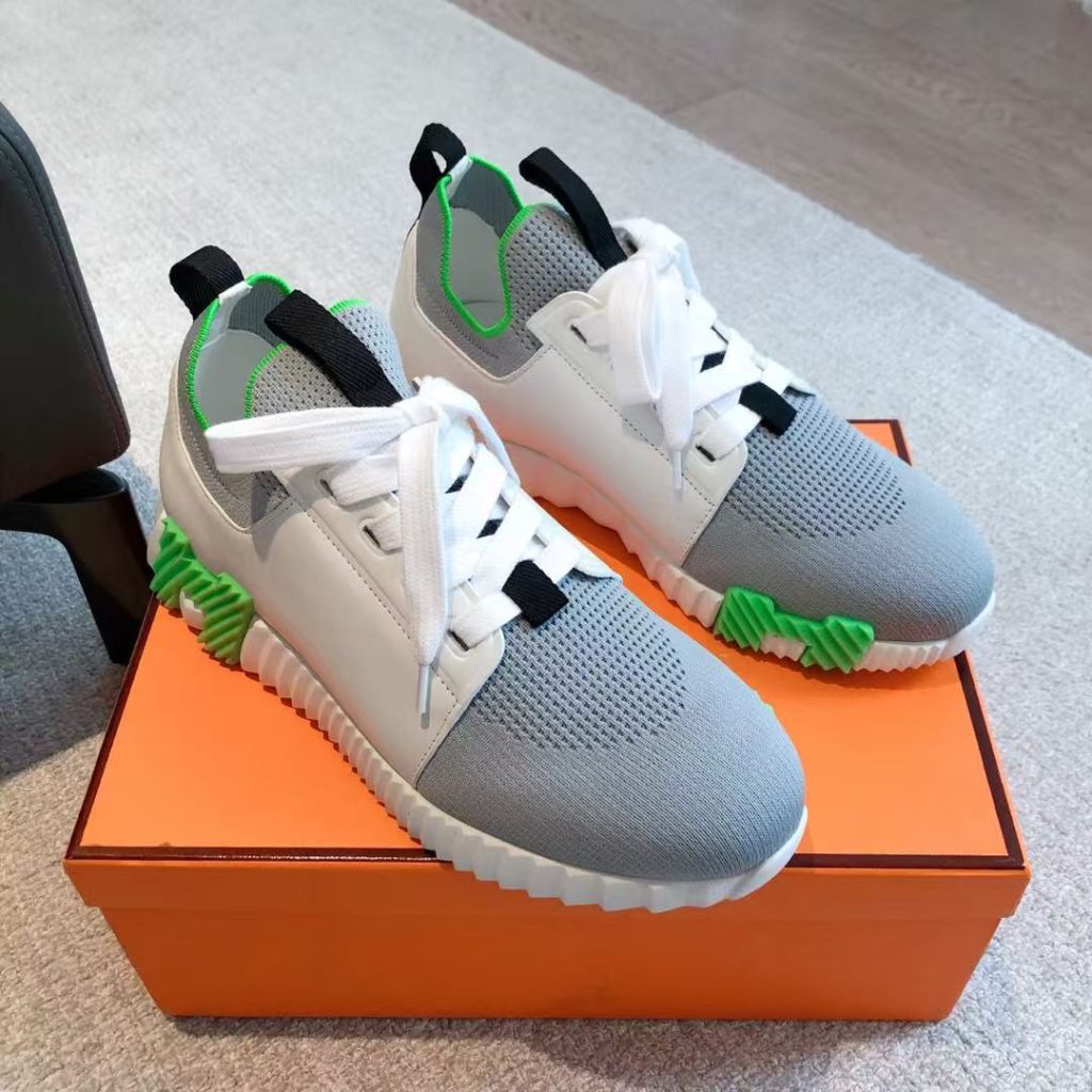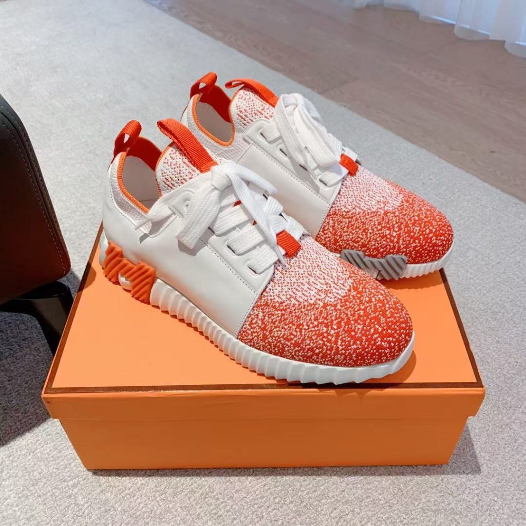 Hermes new men’s and women’s couple’s knitted lace-up genuine leather outsole fashion sports casual shoes