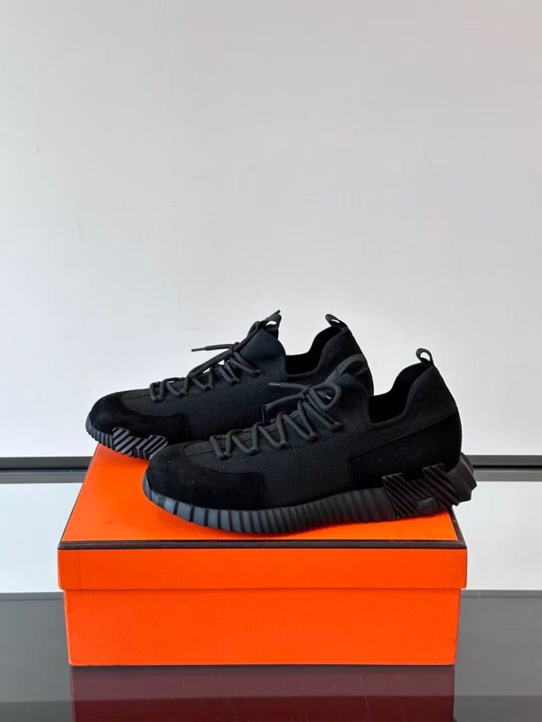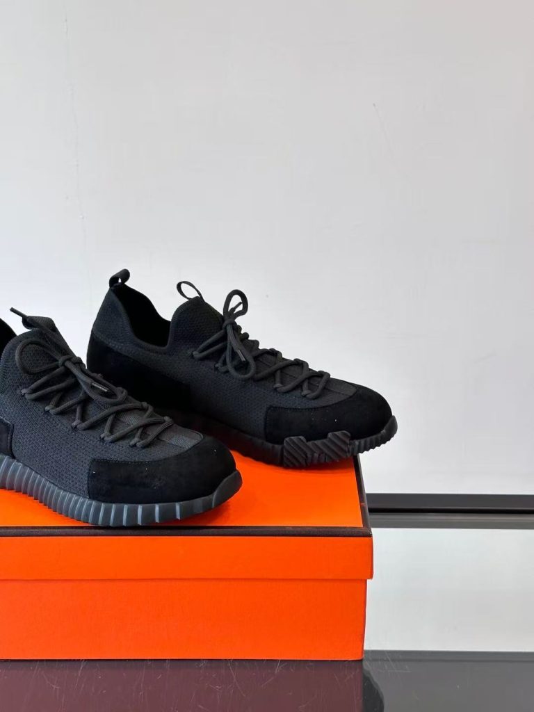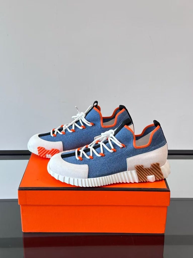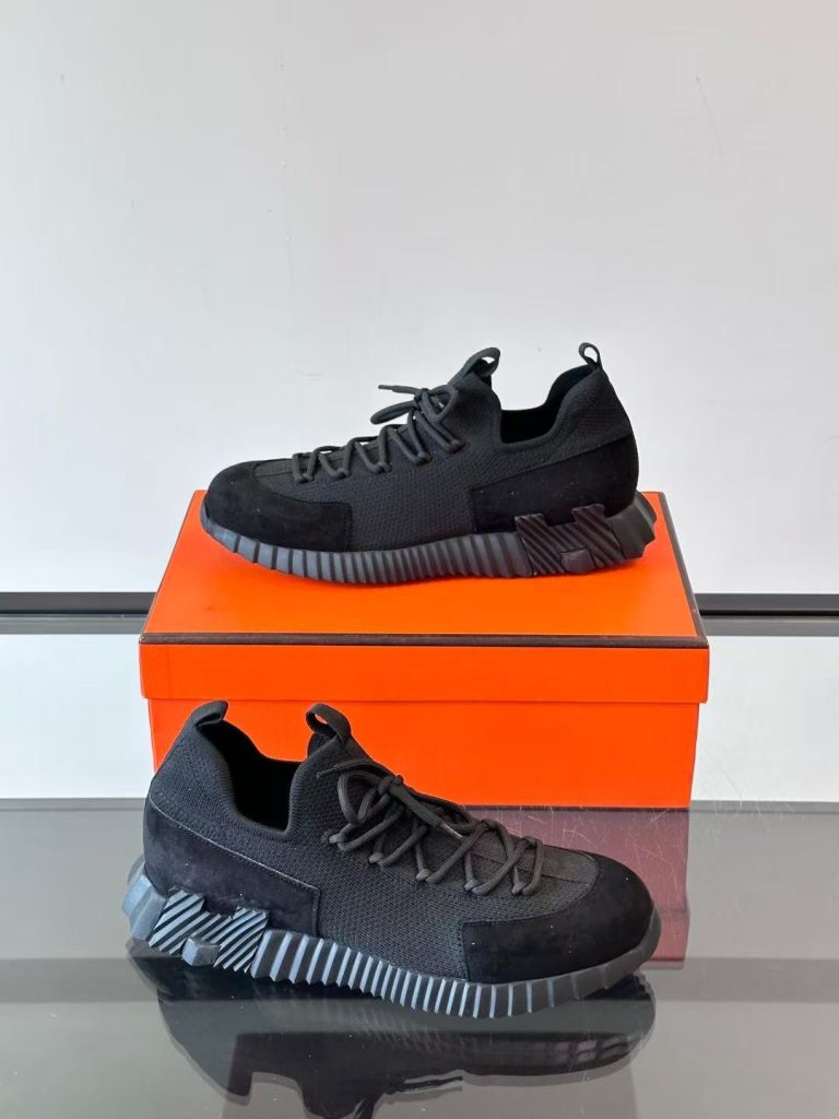Hermes new men’s fashion cowhide with flying woven fabric comfortable and breathable sports casual shoes