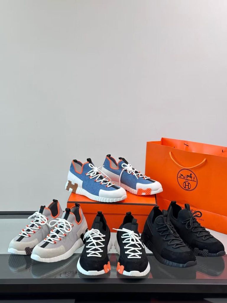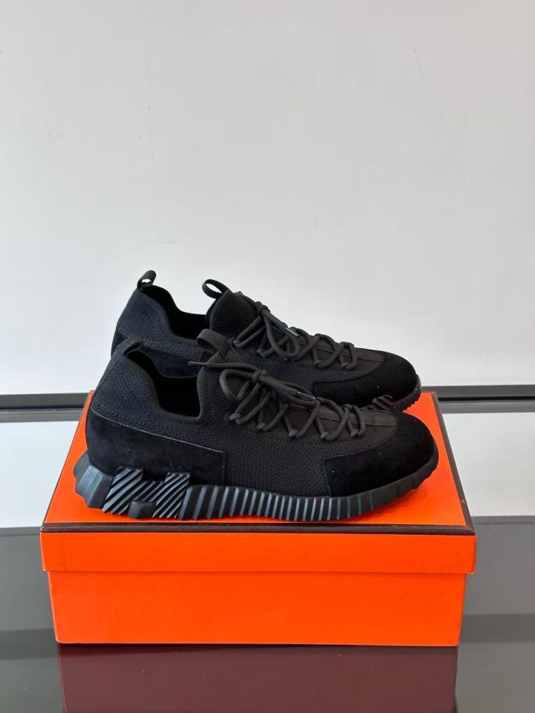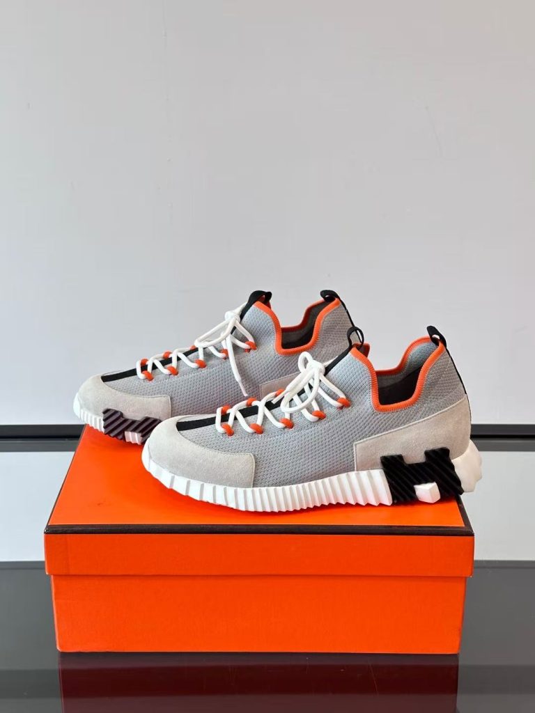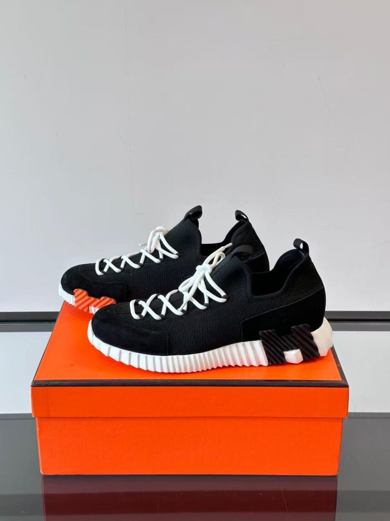 Hermes new men’s fashion cowhide with flying woven fabric comfortable and breathable sports casual shoes