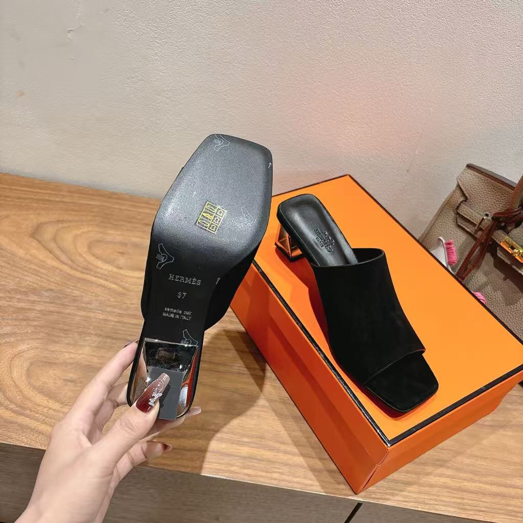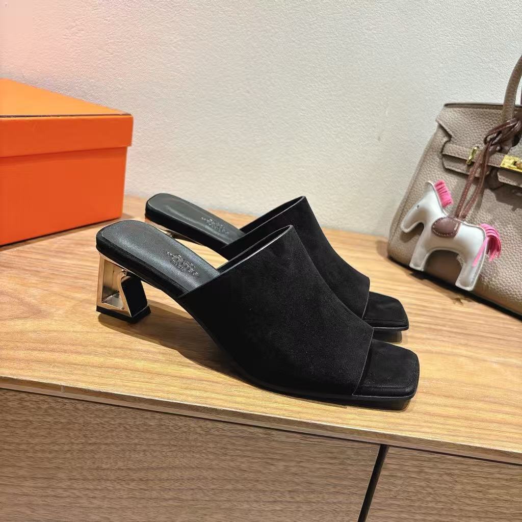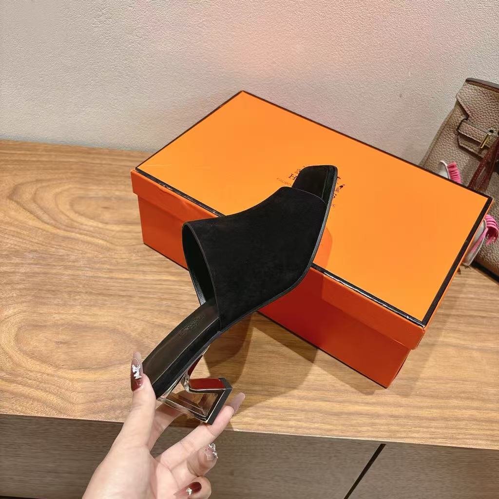 Hermès new women’s popular fashion versatile comfortable leather suede high-heeled sandals