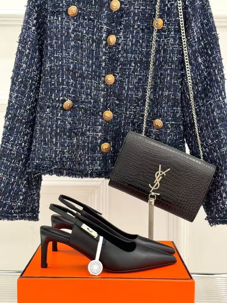 Hermès new women’s popular series fashionable and versatile comfortable leather high-heeled loafers