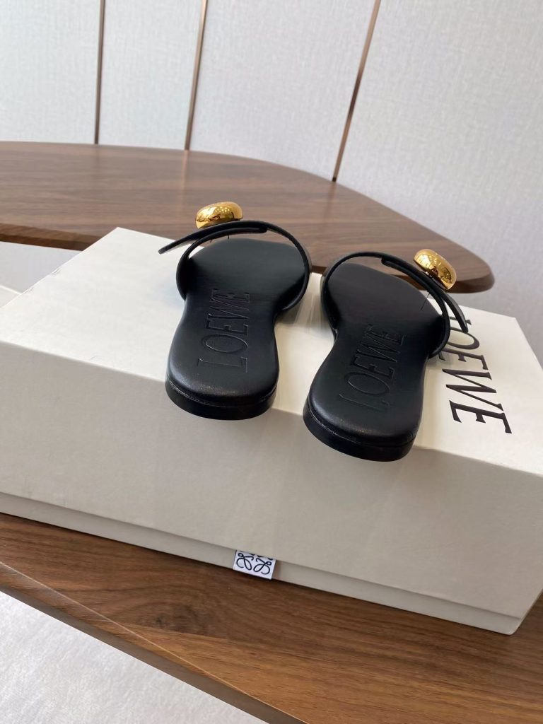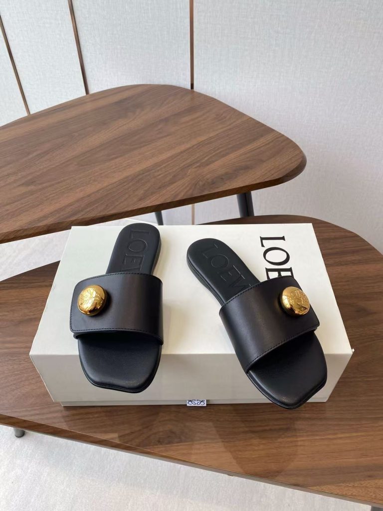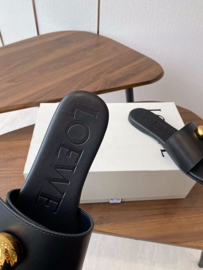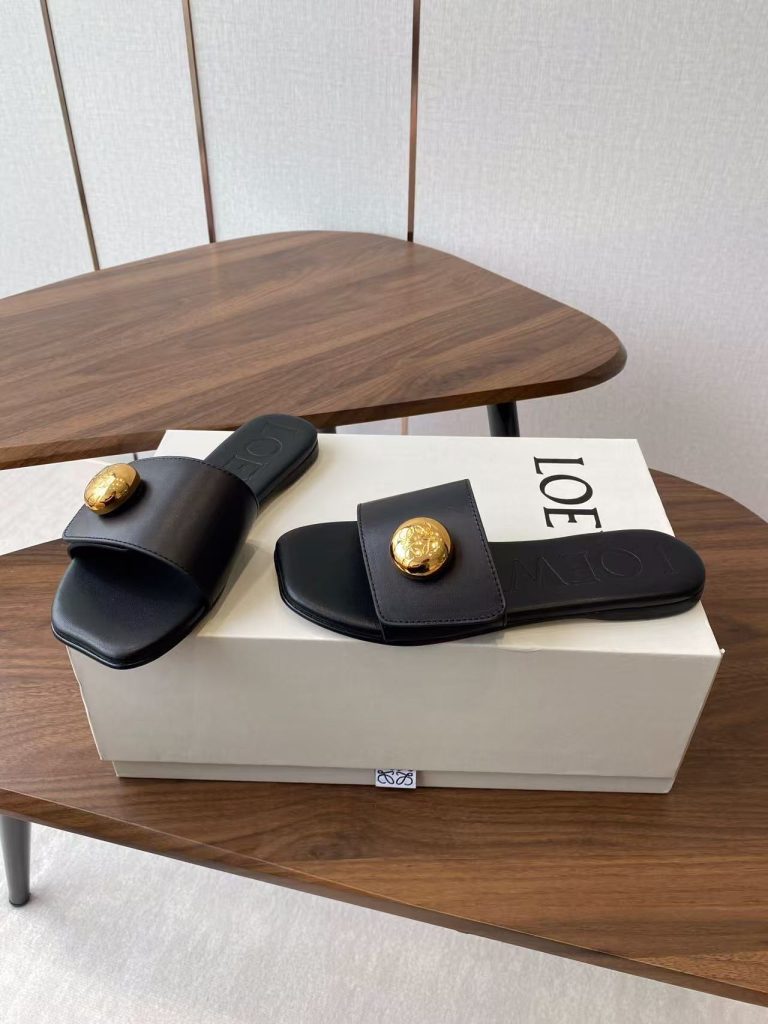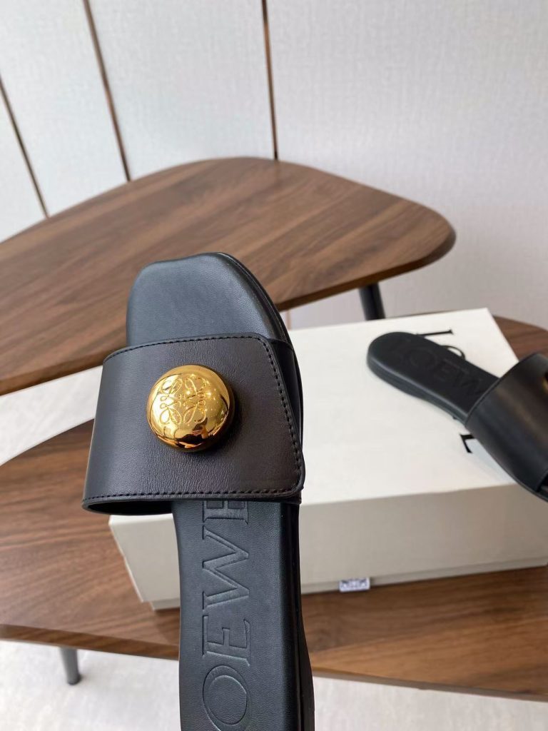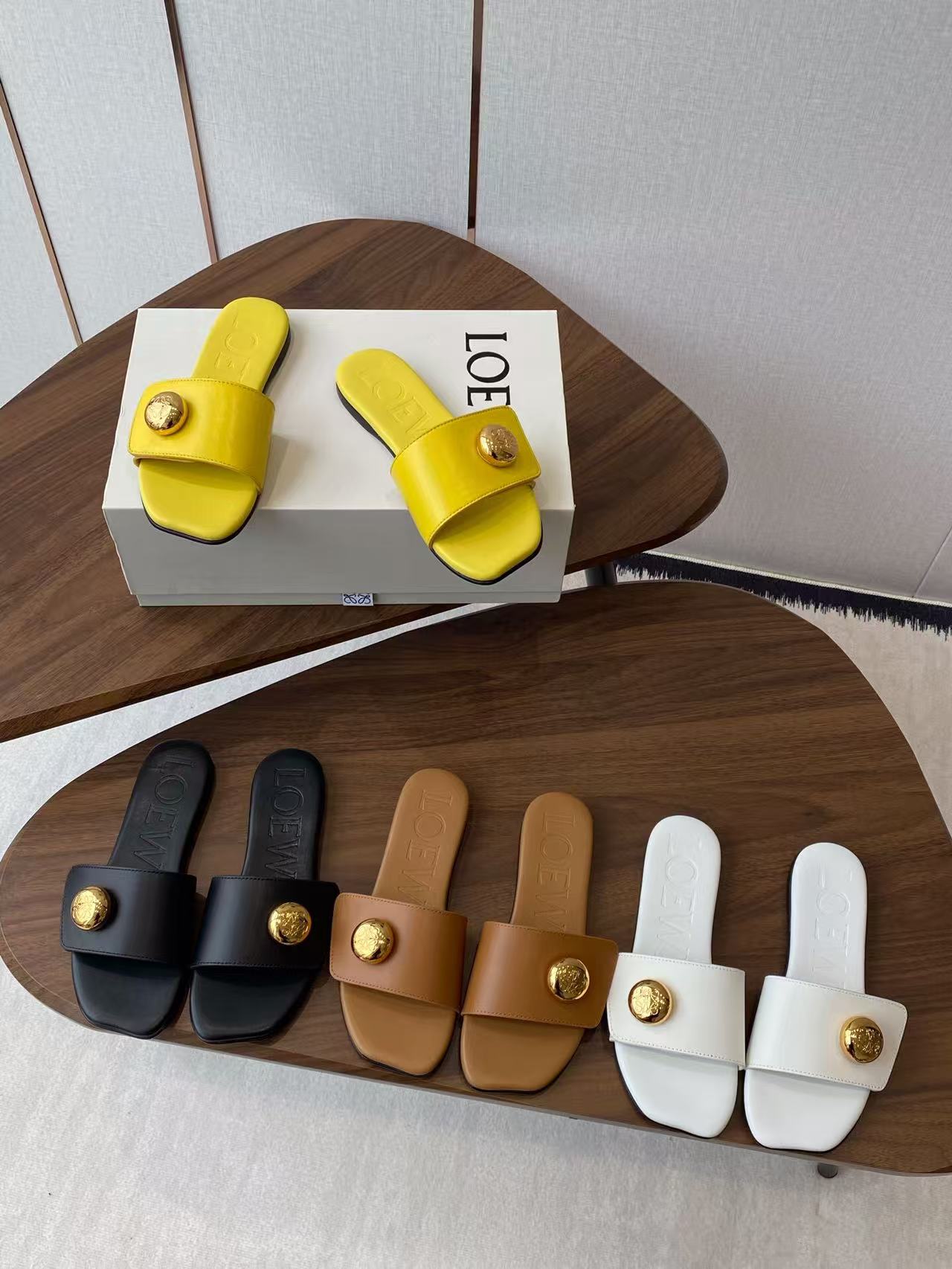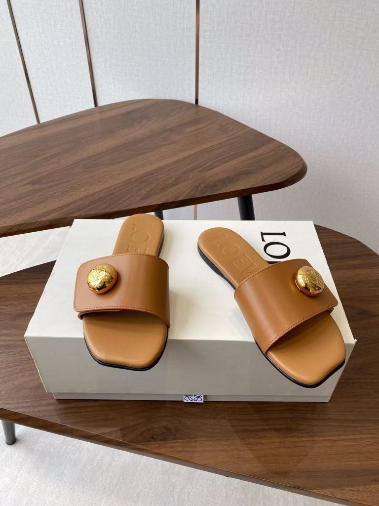 Loewe’s new fashion trend versatile women’s round buckle flat leather sandals