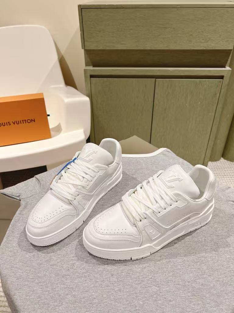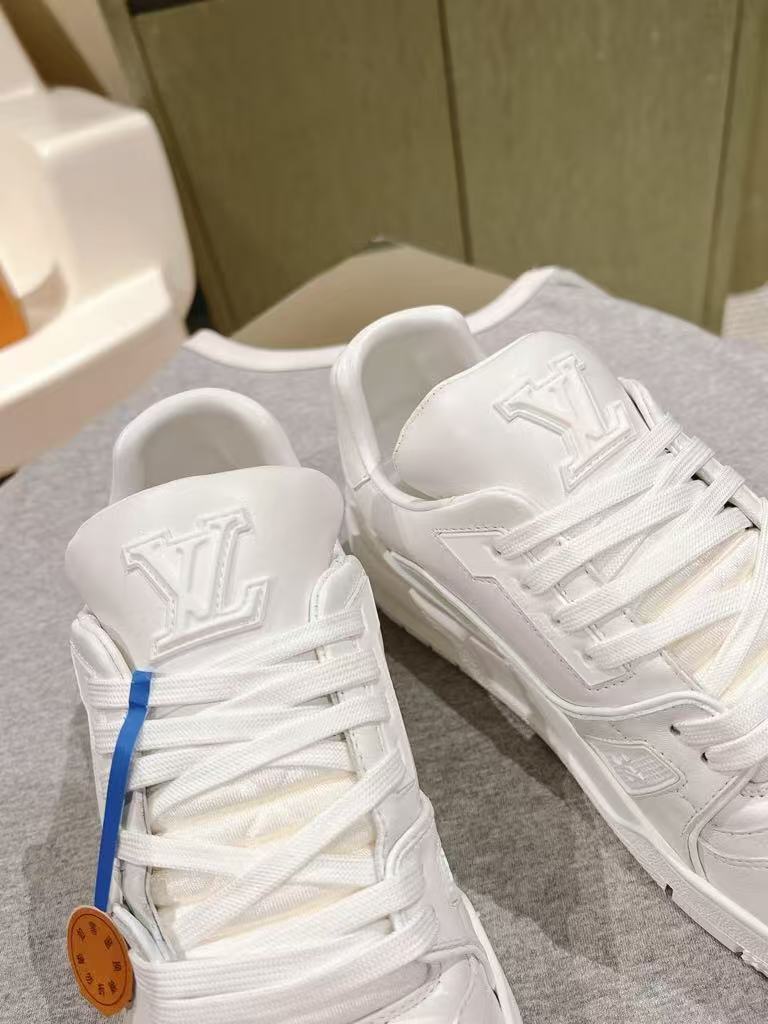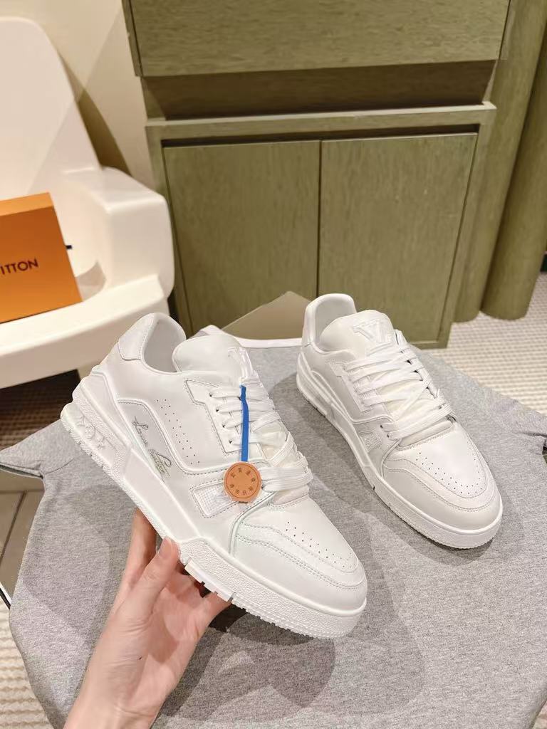 Louis Vuitton new couple style fashionable and versatile exquisite and elegant genuine leather white shoes casual sports shoes