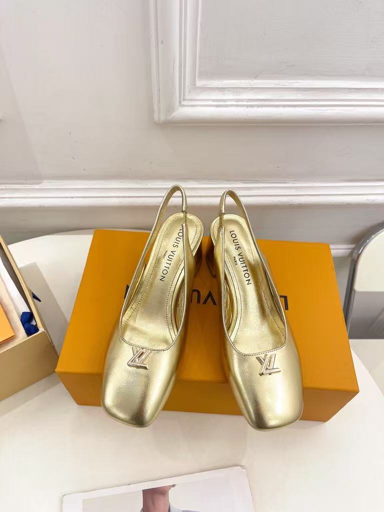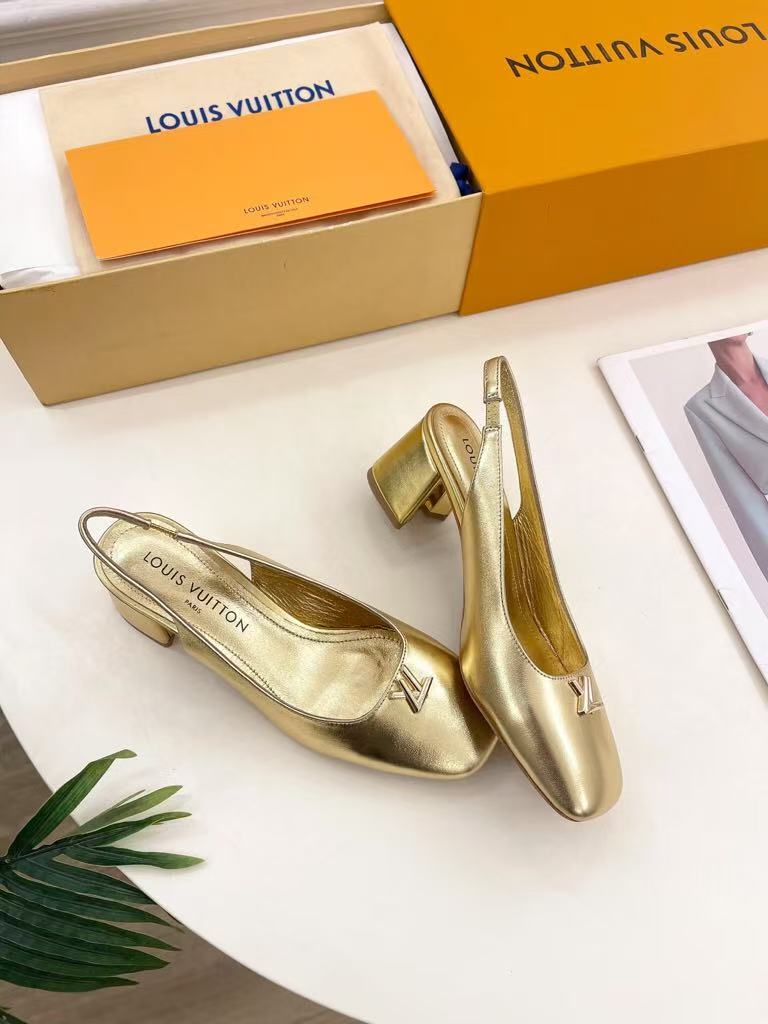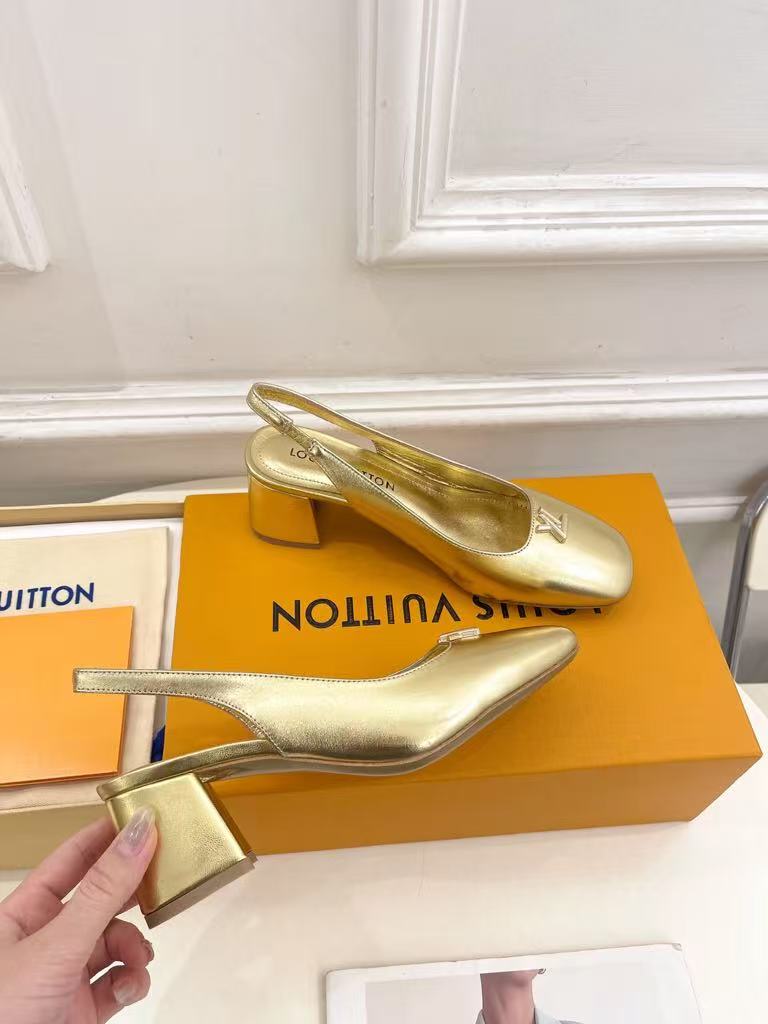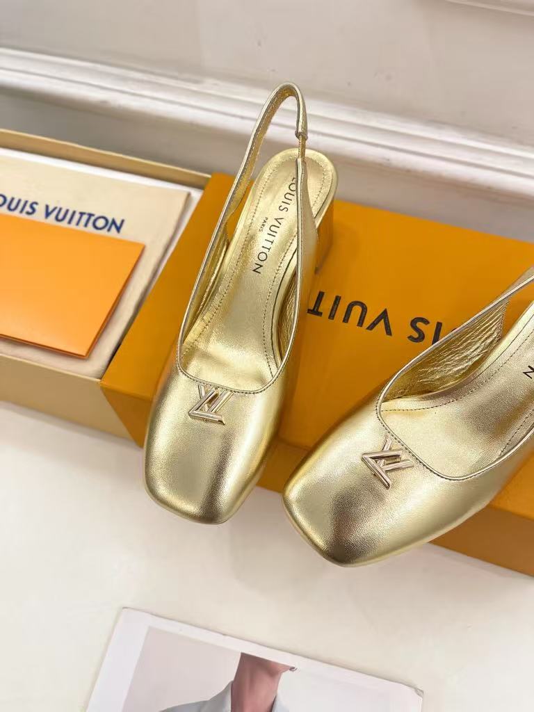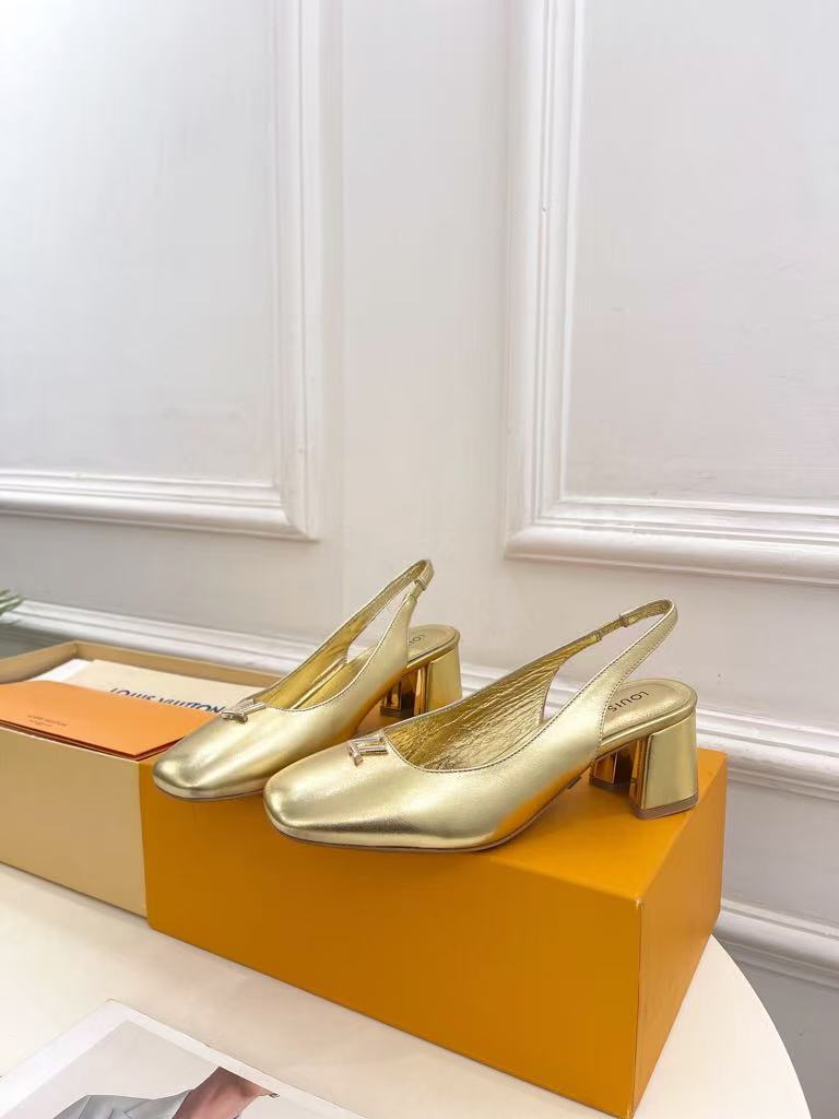 Louis Vuitton new ladies’ fashionable and versatile exquisite and elegant genuine leather golden bright high heels