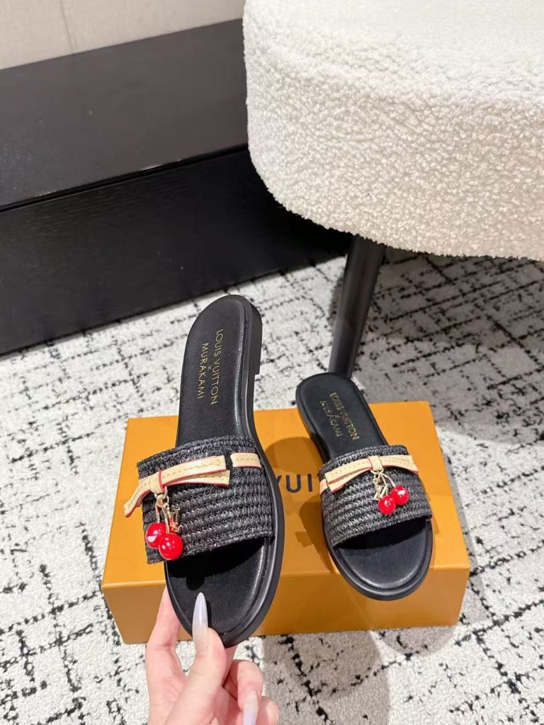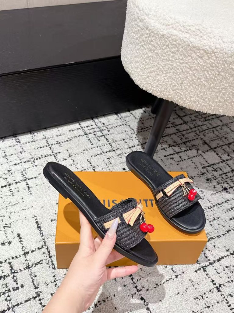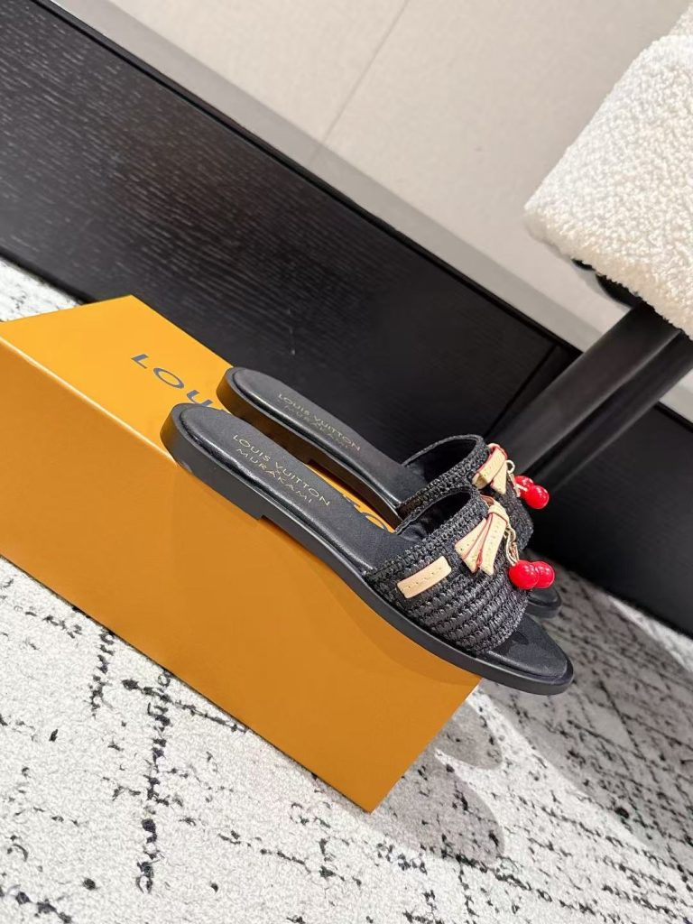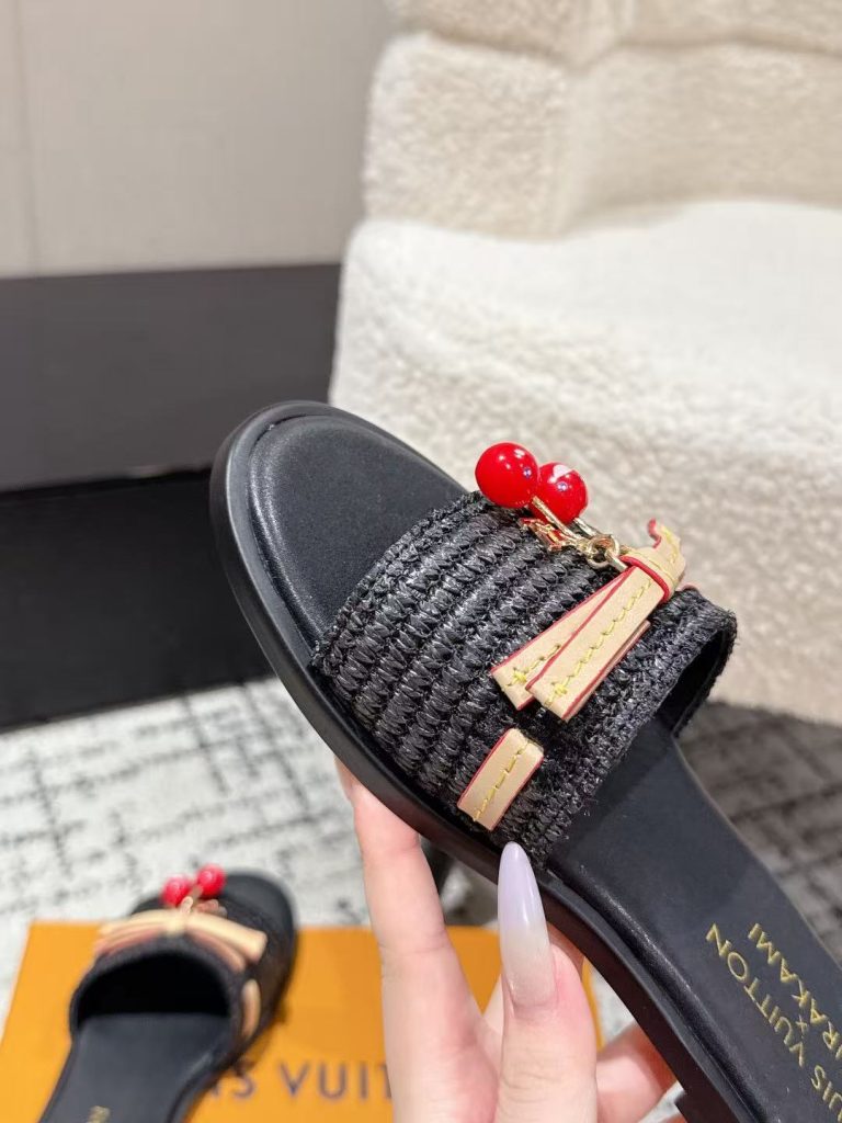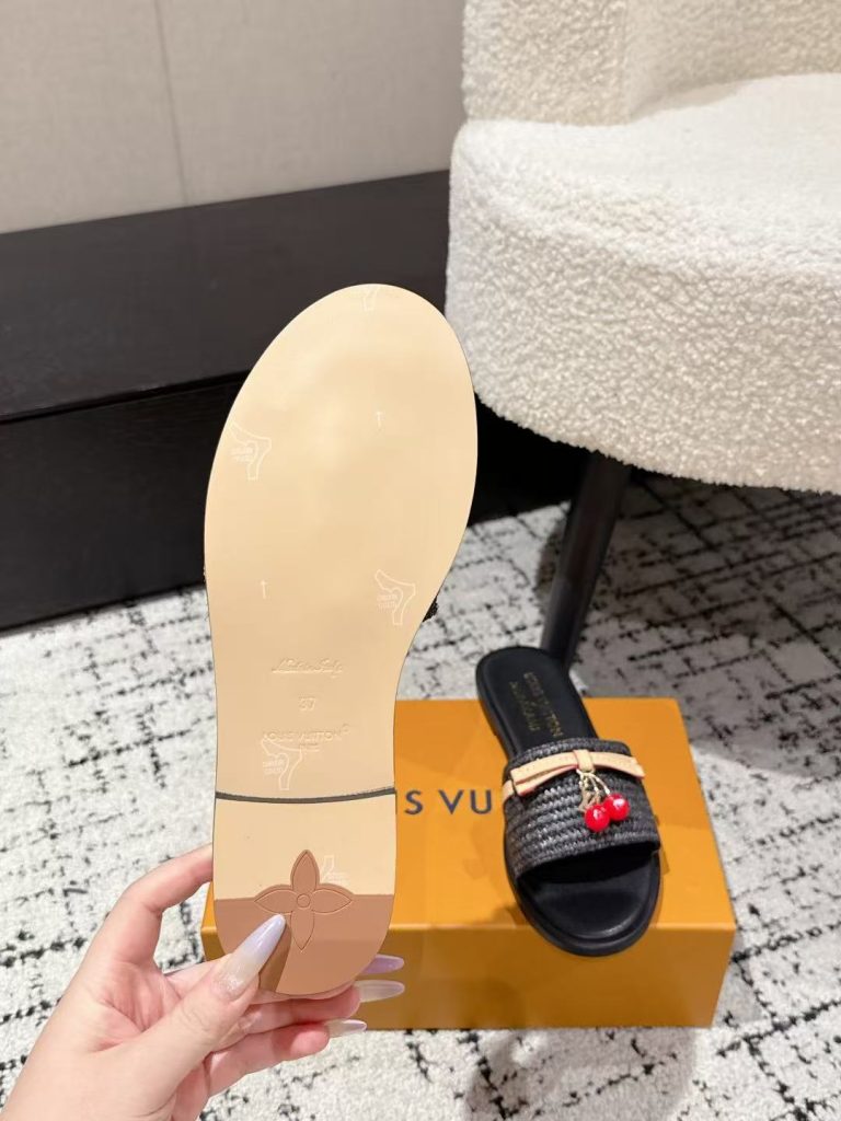 Louis Vuitton new ladies’ fashionable versatile leather fabric with cherry pendant flat slippers