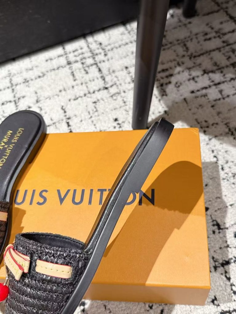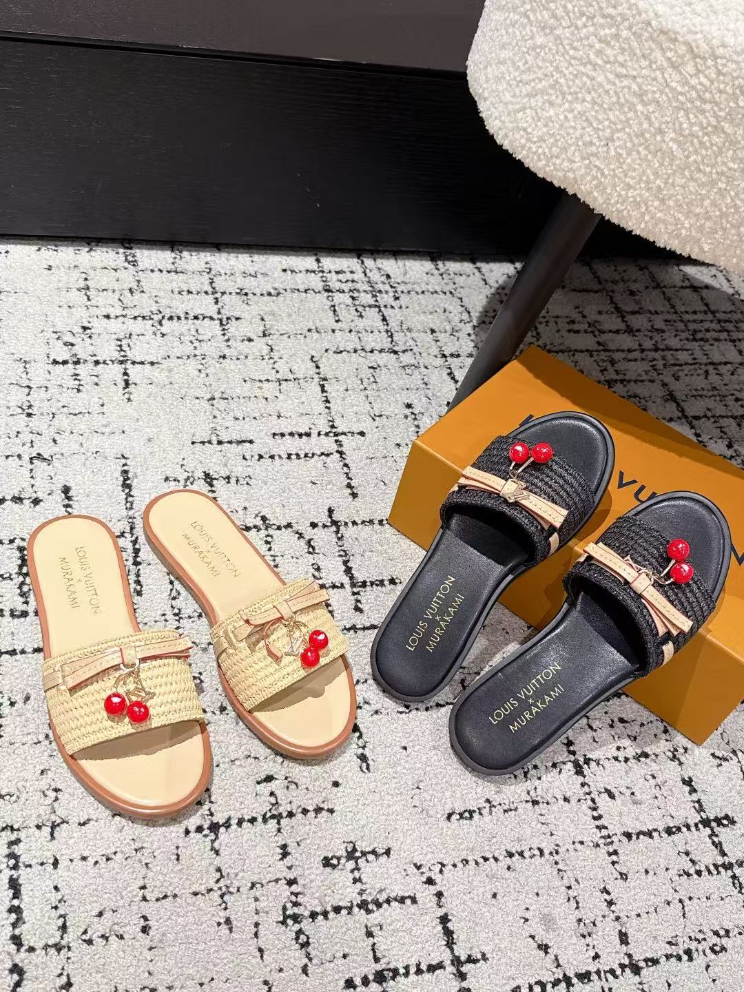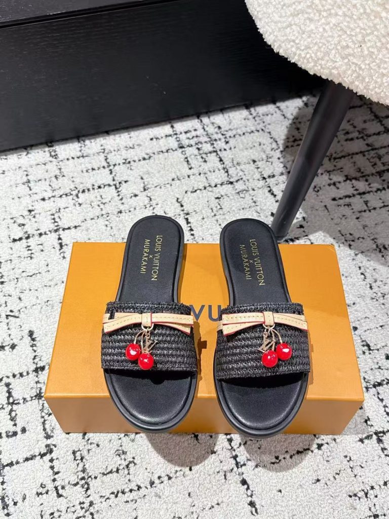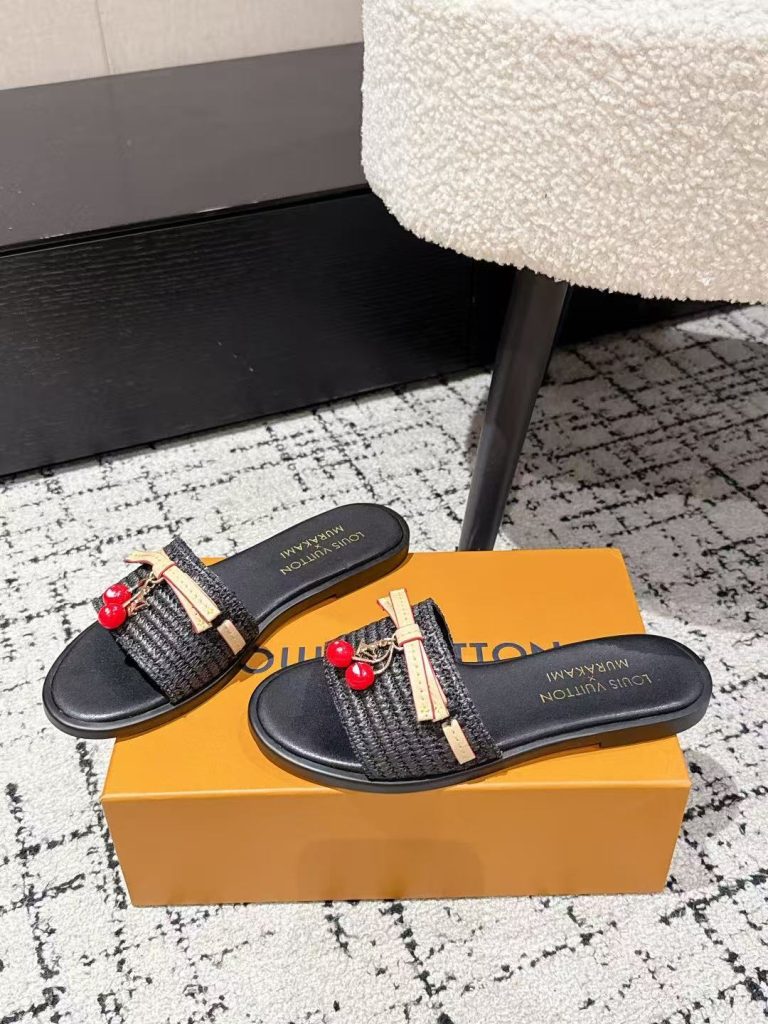 Louis Vuitton new ladies’ fashionable versatile leather fabric with cherry pendant flat slippers