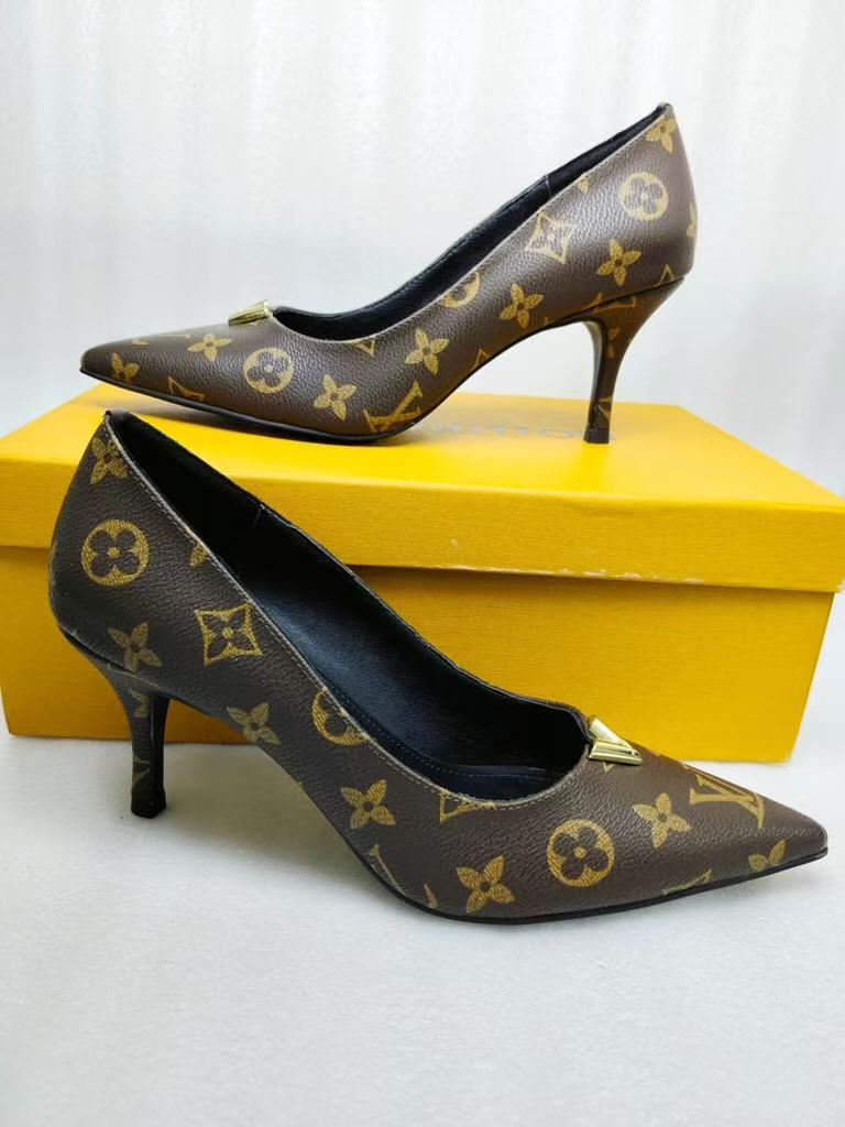 Louis Vuitton new women’s fashionable and versatile exquisite and elegant genuine leather floral high heels