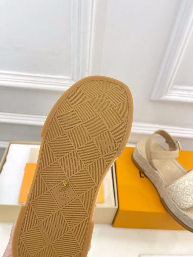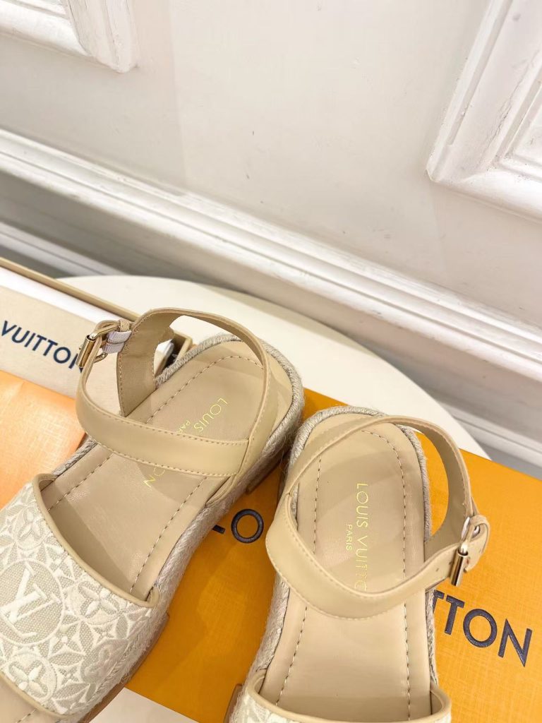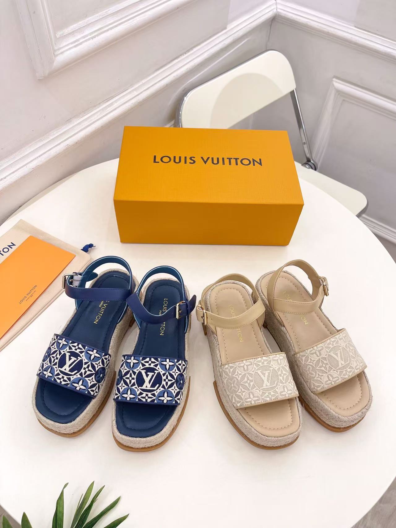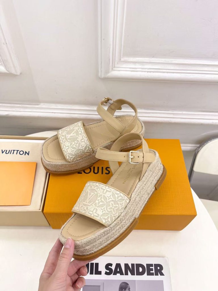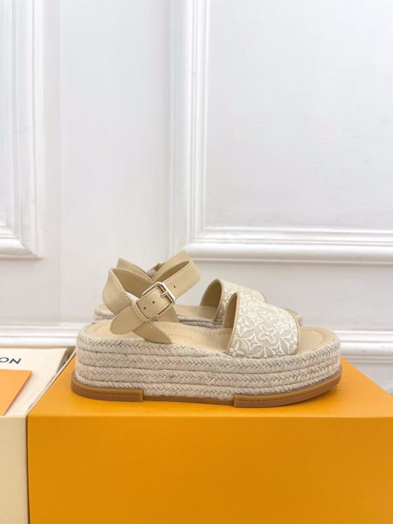 Louis Vuitton’s new fashion canvas embroidery hemp rope thick-soled versatile sandals