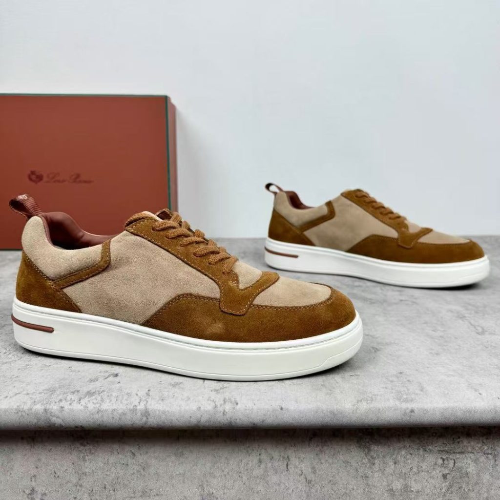 Loyo Pia new men’s fashion cowhide lychee pattern stitching suede versatile casual shoes