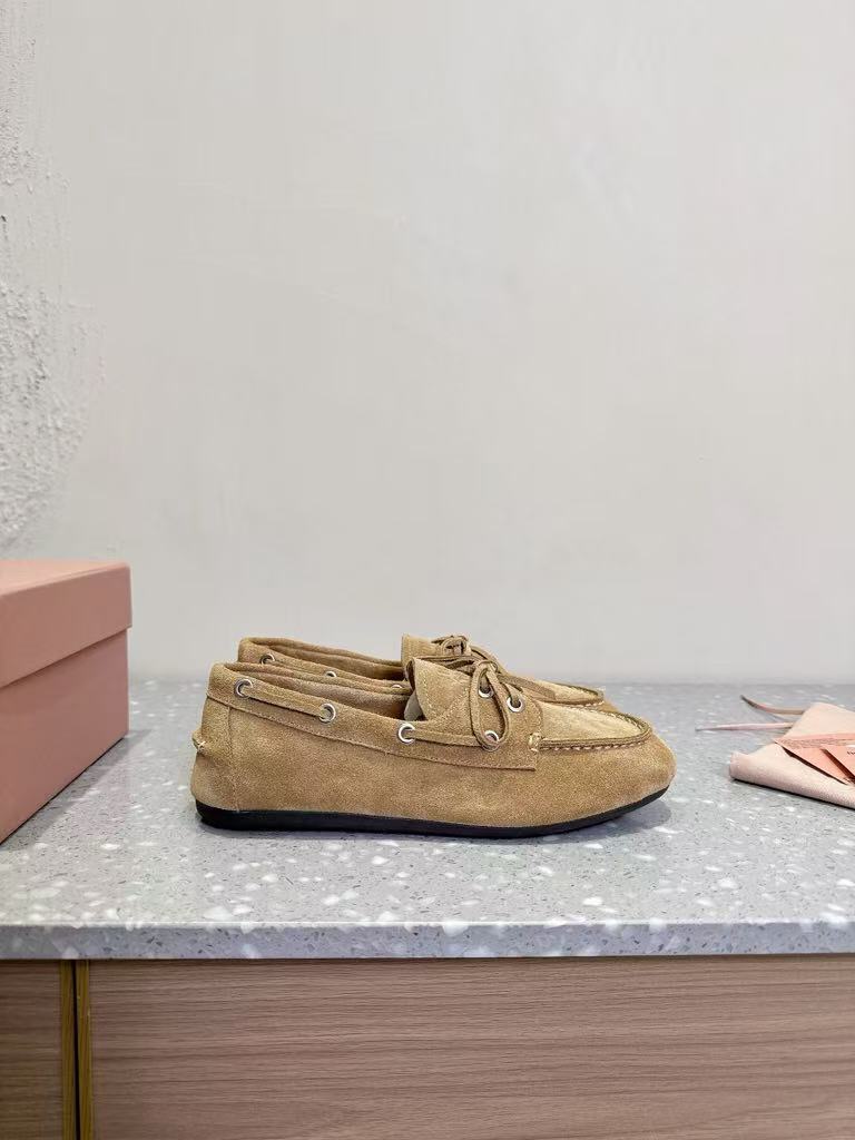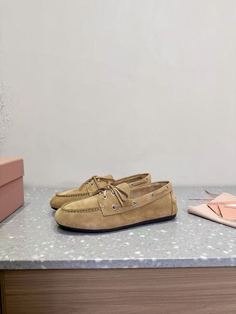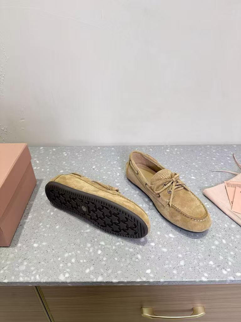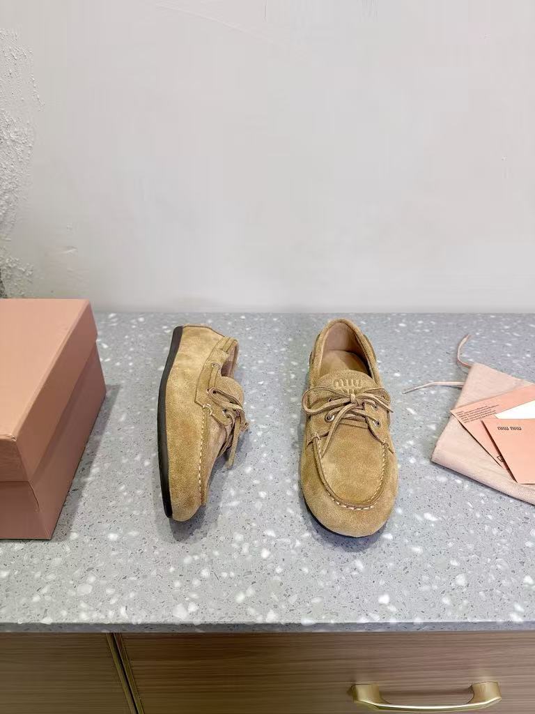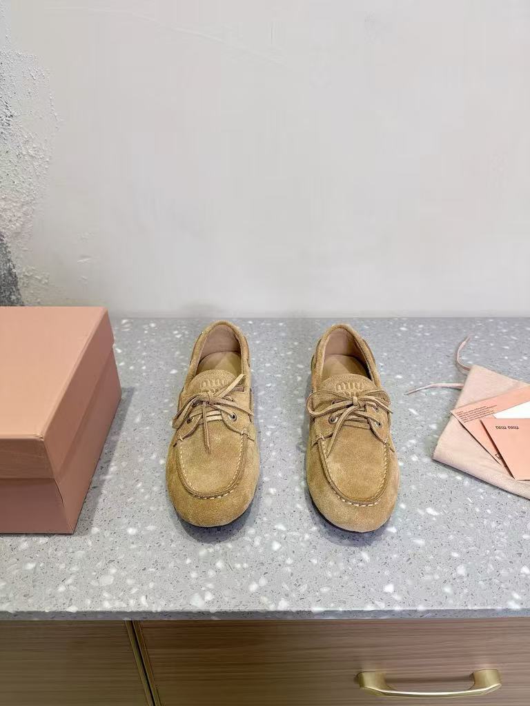 New Miu Miu women’s style versatile lining comfortable breathable genuine leather rubber wear-resistant outsole trendy fashion casual shoes