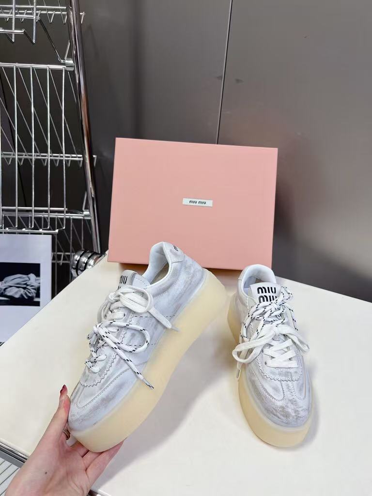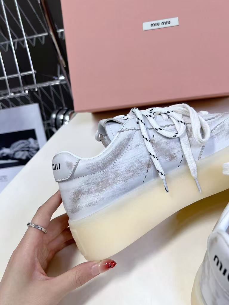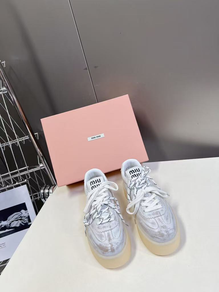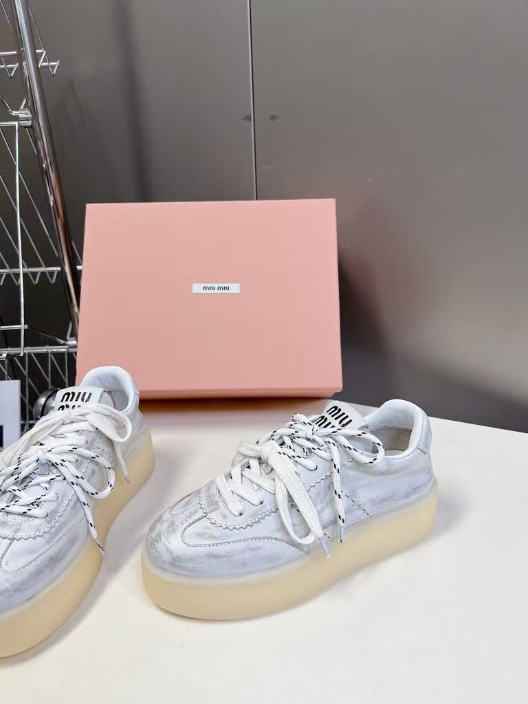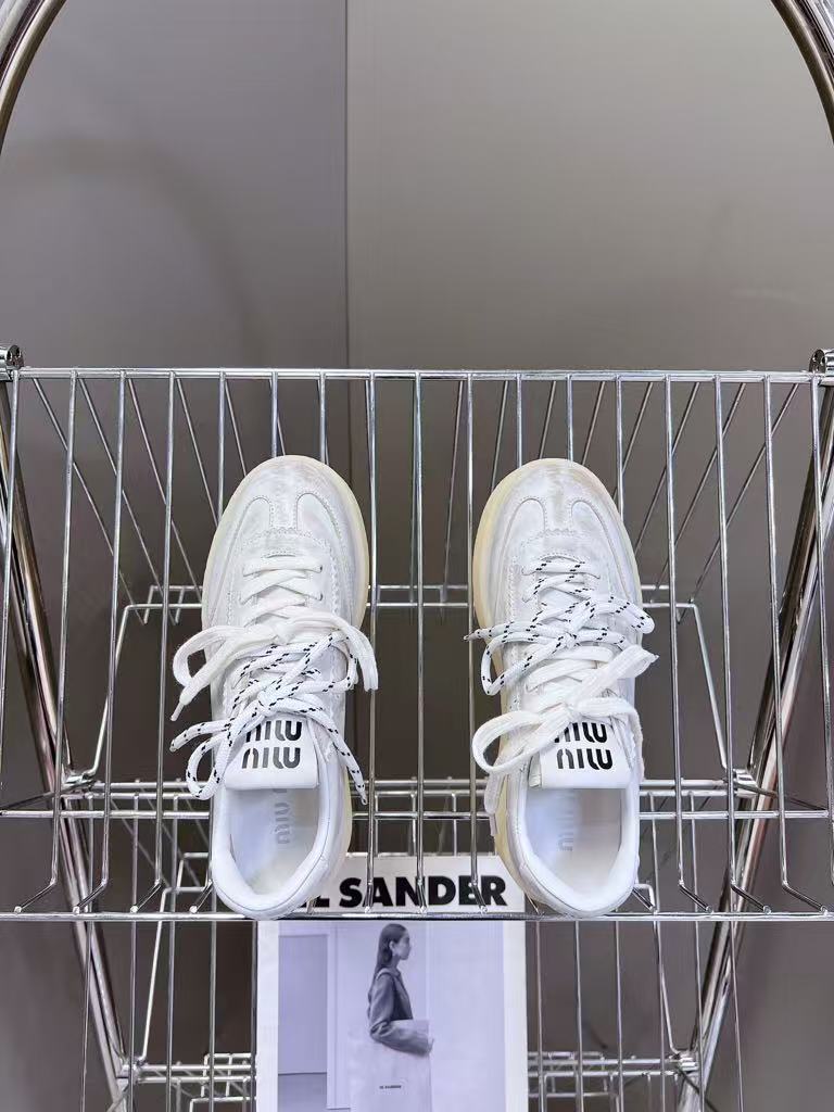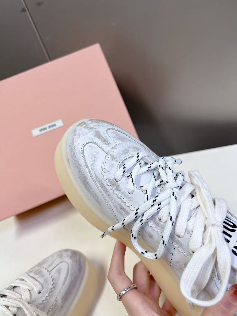 New Miu Miu women’s style versatile lining comfortable breathable leather retro design trendy casual sports shoes